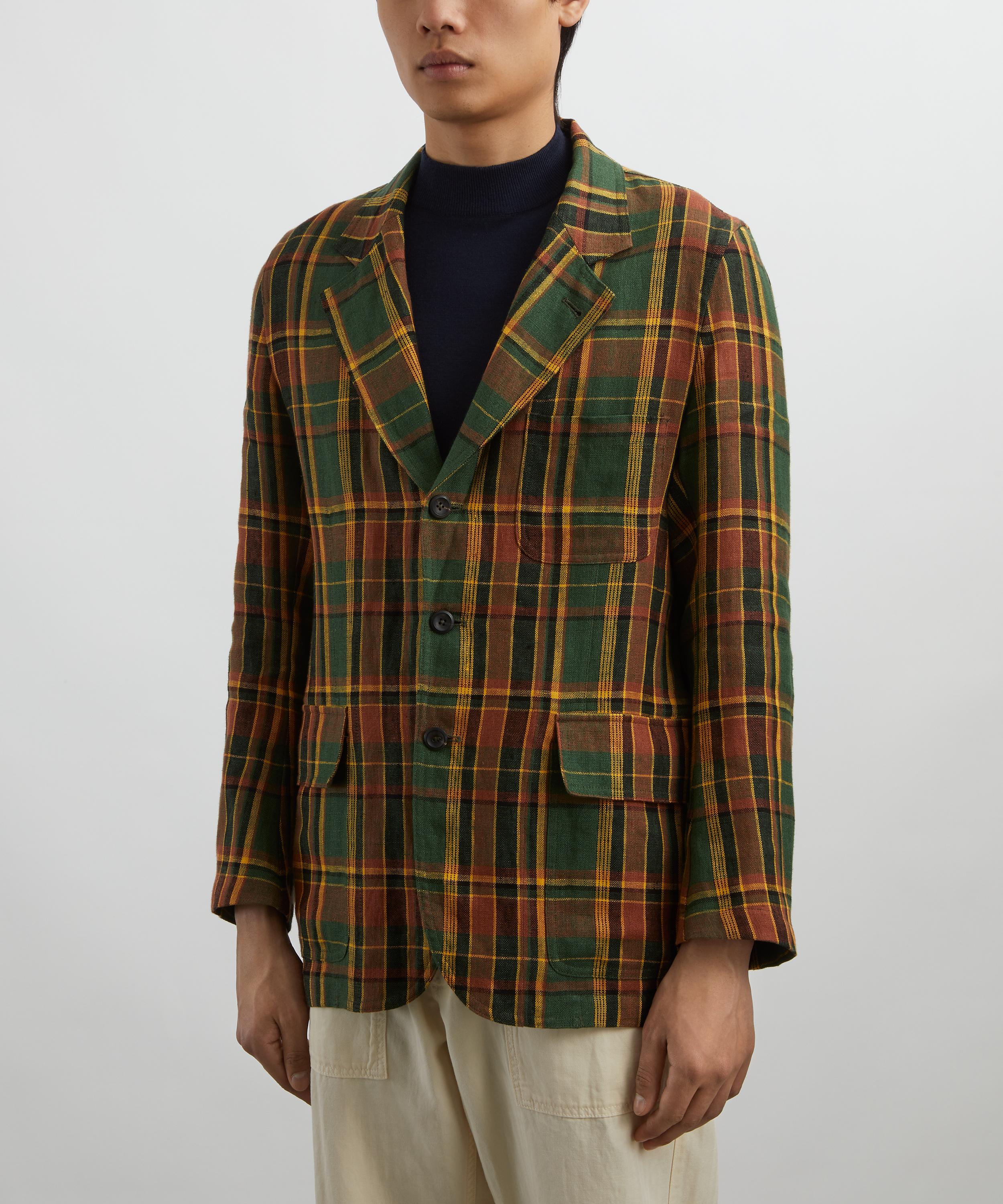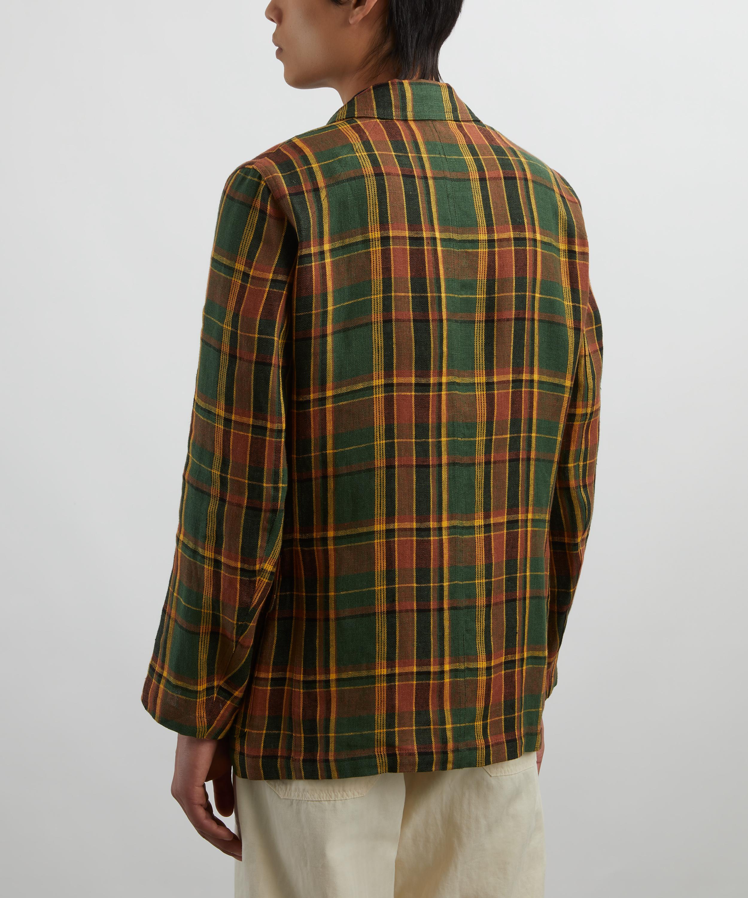 Comfortable and resilient, the Mk. I Games Blazer is a versatile everyday classic. Inspired by both workwear and tailoring, it features a casual 3-roll-2 button design with a boxy silhouette, two patch hip pockets, a chest pocket, and generous sleeves. Its twin needle seams and unlined construction echo the uniforms of 20th-century artisans, blending crisp tailoring with modern practicality. Made from durable, brightly checked linen, it's perfect for any occasion.
