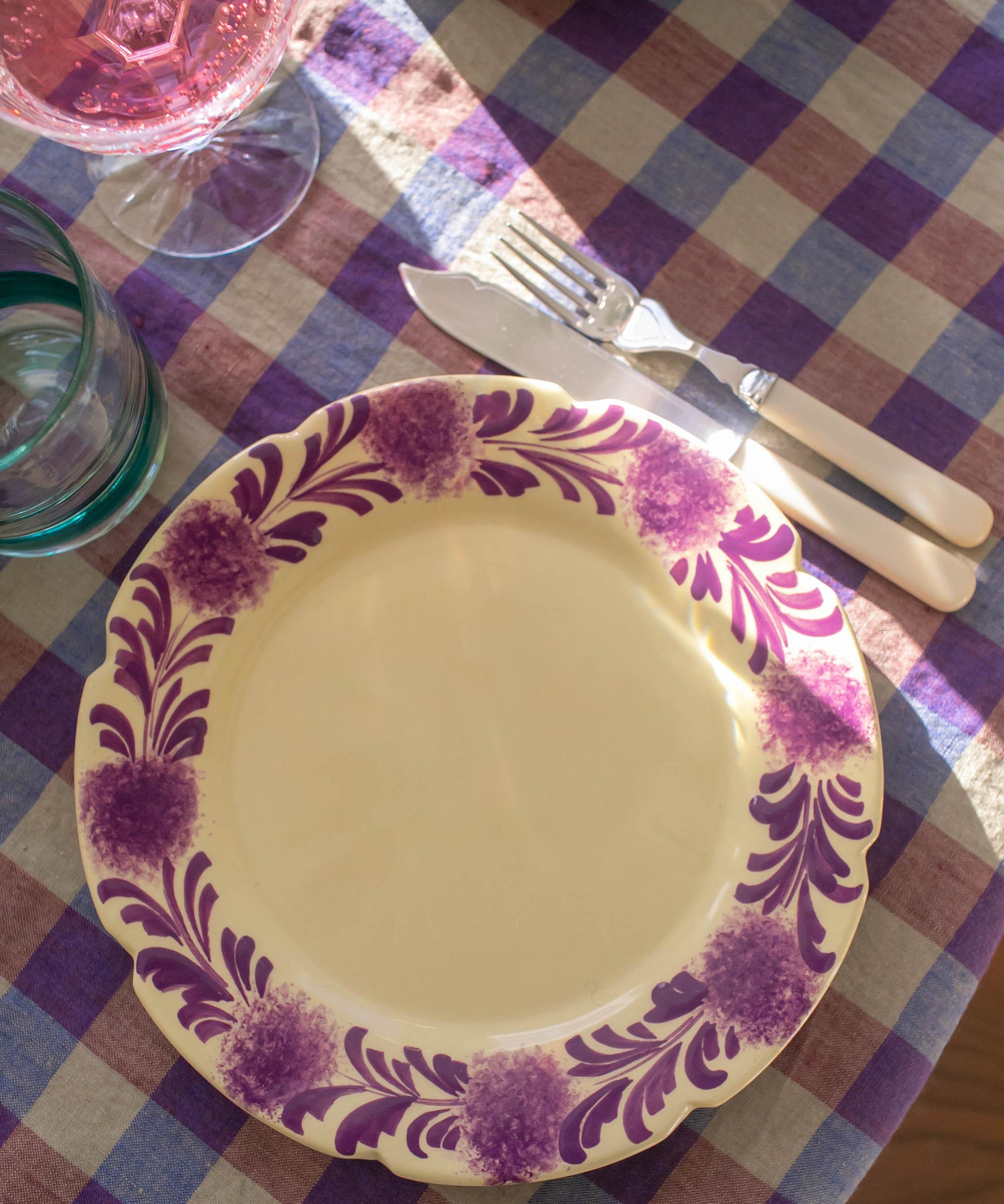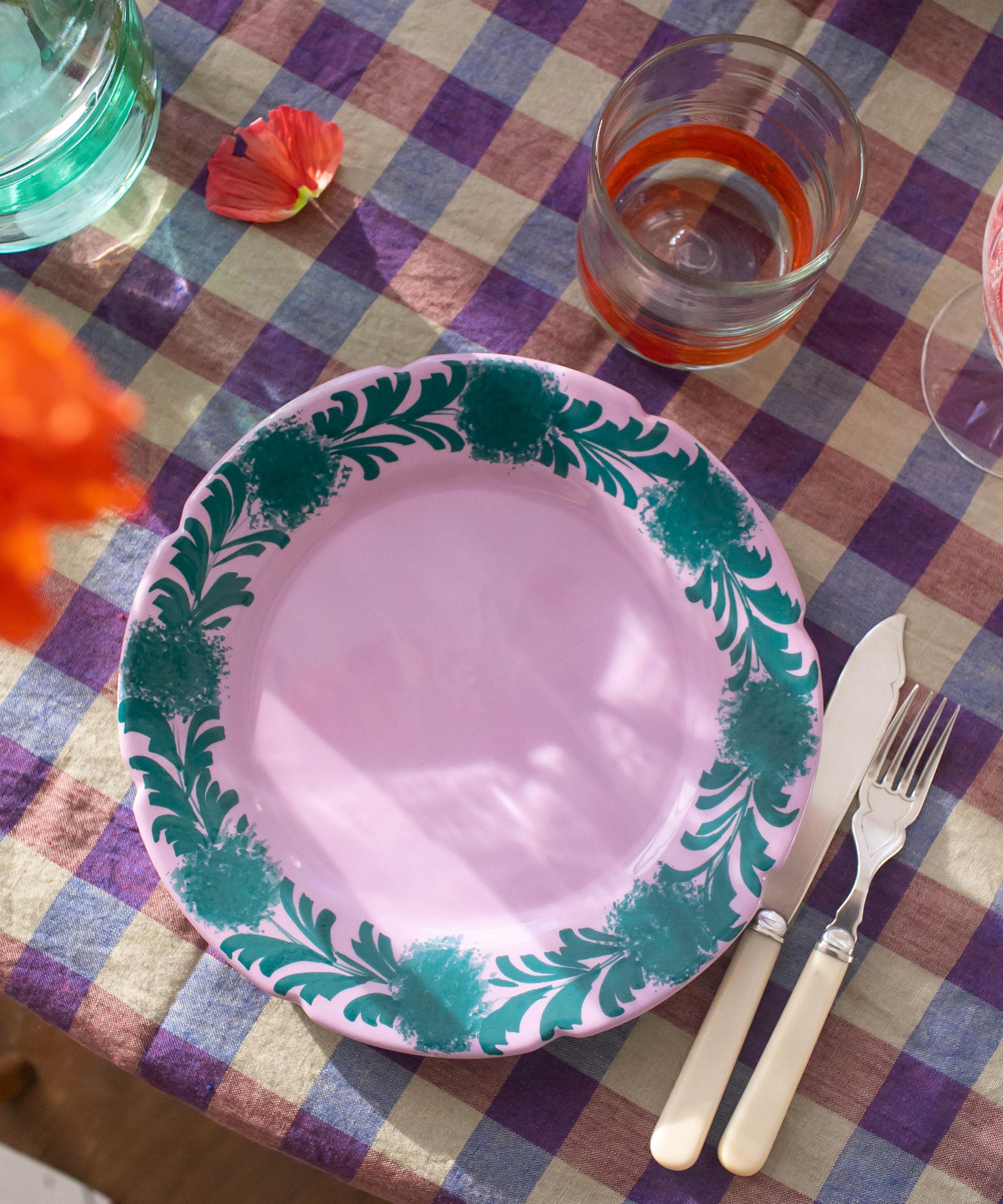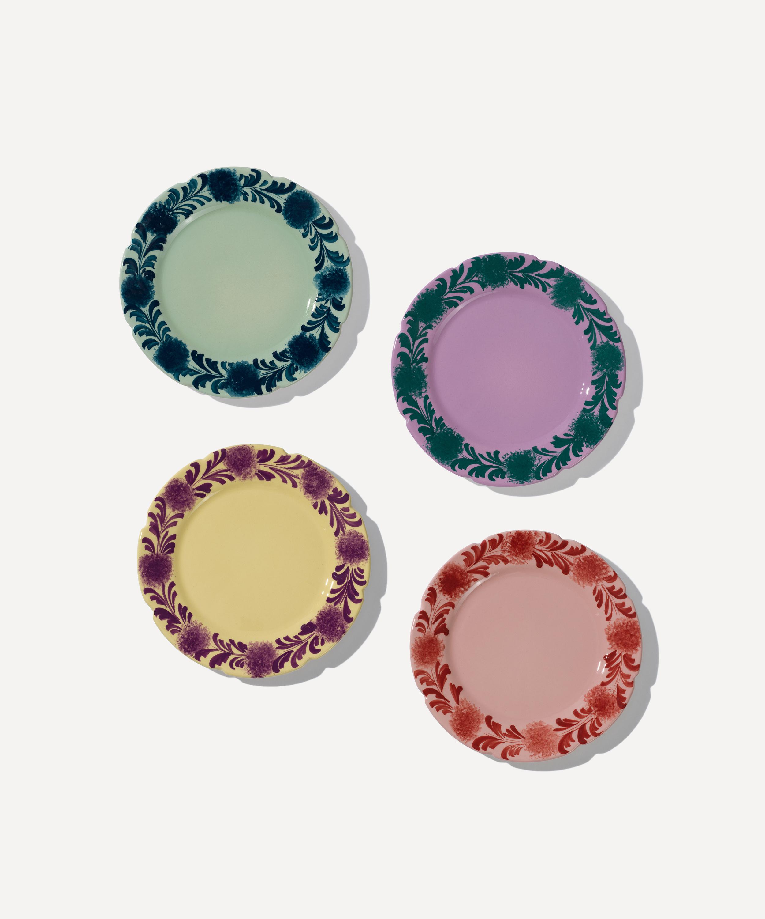Add a touch of artful charm to your tablescape with the Mafalda main plate set from Vaisselle, part of the brand's Oleron collection, they are bordered with blooming floral motifs.