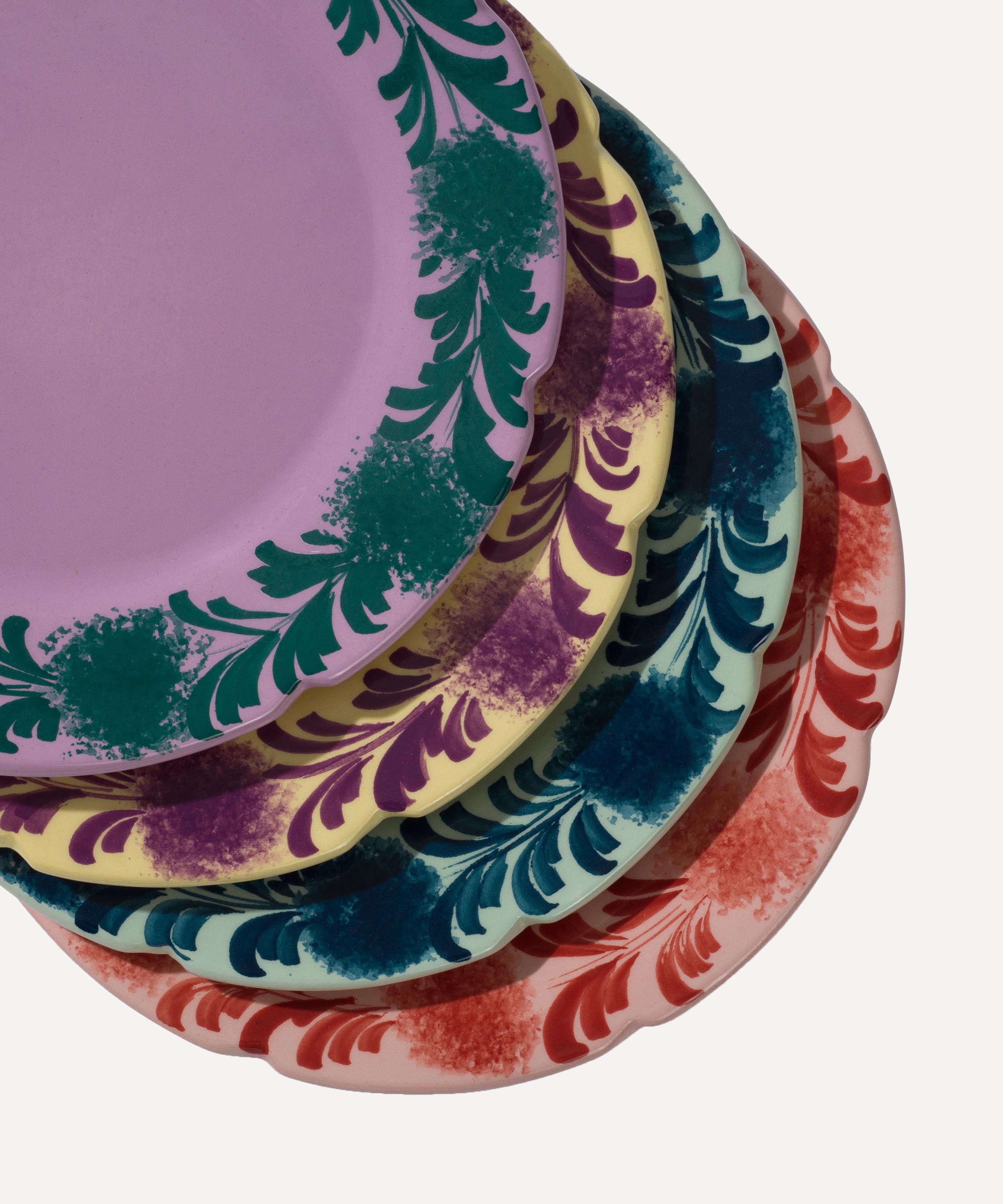 Handmade in Spain, these vibrant plates take inspitration from the moment when Roman archeologic remains are discovered in Oleron, an island south-west of France, surrounded by the vivid blossoms and the deep blue of the Atlantic ocean - pair with other pieces from the collection and use for everyday meals or special feasts.