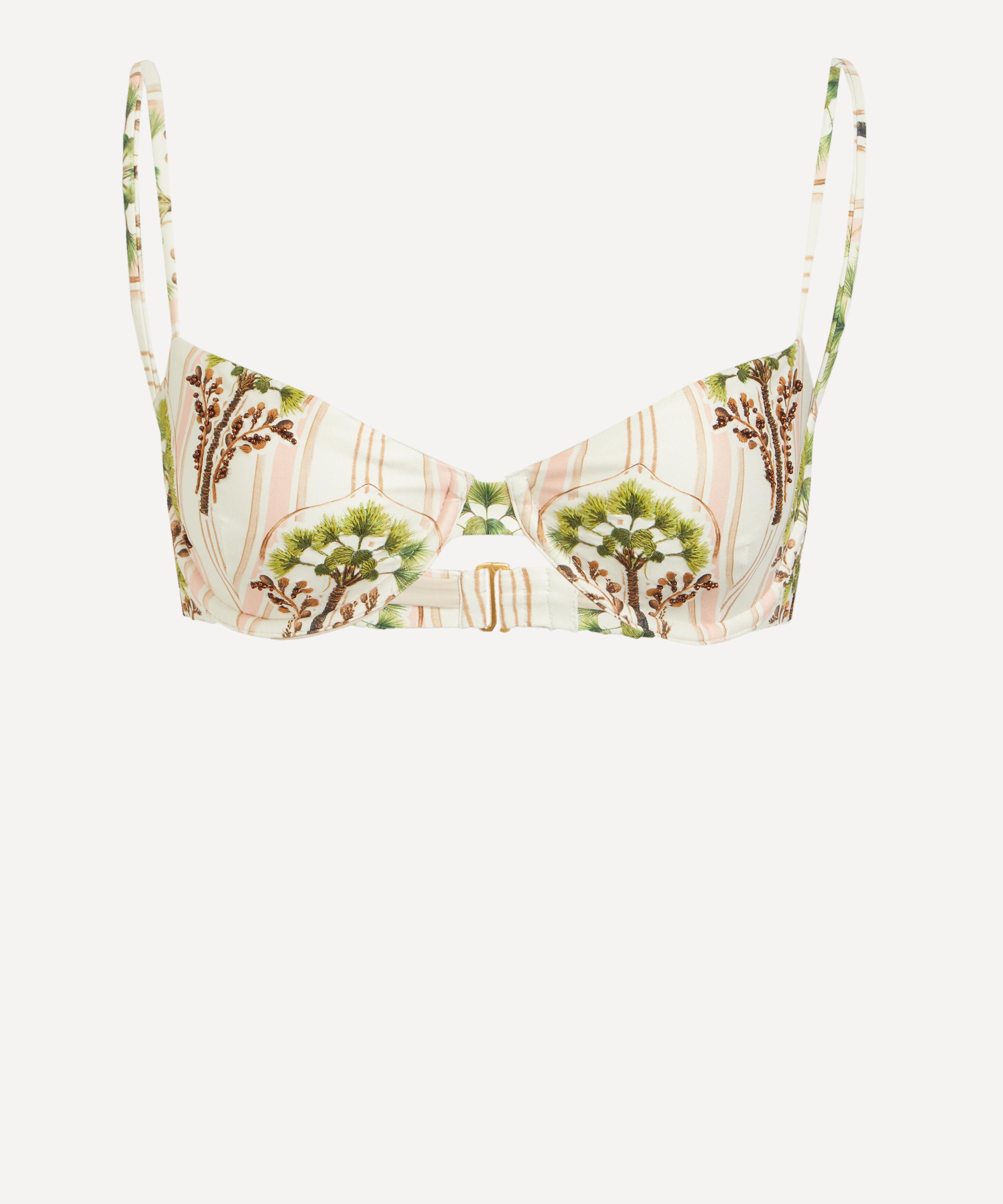 Embellished with intricate hand-embroidered palm tree detailing, the Magdalena Moriche bikini top offers UPF 50+ sun protection and features a flattering sweetheart neckline, and underwire support for a seamless fit.