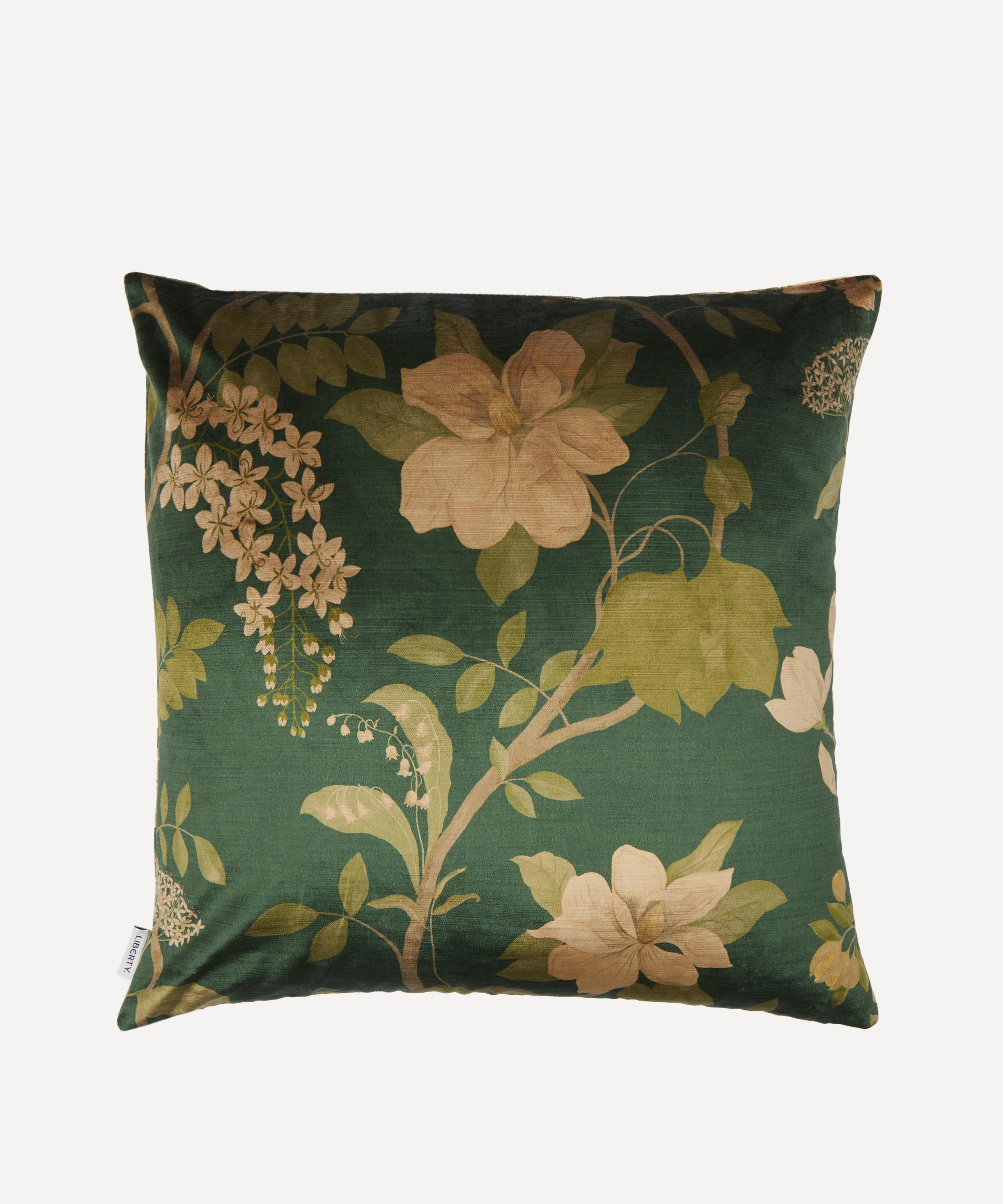 This square cushion is shaped from plush velvet and showcases our Magical Plants illustration – an exquisite artwork inspired by a majestic garden filled with magnolias, wisteria, lily of the valley and leafy branches. Filled with duck feathers for maximum comfort and softness, it brings a note of natural-world joy to your sofa, armchair or daybed.