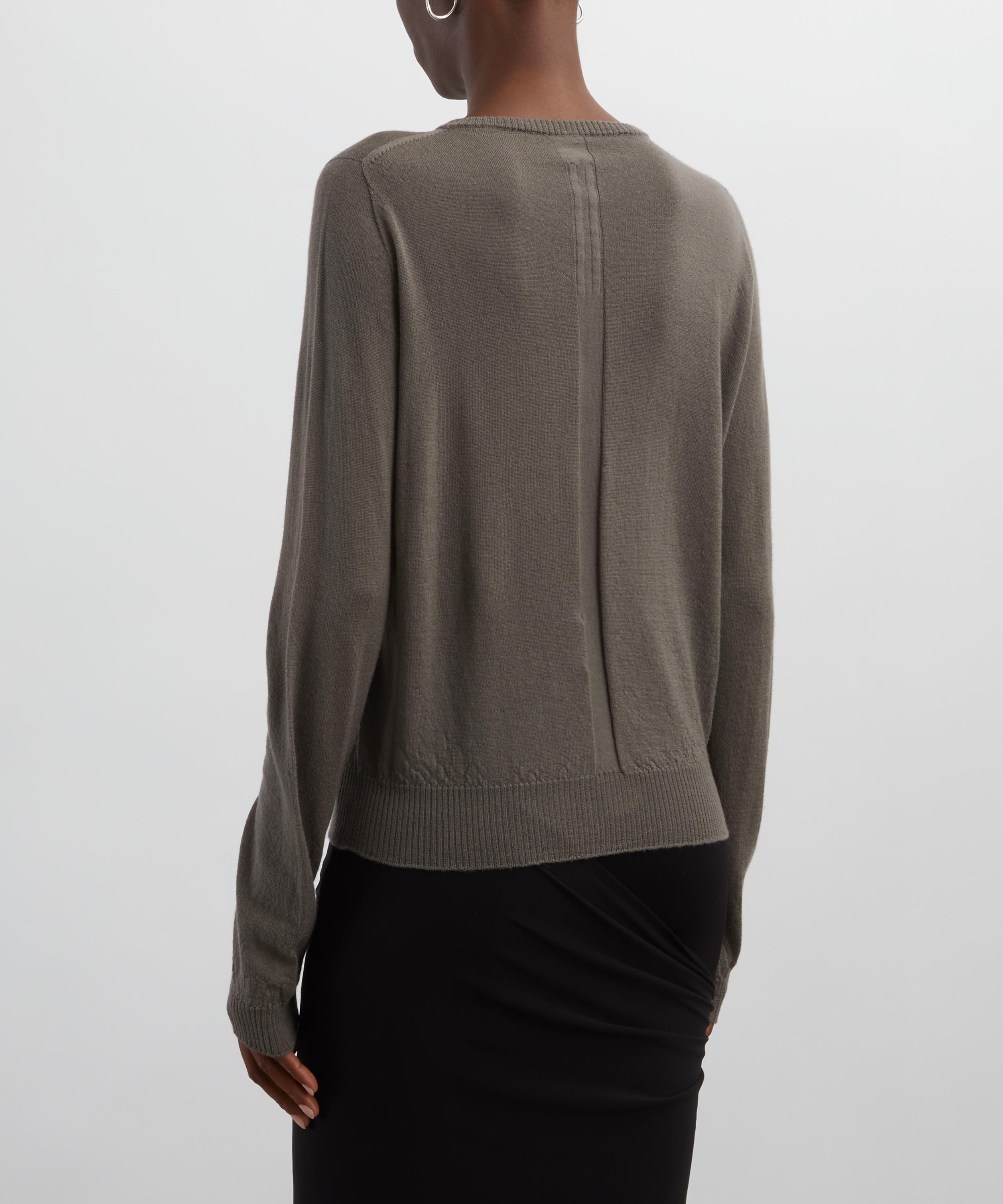 Knitted from virgin wool with a soft, brushed finish, this jumper features a classic round neckline, long sleeves, and a signature knit channel running down the centre-back for a subtle yet distinctive detail.