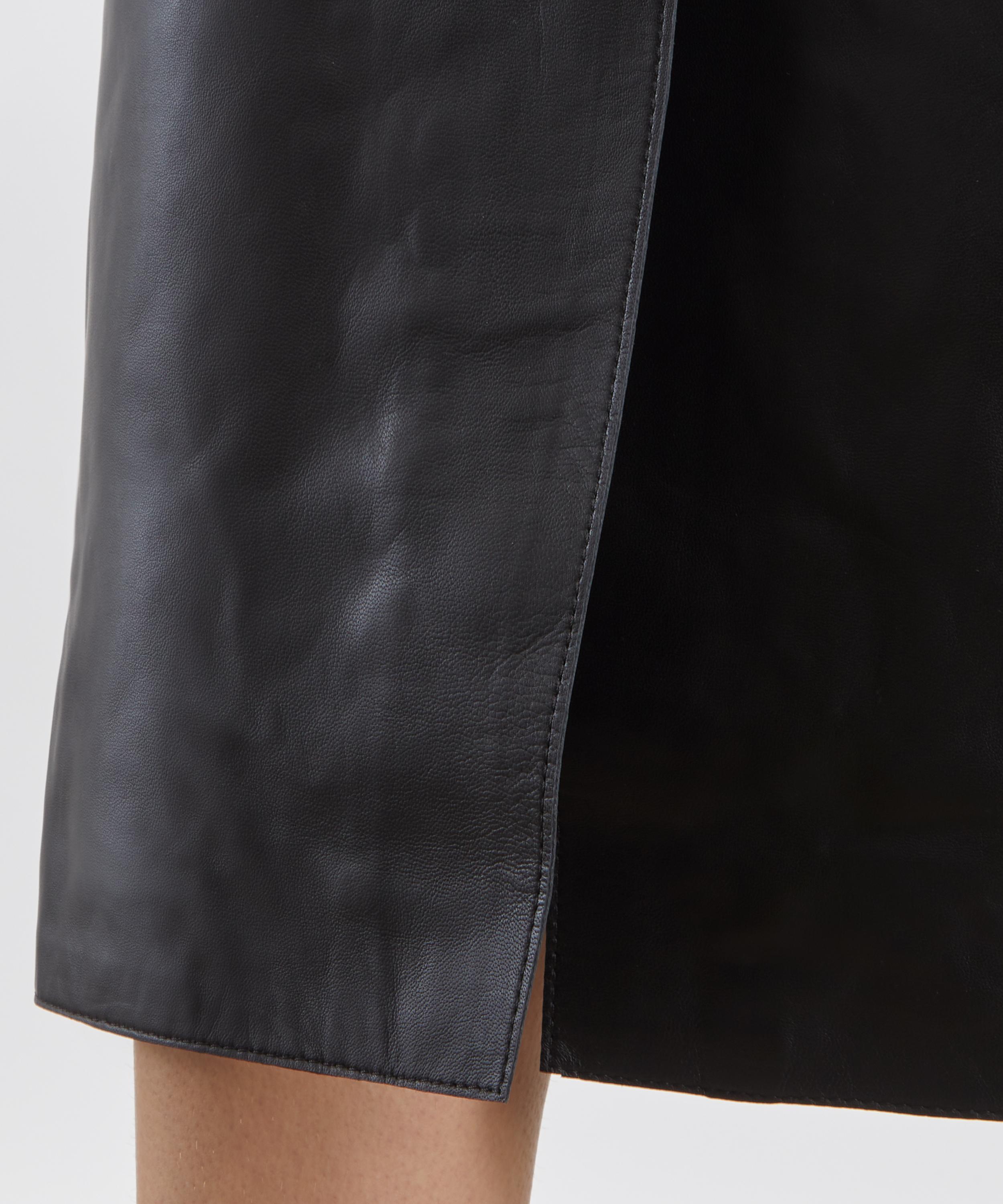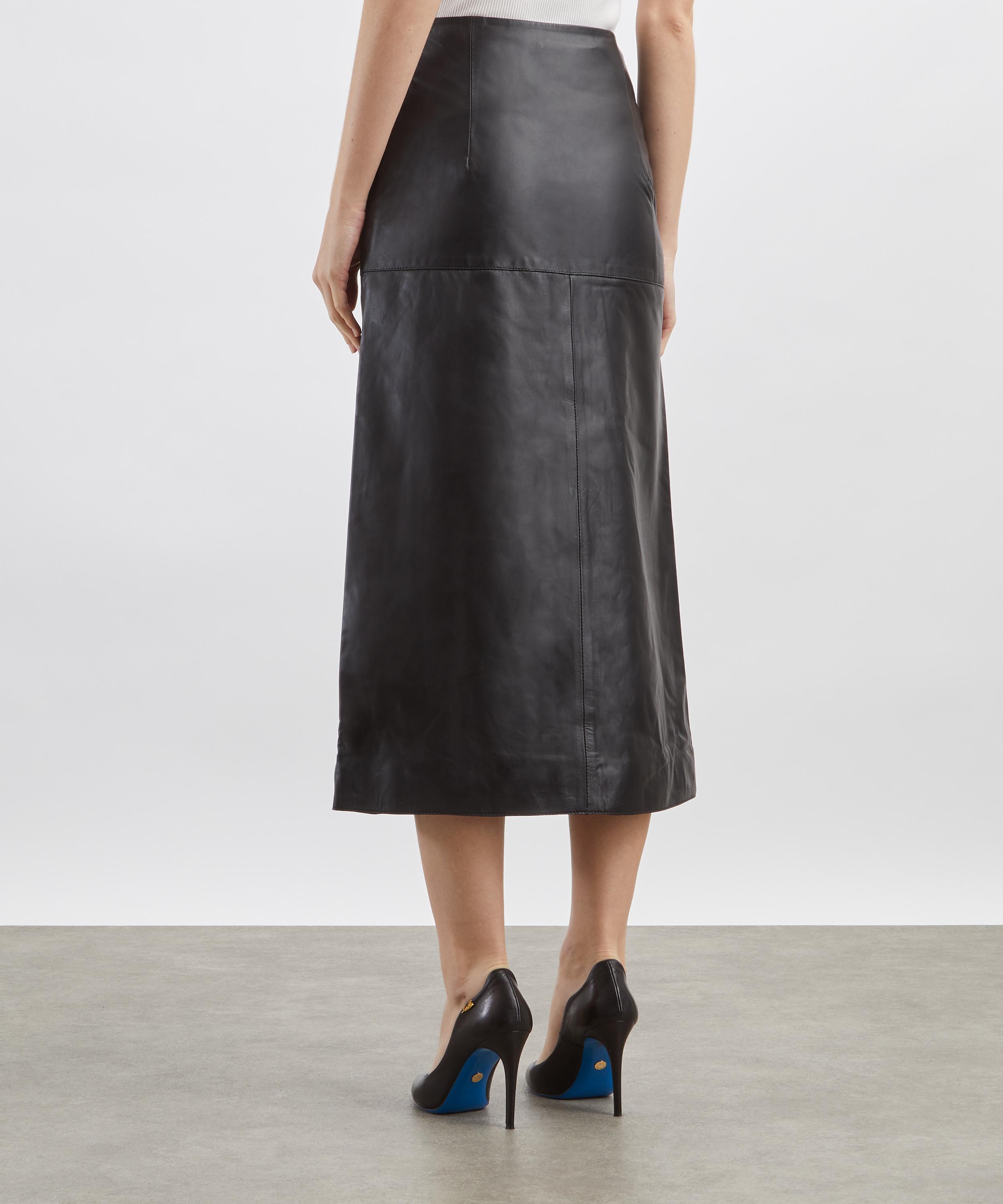Elevate your seasonal staples with the refined opulence of the Maha Leather Midi Skirt from London based label Liberowe.
