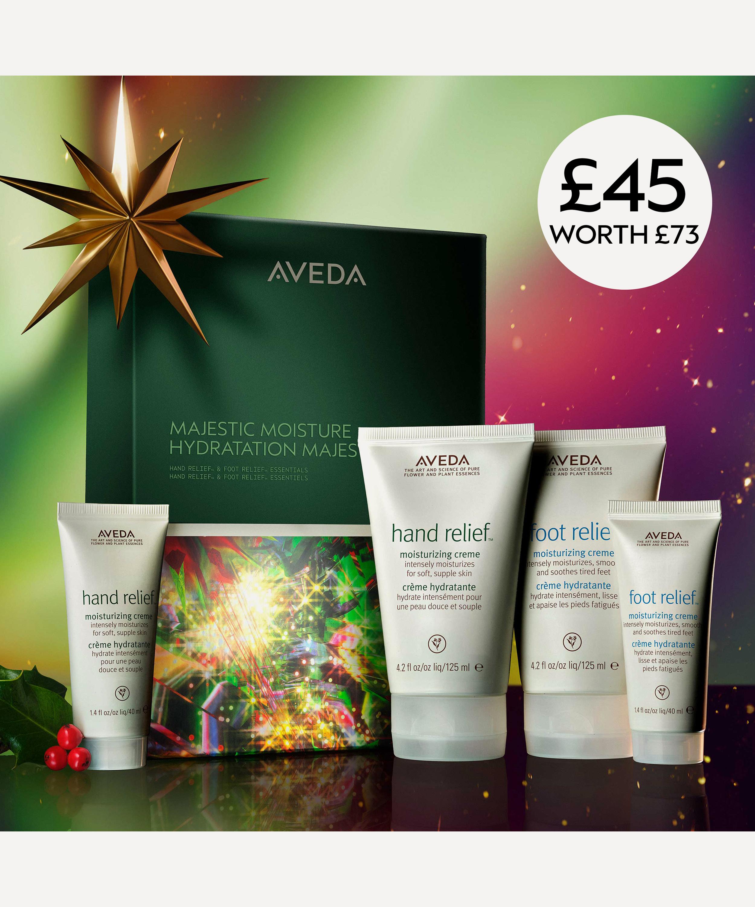 Enhance your daily beauty rituals with Majestic Moisture: Hand Relief™ & Foot Relief™ – a gift set by Aveda, designed to moisture your hands and feet, leaving them smooth and supple.