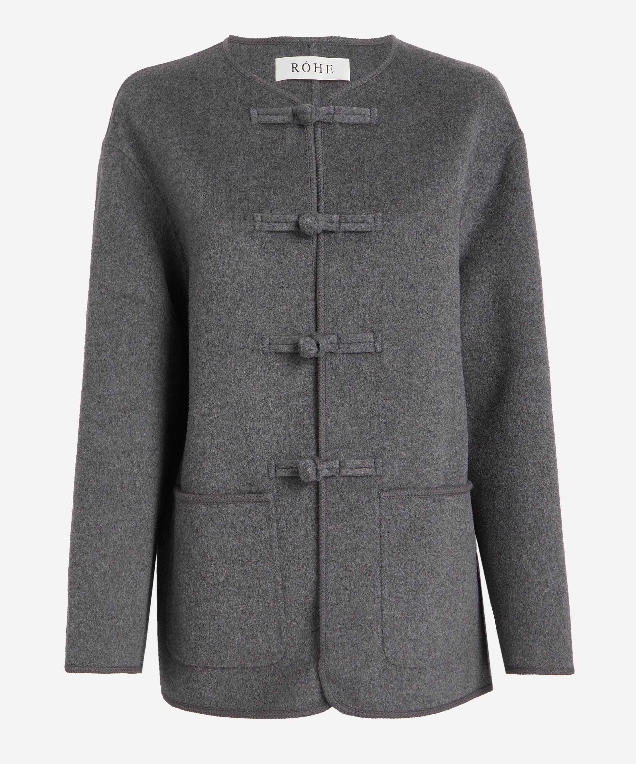 Crafted from luxurious double-faced wool-cashmere, this signature Róhe jacket exudes effortless refinement with its mandarin collar, pankou closure, and embroidered edges. Bold yet elegant, it leaves a lasting impression on any occasion.