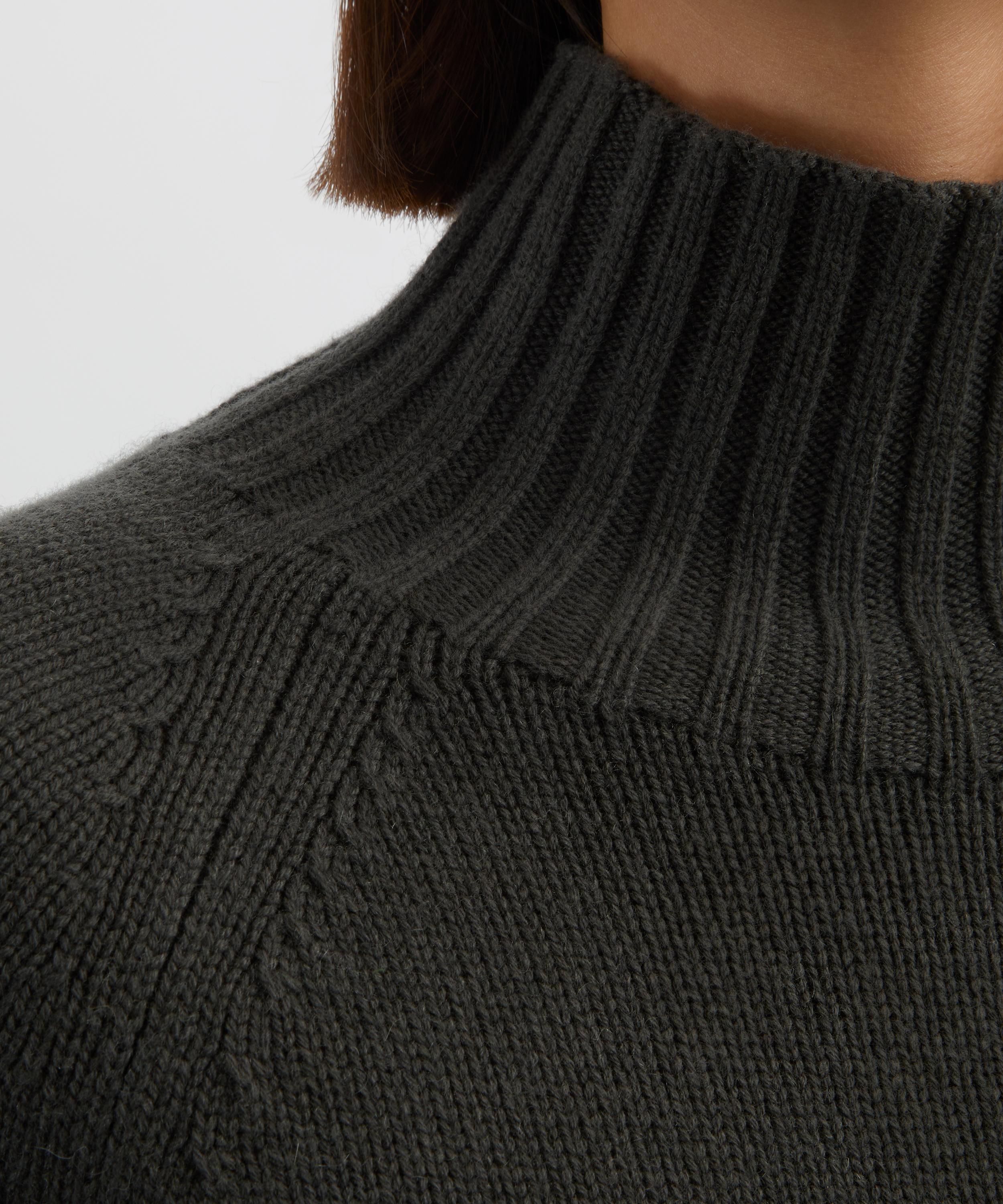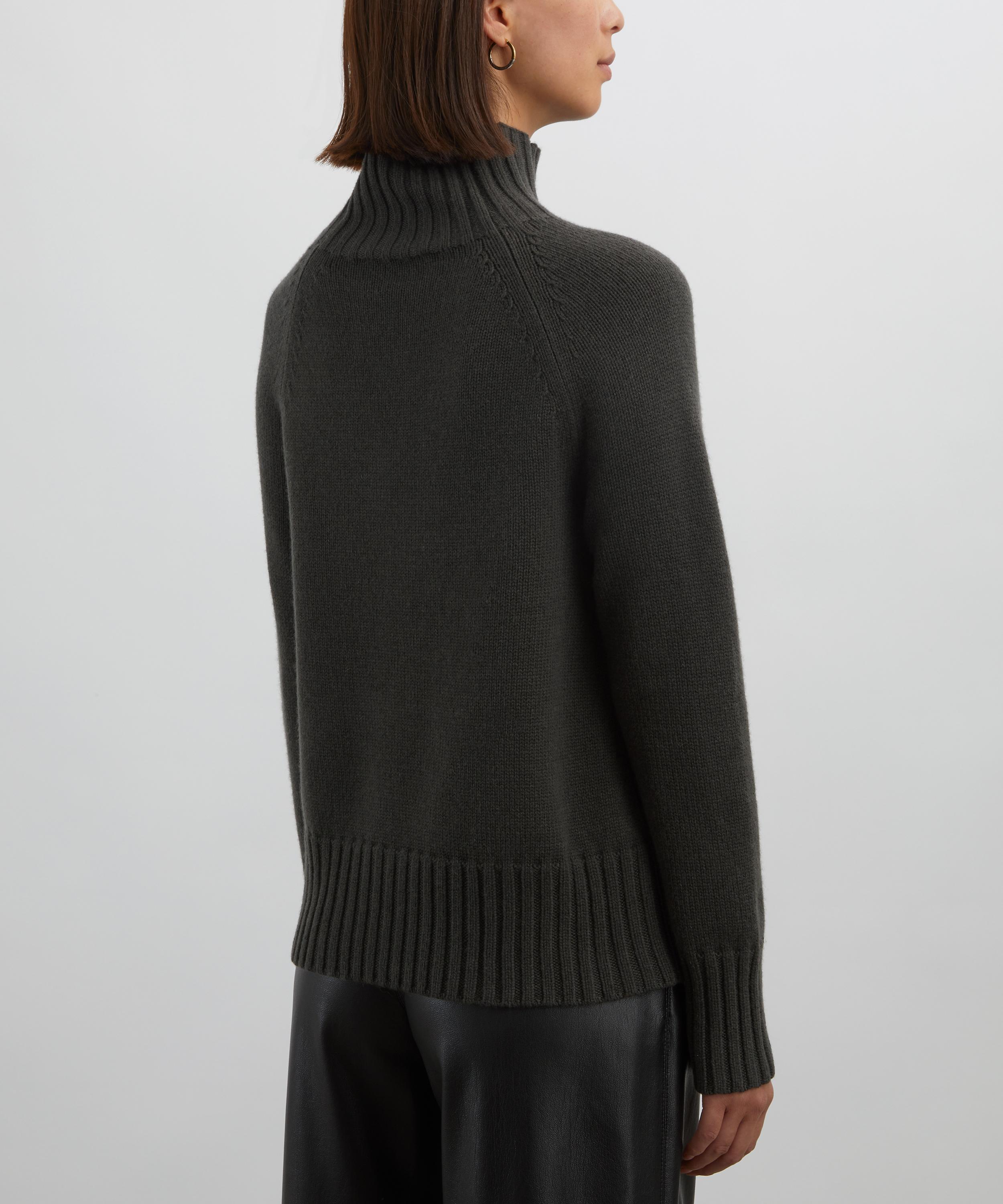 Crafted from a luxurious wool and cashmere blend, this knitted jumper exudes understated elegance with its boxy fit, long raglan sleeves, and heat-retaining high-neck.