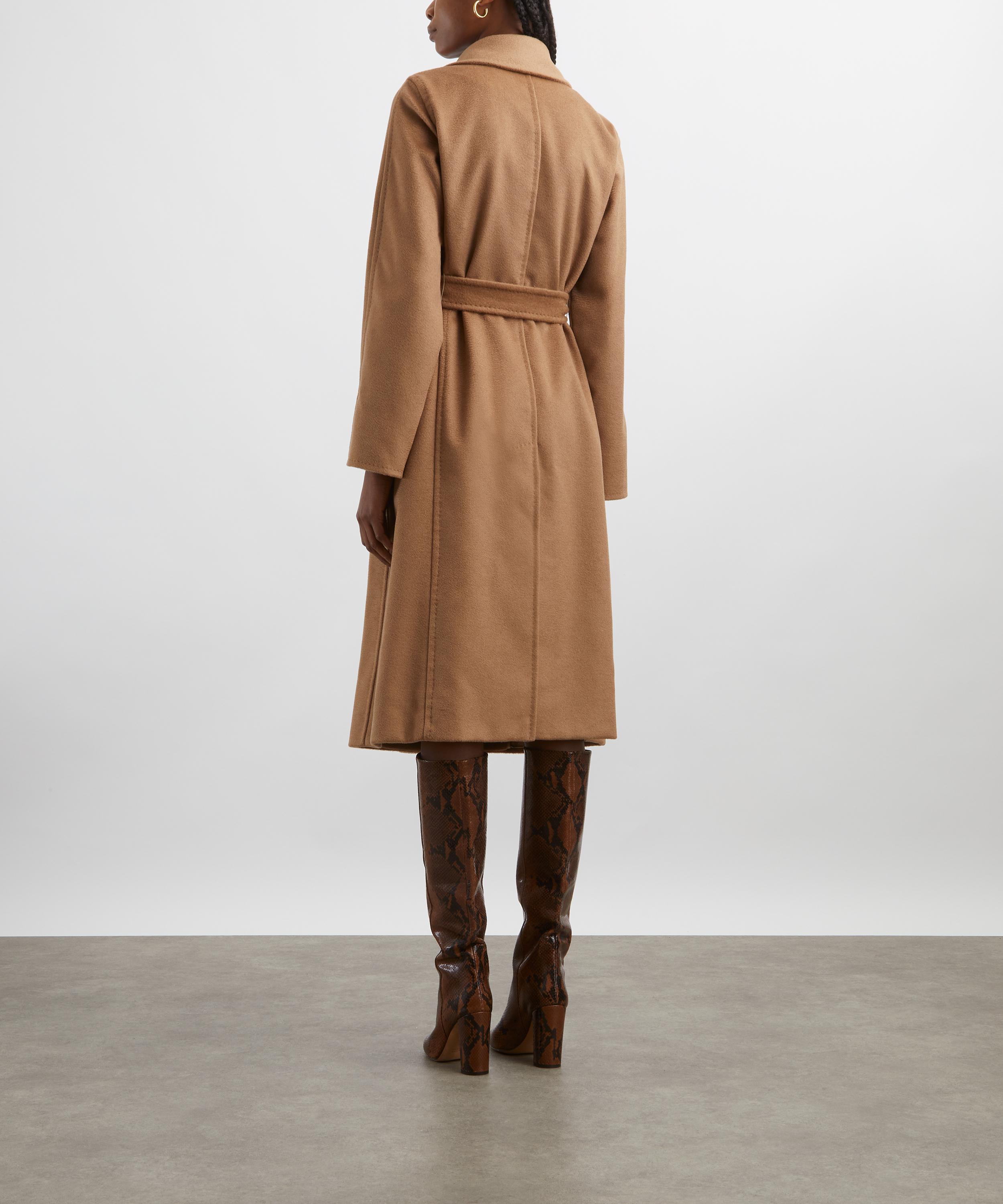 The Manuela Camelwool Robe Coat exemplifies Max Mara’s commitment to quality fabrics and exceptional tailoring.