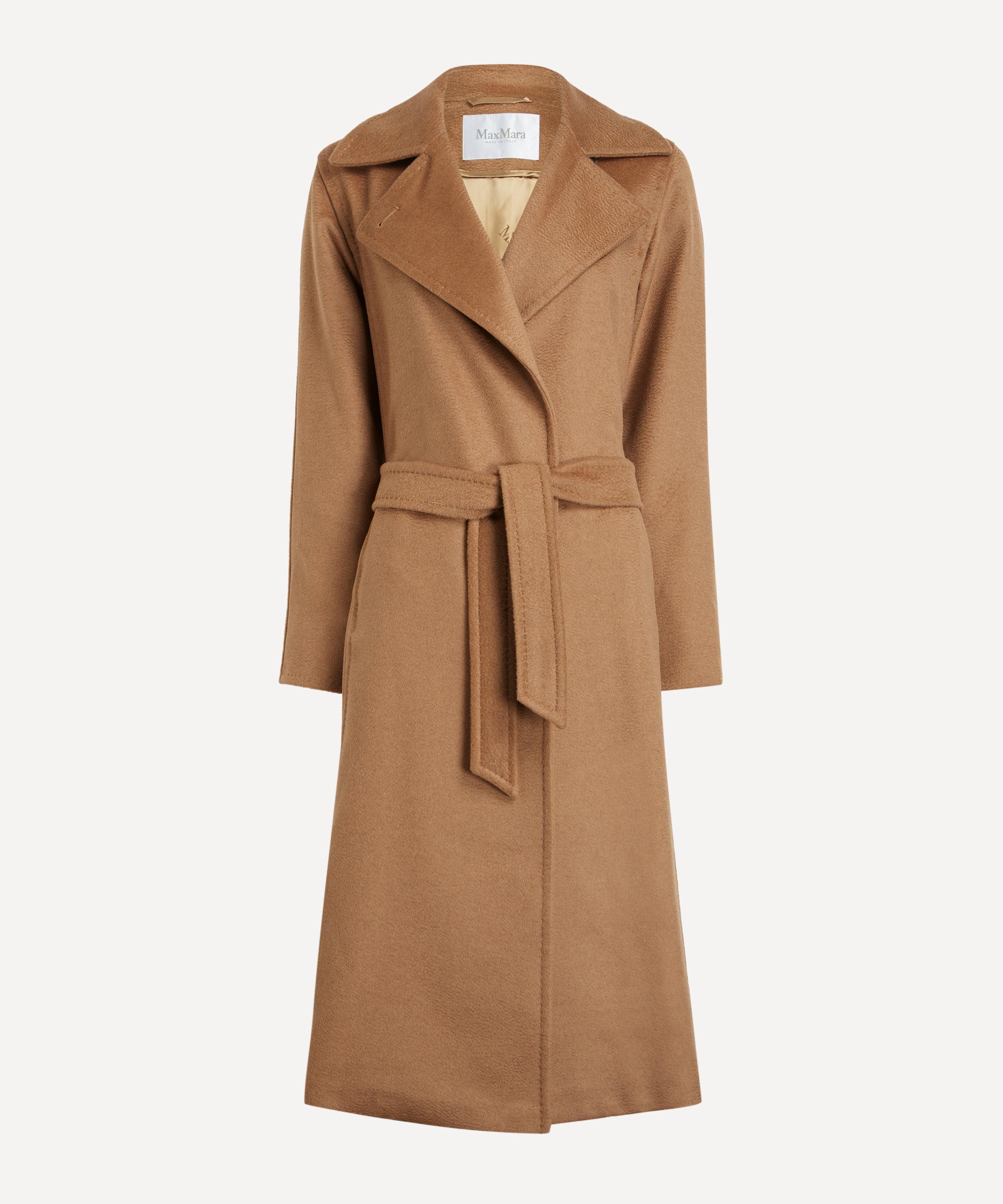 The Manuela Camelwool Robe Coat exemplifies Max Mara’s commitment to quality fabrics and exceptional tailoring.