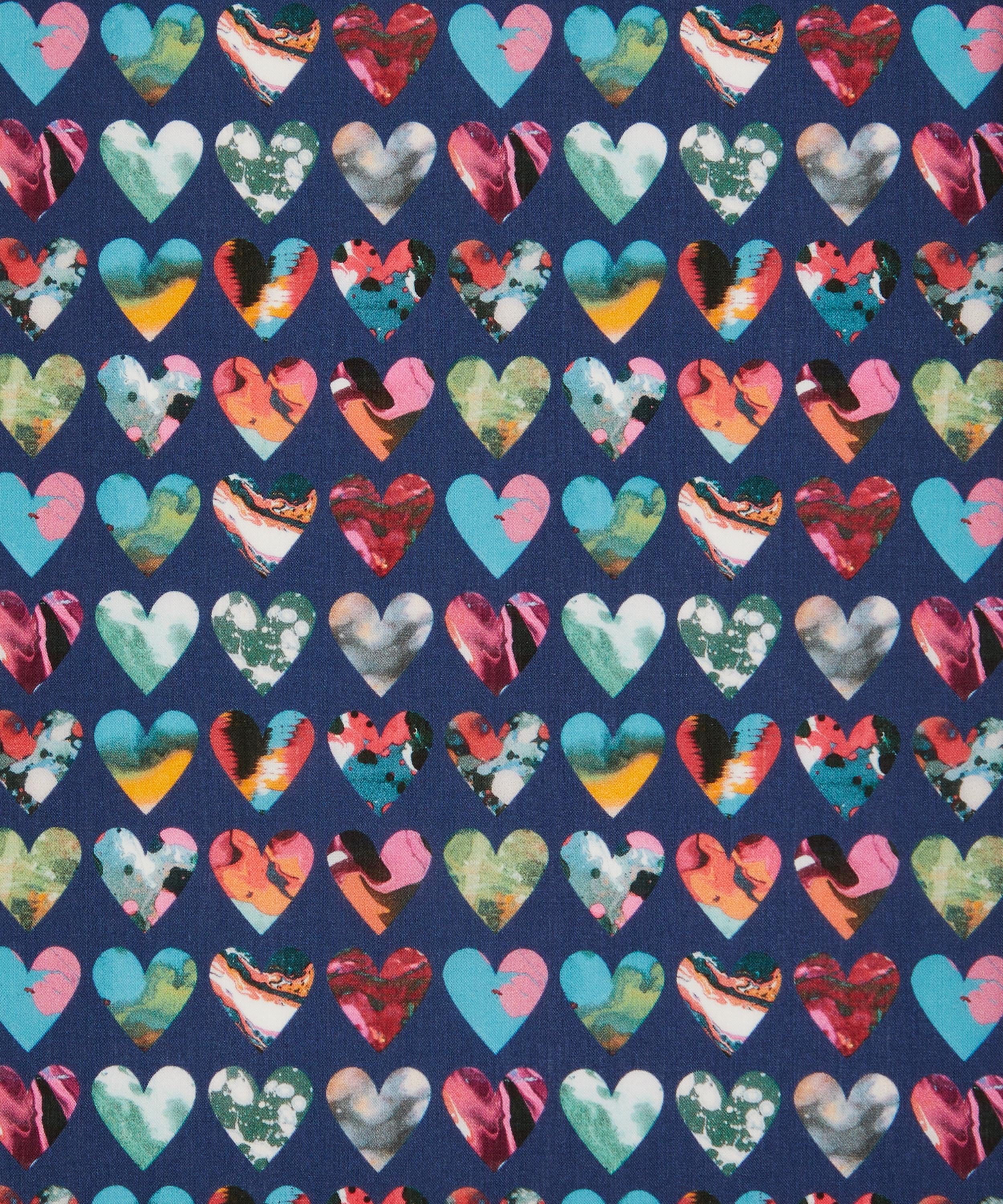 Designed by the Liberty studio in 2014, this highly textural grid of formally arranged hearts features a multitude of gradating colours and mark-making techniques.