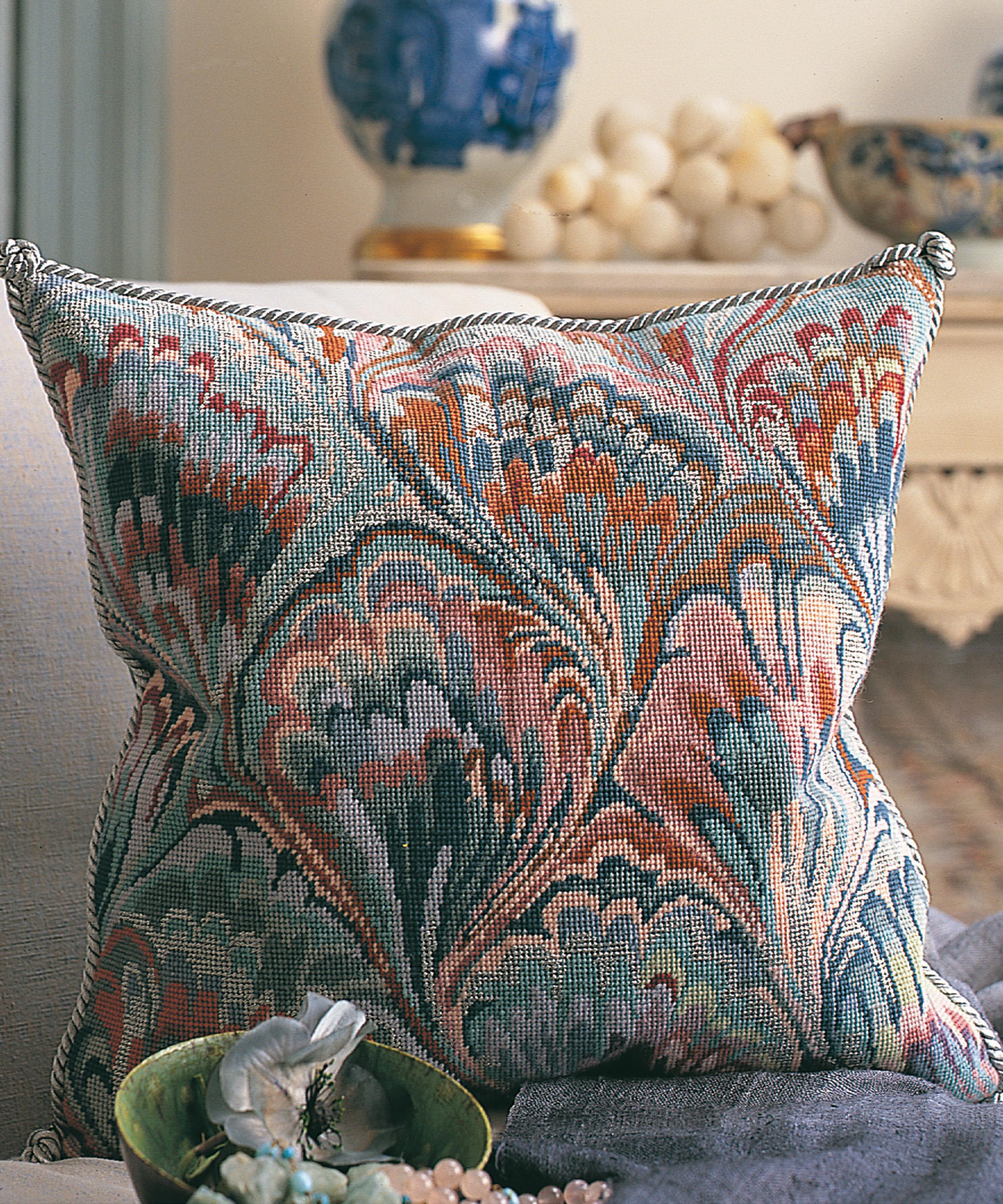 Drawing inspiration from the Venetian art of paper marbling, this needlepoint kit has everything you need to dream up an artful cushion.