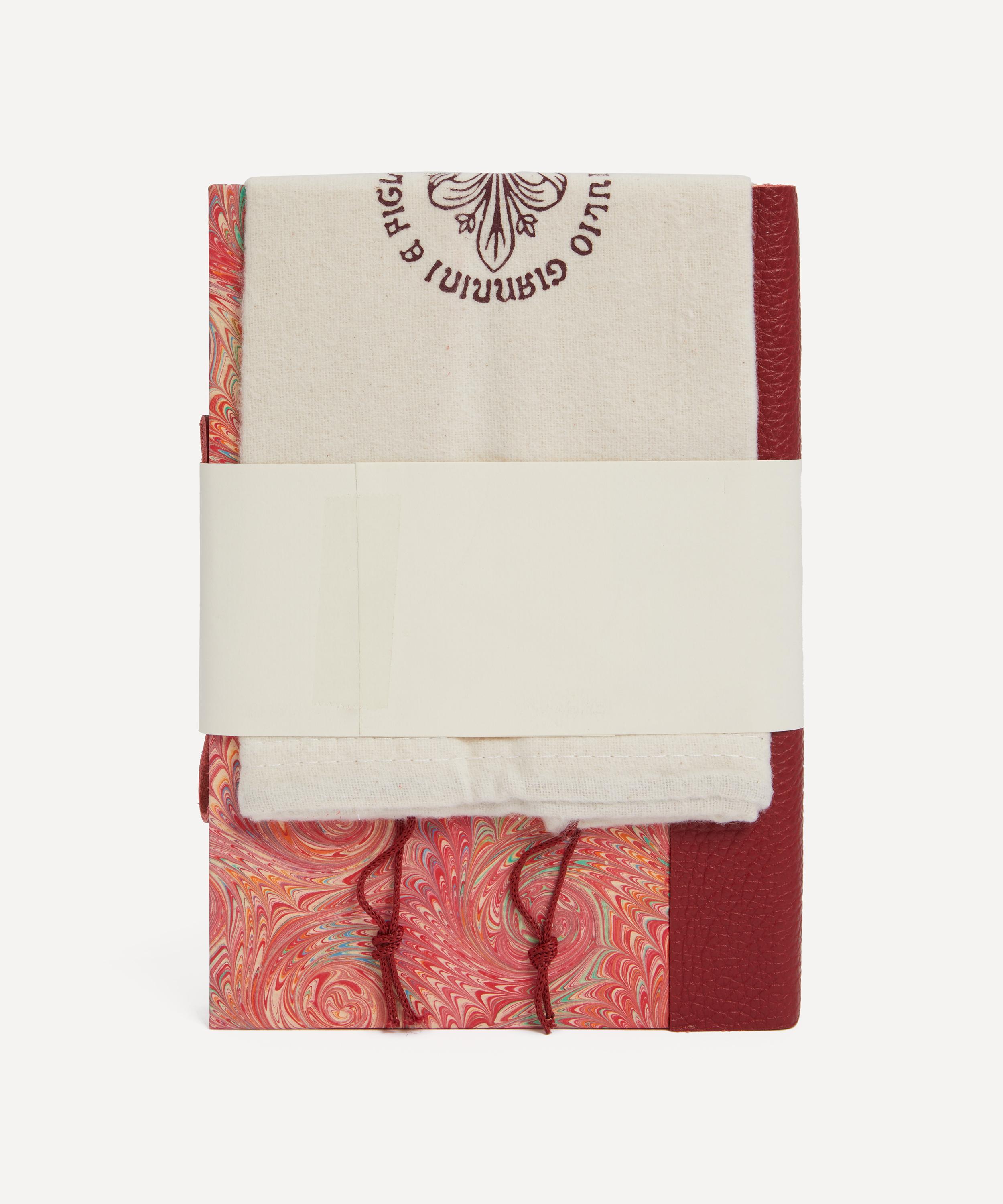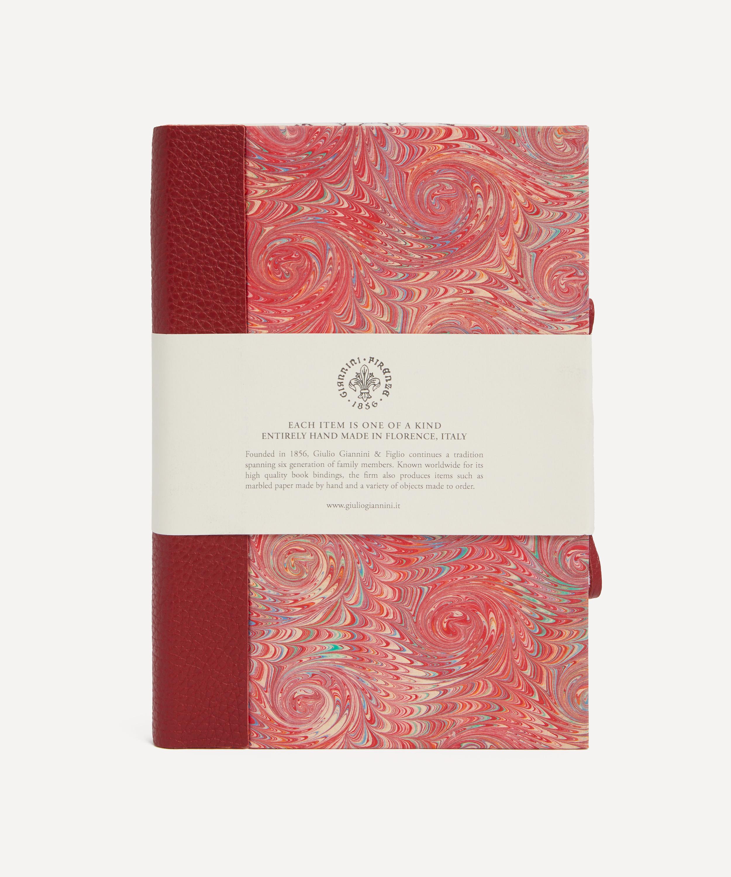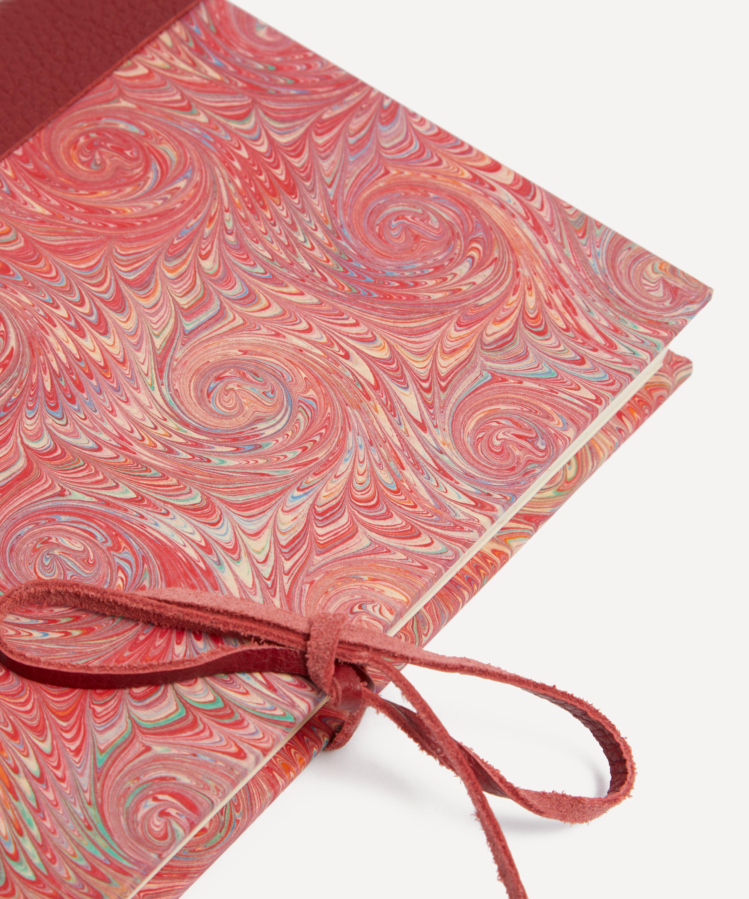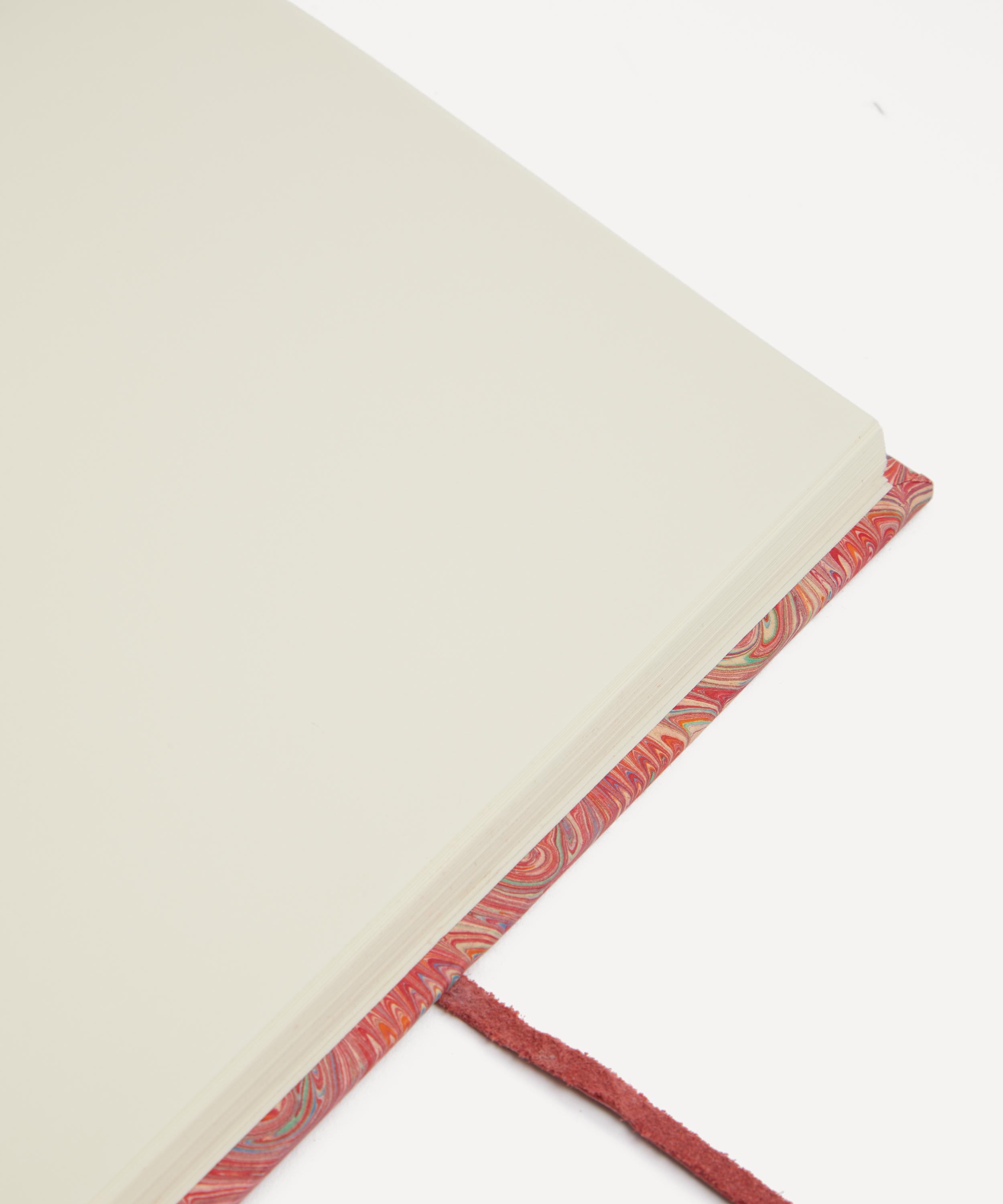Hand marbled in Florence, this notebook has been meticulously crafted using an expertise that has be honed for generations by city natives Giannini at their family-run Bottega d'Arte. Featuring a naturally tanned leather spine and tie with creamy ivory pages, keep this notebook on hand for those sudden bursts of inspiration.