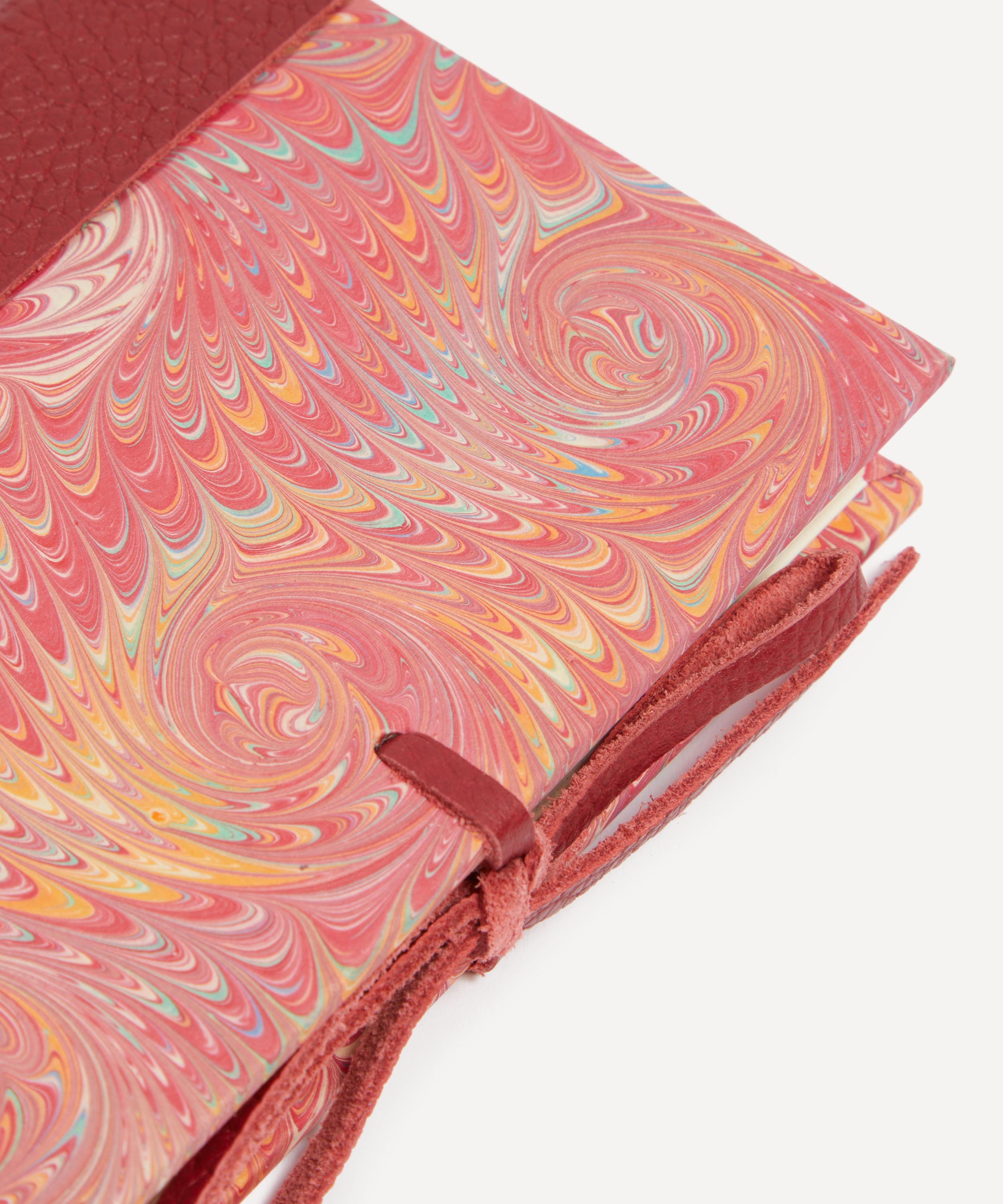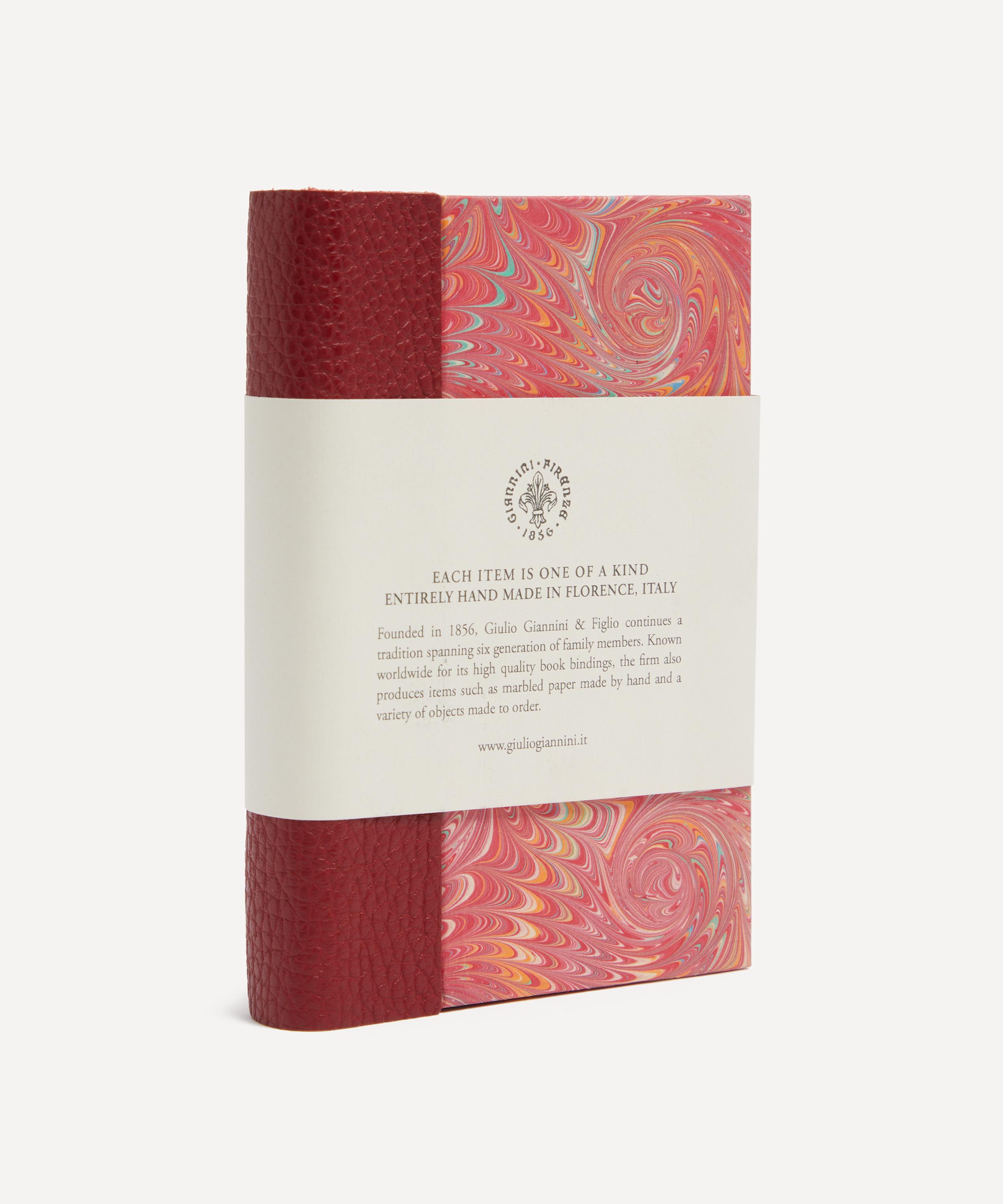 Hand marbled in Florence, this notebook has been meticulously crafted using an expertise that has be honed for generations by city natives Giannini at their family-run Bottega d'Arte. Featuring a naturally tanned leather spine and tie with creamy ivory pages, keep this notebook on hand for those sudden bursts of inspiration.