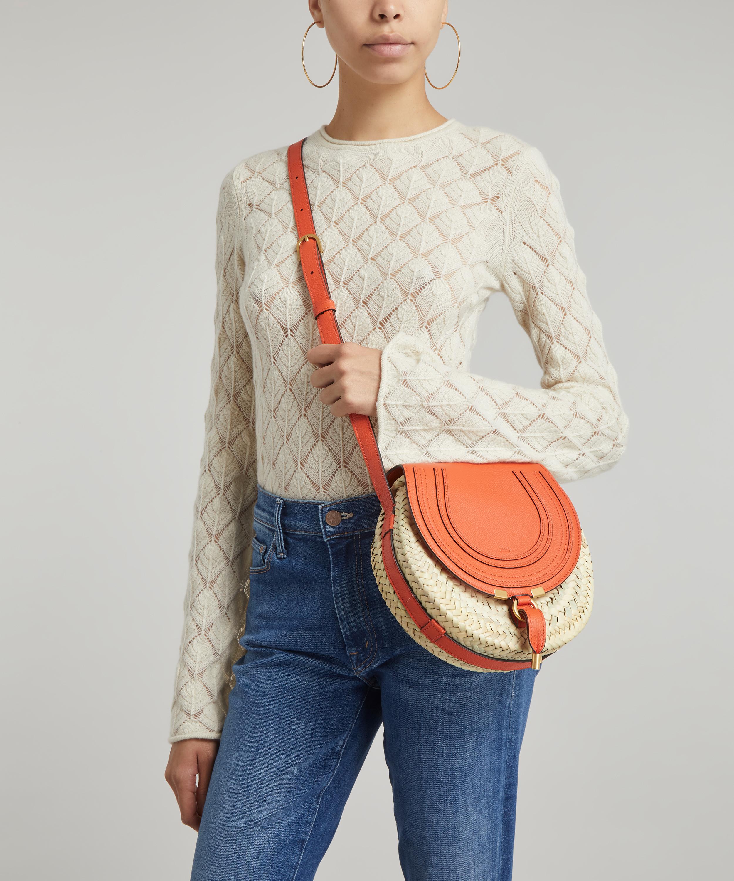 Epitomising a summer staple, the Small Marcie Cross-Body basket bag is cut from grained calfskin leather by iconic fashion house Chloe.