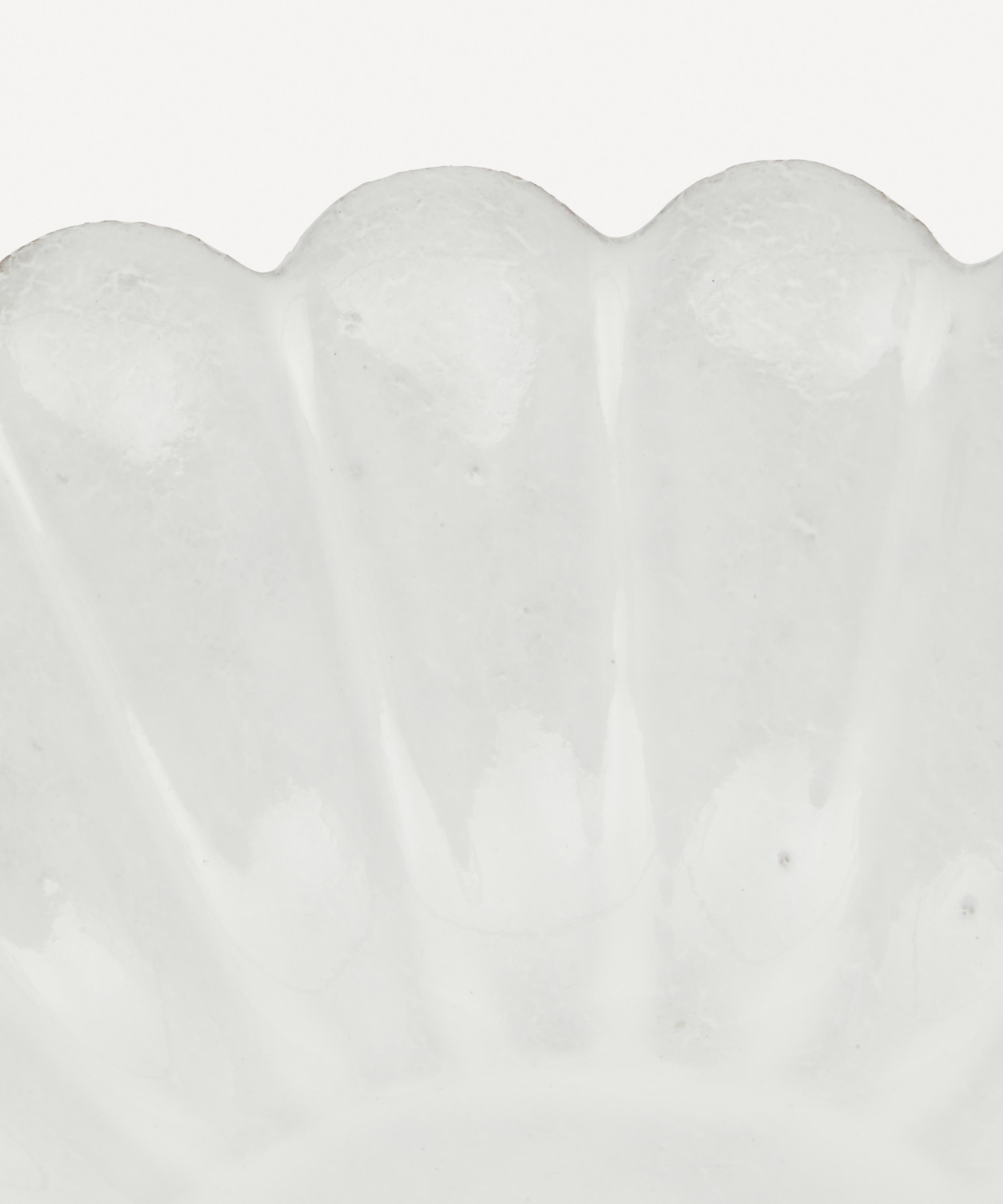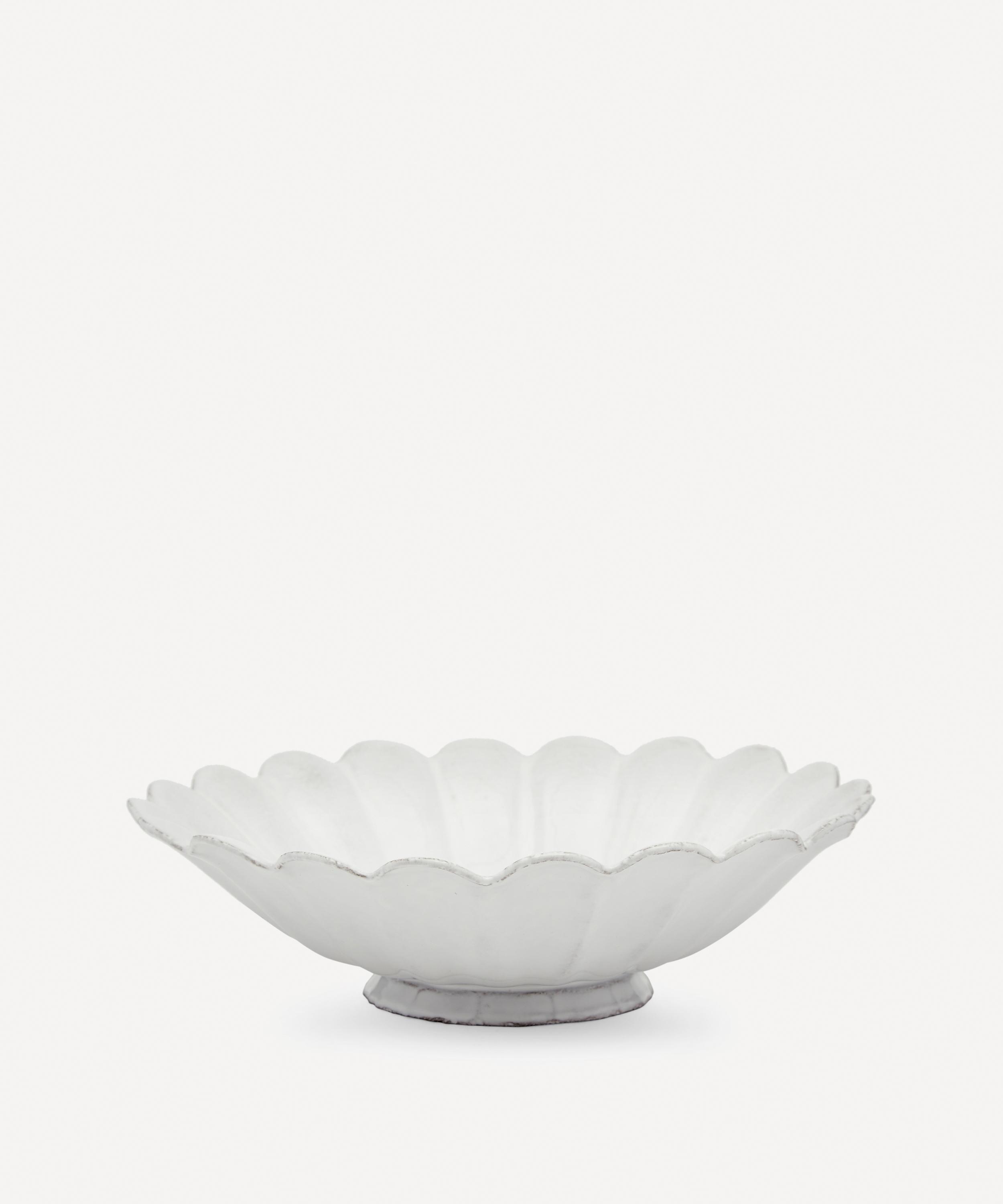 Votary of pre-industrial fabrication, Astier de Villatte is celebrated for being the one and only studio in Paris to hold and harbour the traditions of artisanal ceramic production. Restoring the ancestral systems of moulding and stamping, the Marguerite fruit bowl is made using handcrafting techniques from the Middle Ages which involve moulding a handmade sheet of clay, double firing the ‘biscuit’ piece and glazing the product in white enamel – a lengthy process that involves a drying time of up to one month. Characterised by a pillar base and scalloped edge design, it is engraved with the brand’s signature crest - depicting an interlacing A & V - alongside the initials of one of the 40 master artisans who created it. Each handmade piece tells a beautiful story, it romances and imparts a sense of nostalgia into its owner. Arrange with other serveware in the collection to breathe an air of authenticity into your table setting.