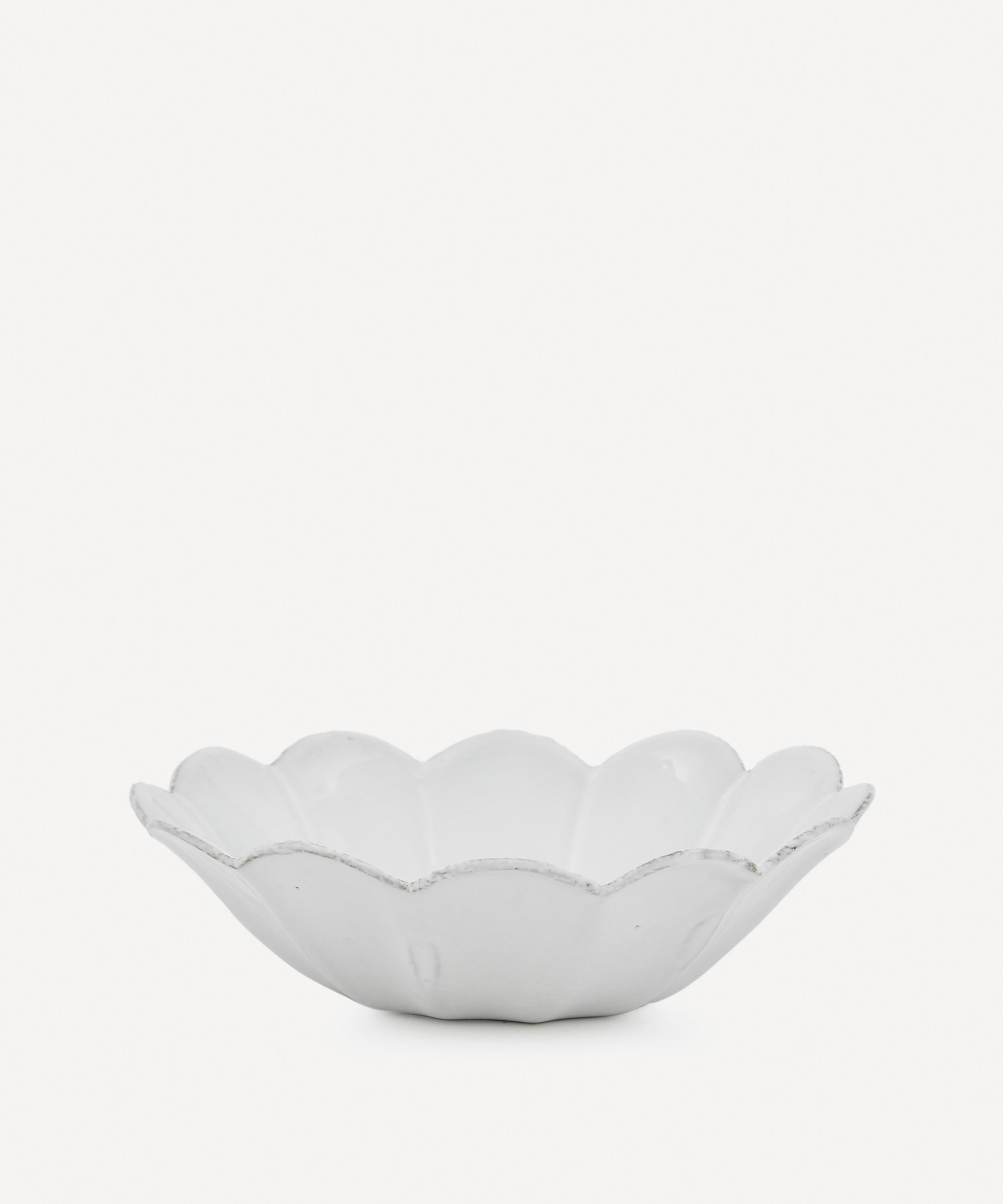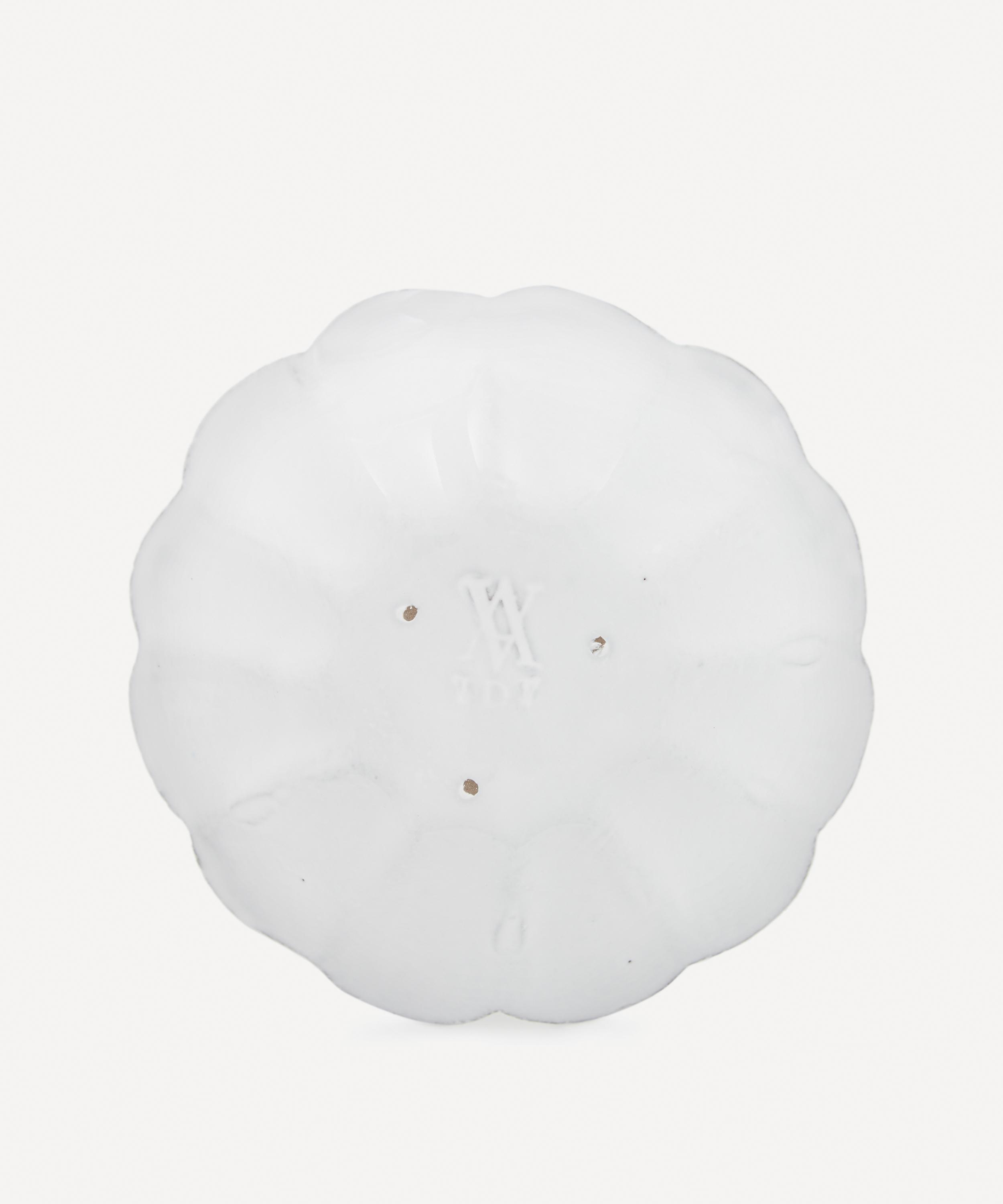 Votary of pre-industrial fabrication, Astier de Villatte is celebrated for being the one and only studio in Paris to hold and harbour the traditions of artisanal ceramic production. Restoring the ancestral systems of moulding and stamping, the Marguerite fruit bowl is made using handcrafting techniques from the Middle Ages which involve moulding a handmade sheet of clay, double firing the ‘biscuit’ piece and glazing the product in white enamel – a lengthy process that involves a drying time of up to one month. Characterised by its scalloped sides and high-gloss finish, the bowl is engraved with the brand’s signature crest – depicting an interlacing A & V – alongside the initials of one of the 40 master artisans who created it. Each handmade piece tells a beautiful story, it romances and imparts a sense of nostalgia into its owner. Arrange with other serveware in the collection to breathe an air of authenticity into your table setting.