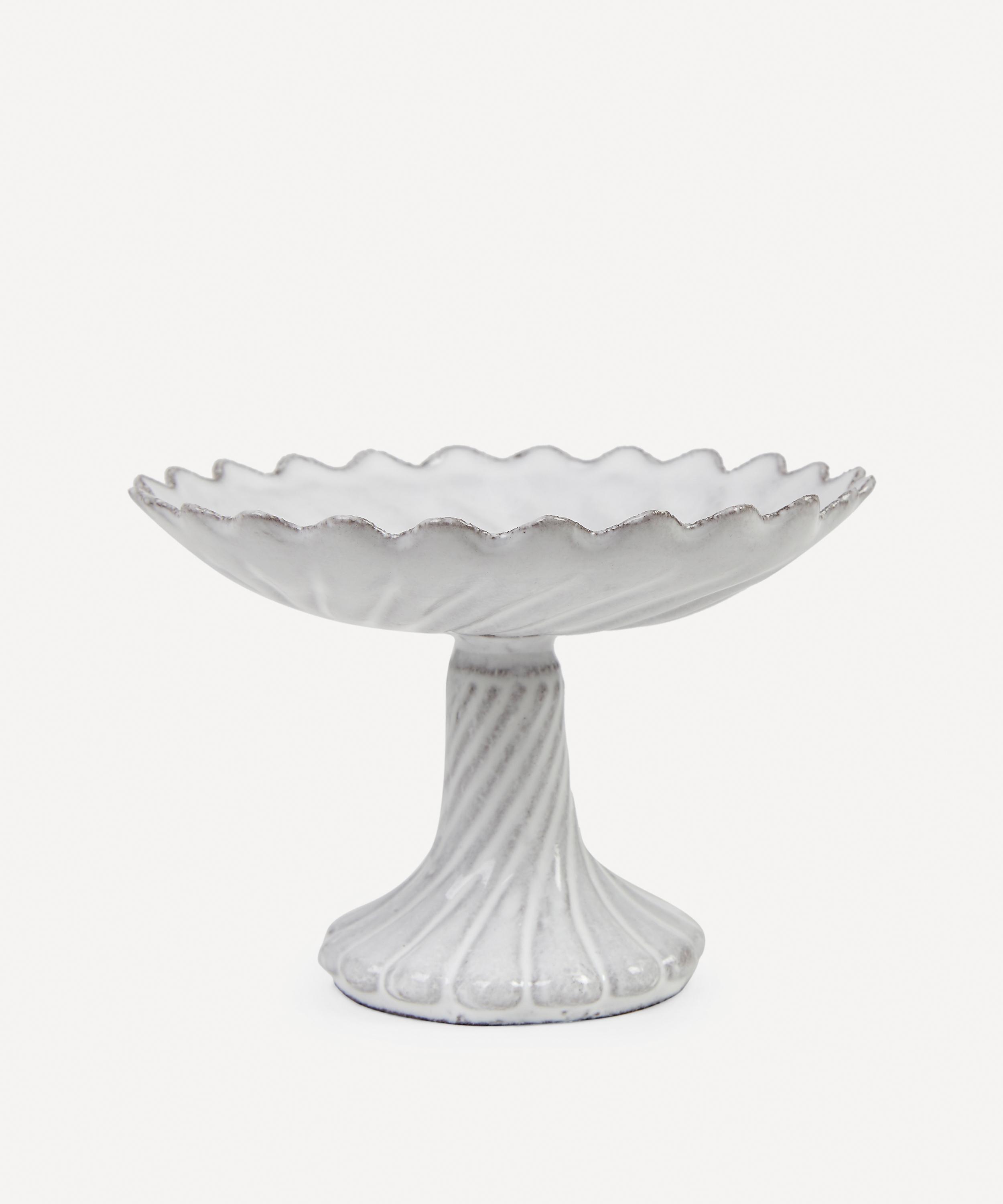 Votary of pre-industrial fabrication, Astier de Villatte is celebrated for being the one and only studio in Paris to hold and harbour the traditions of artisanal ceramic production. Restoring the ancestral systems of moulding and stamping, the Marguerite stand is made using techniques from the Middle Ages which involve moulding a sheet of handmade clay, double firing the ‘biscuit’ piece and glazing the product in white enamel – a lengthy process that requires a drying time of up to one month. Characterised by an undulating rim and an opulent ridged base, the stand is engraved with the brand’s signature crest - depicting an interlacing A & V - alongside the initials of one of the 40 master artisans who created it. Each handmade piece tells a beautiful story, it romances and imparts a sense of nostalgia into its owner. Pair with other ornate pieces from the collection for a coordinated decorative approach.