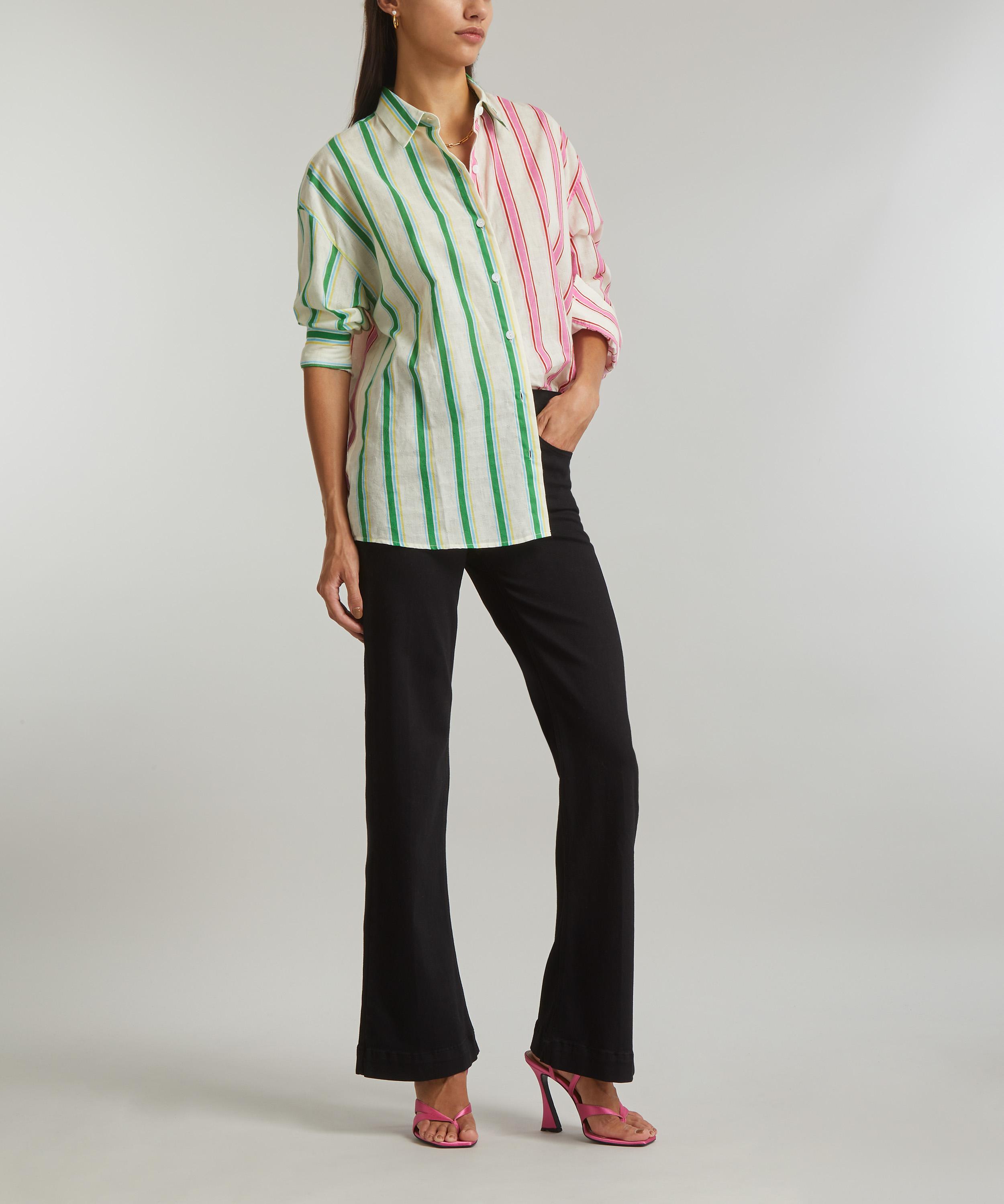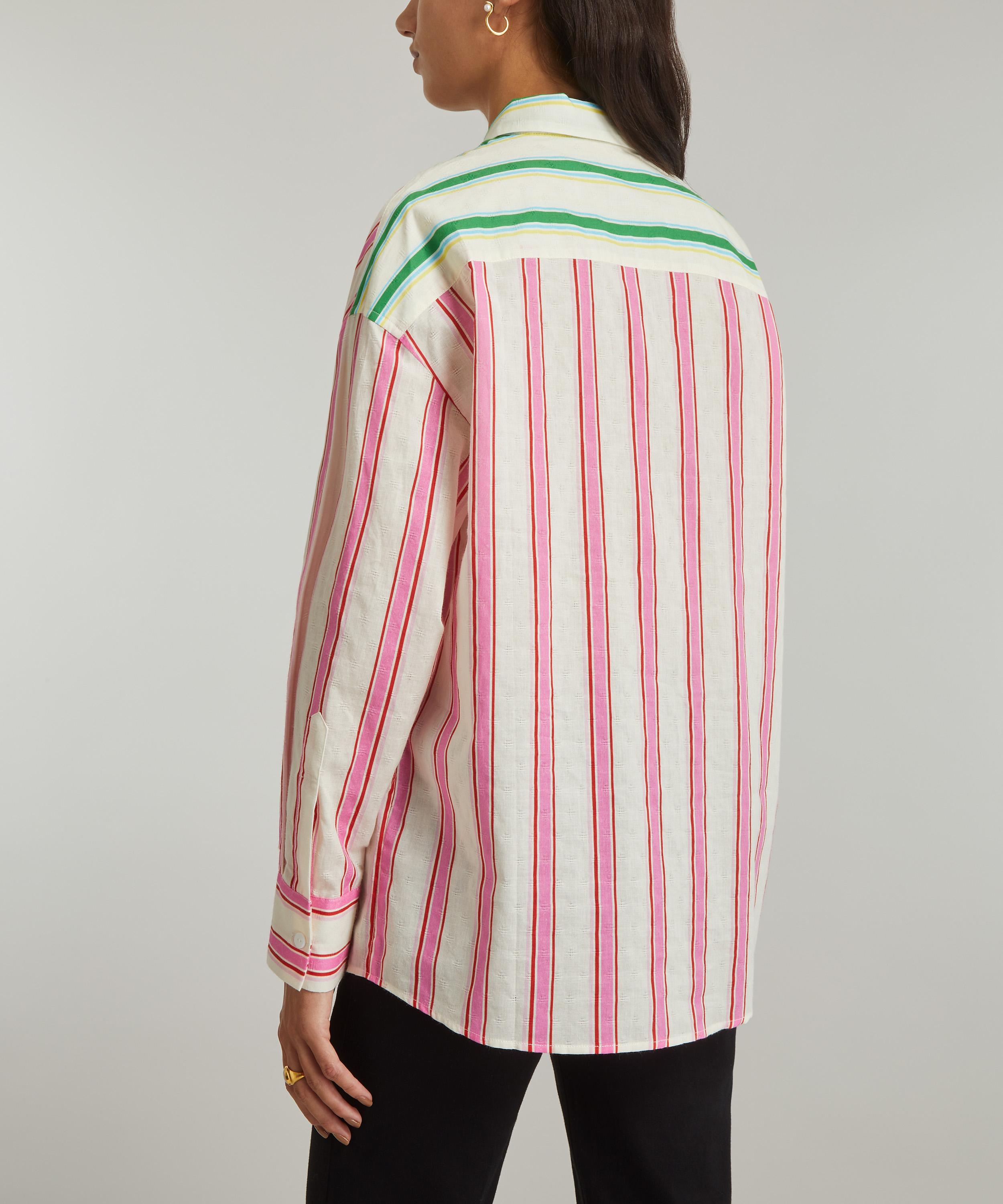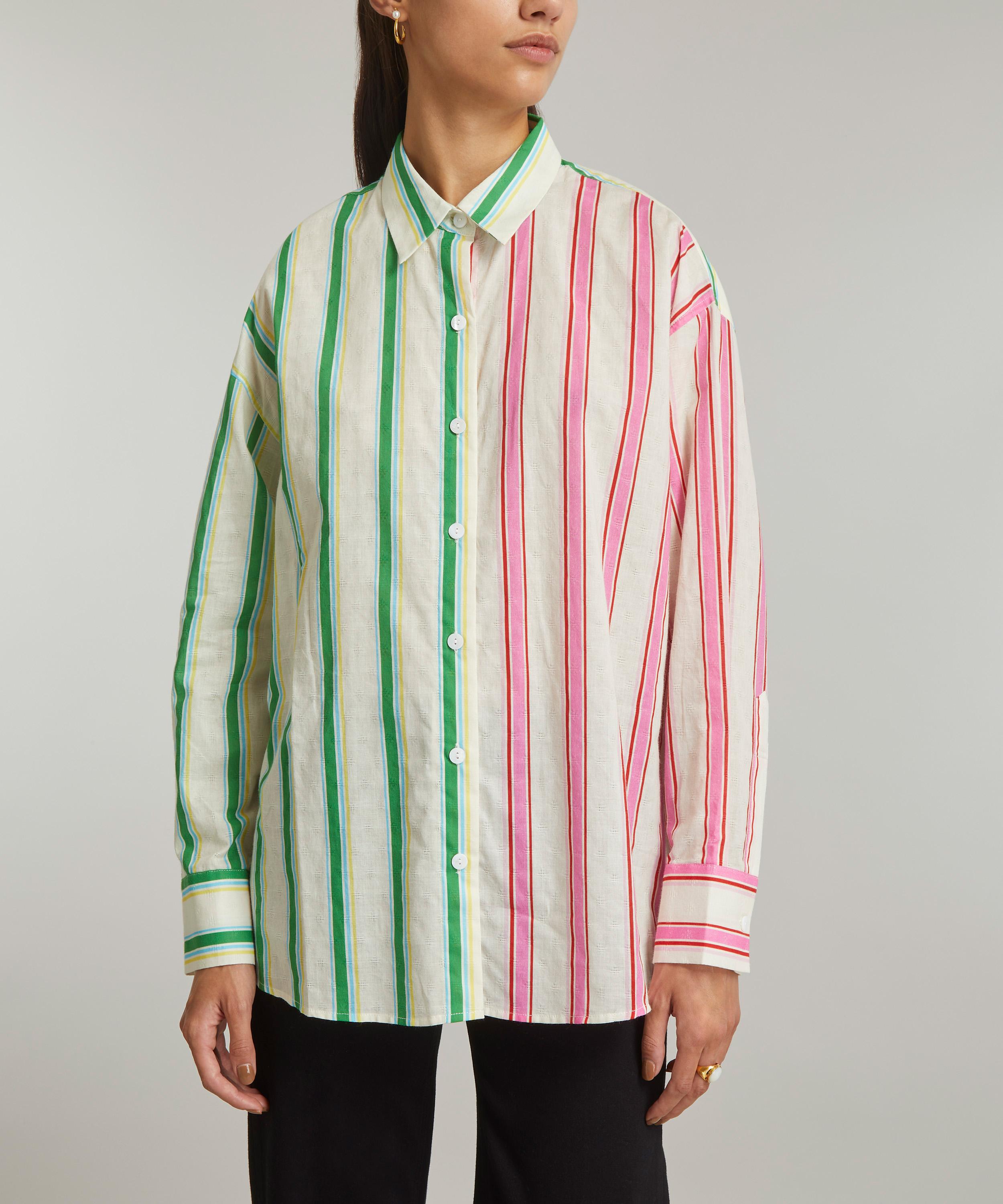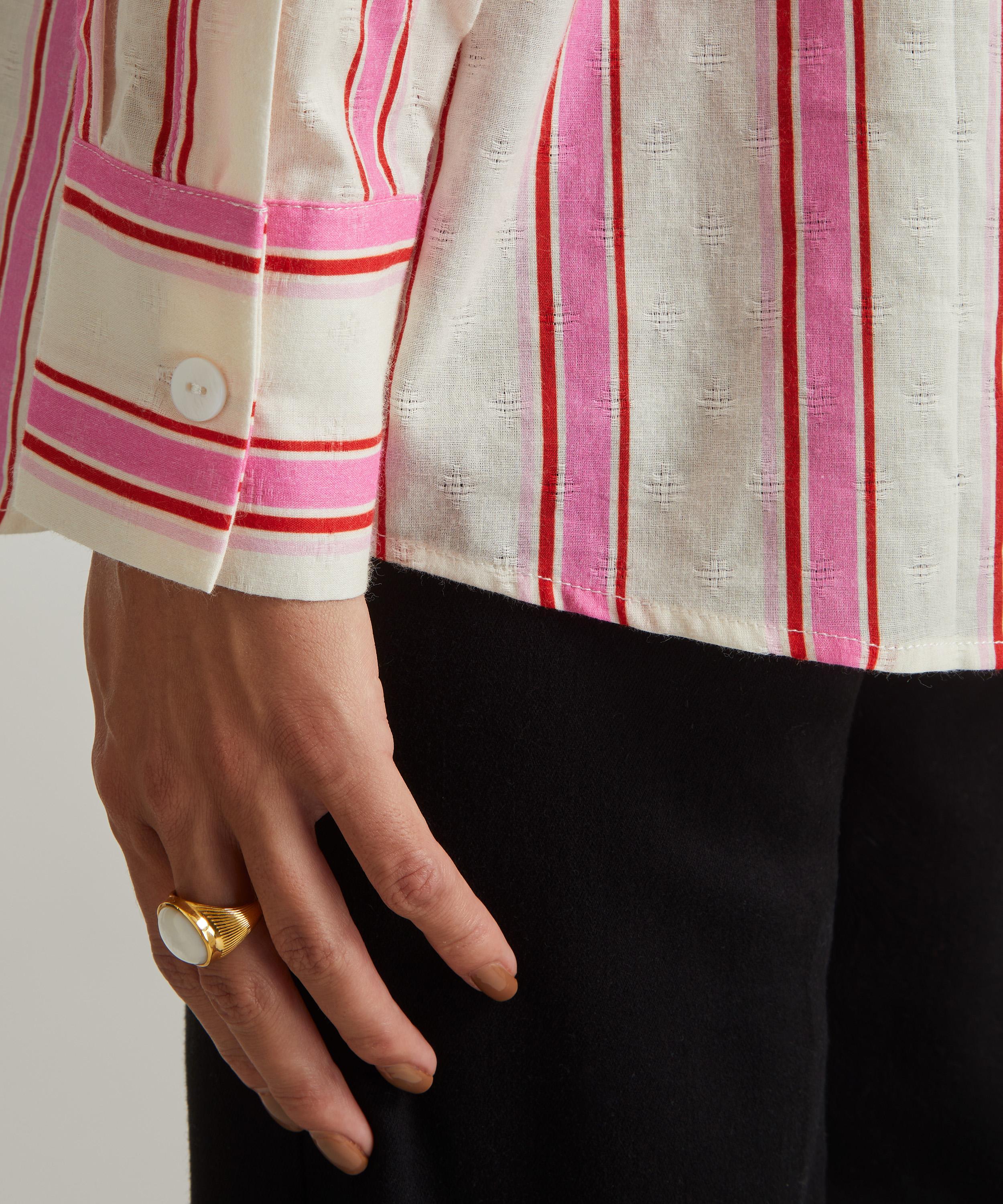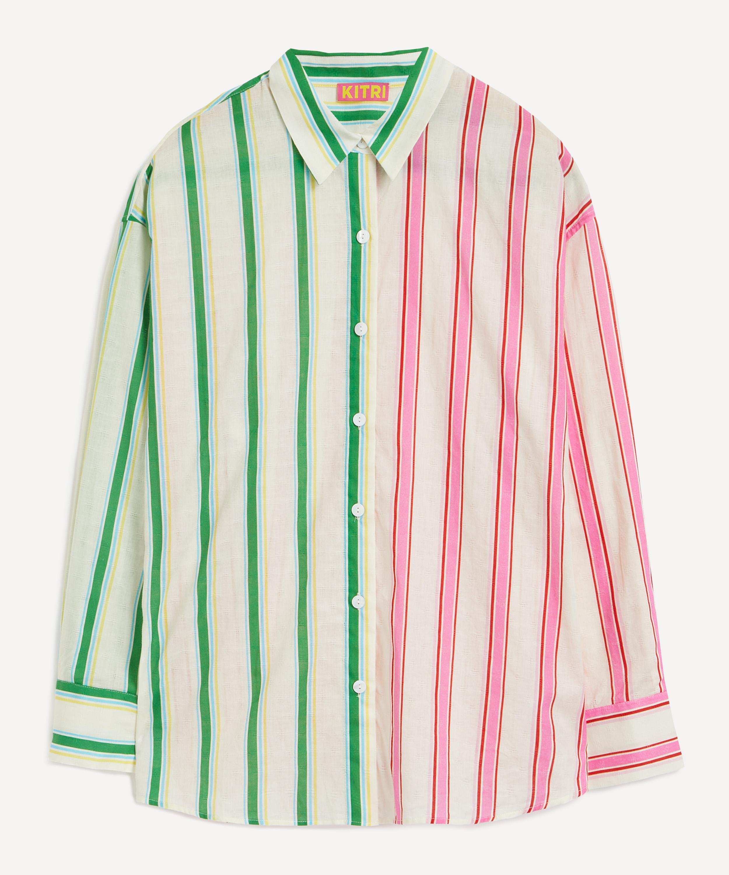 The Marianna Multi-Stripe shirt from KITRI is an effortlessly sophisticated addition to your sartorial edit. Cut from cotton jacquard for a relaxed, boxy fit with dropped shoulders and a classic collared neckline, it’s accentuated by playful market stripes of contrasting pink and green.