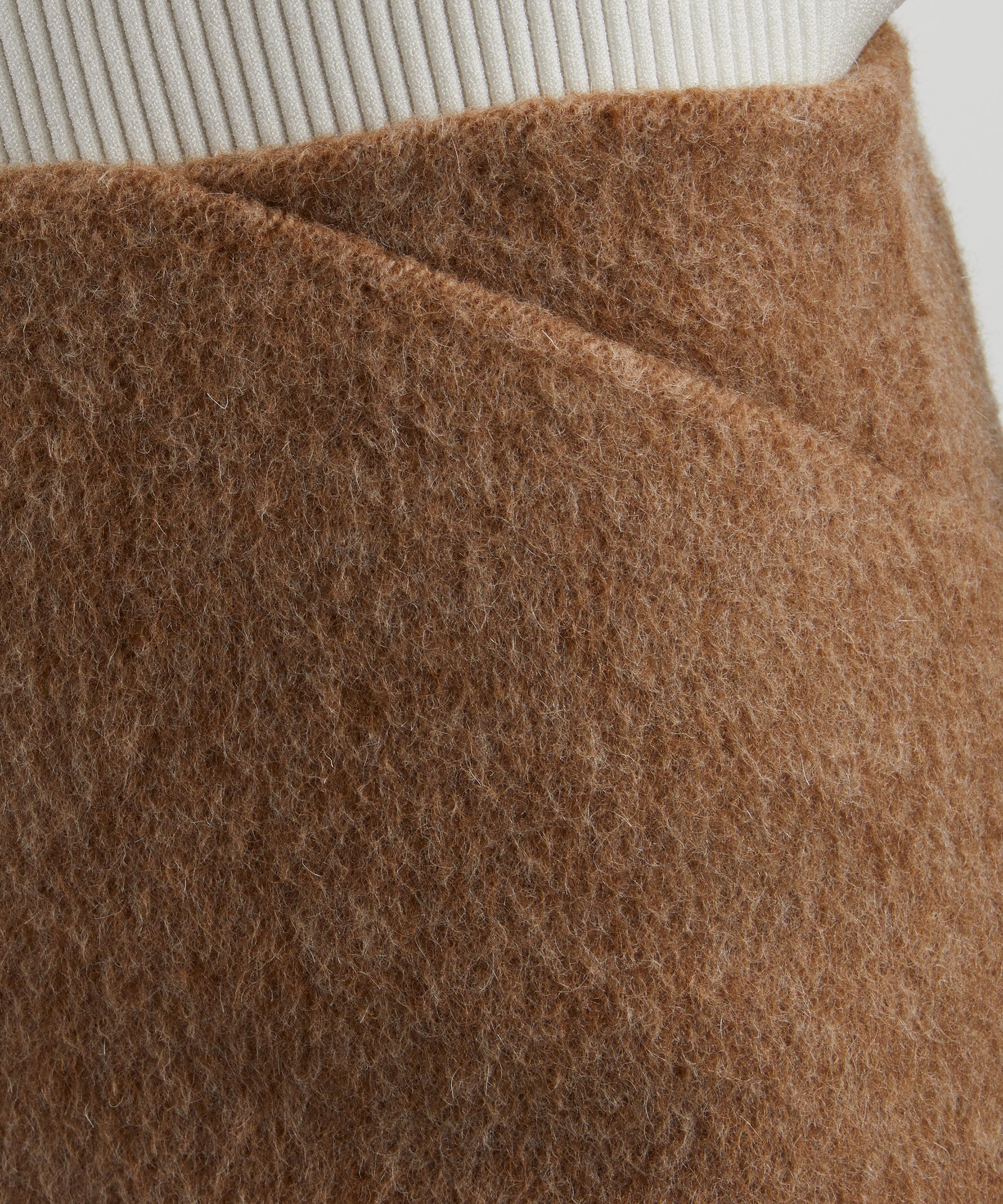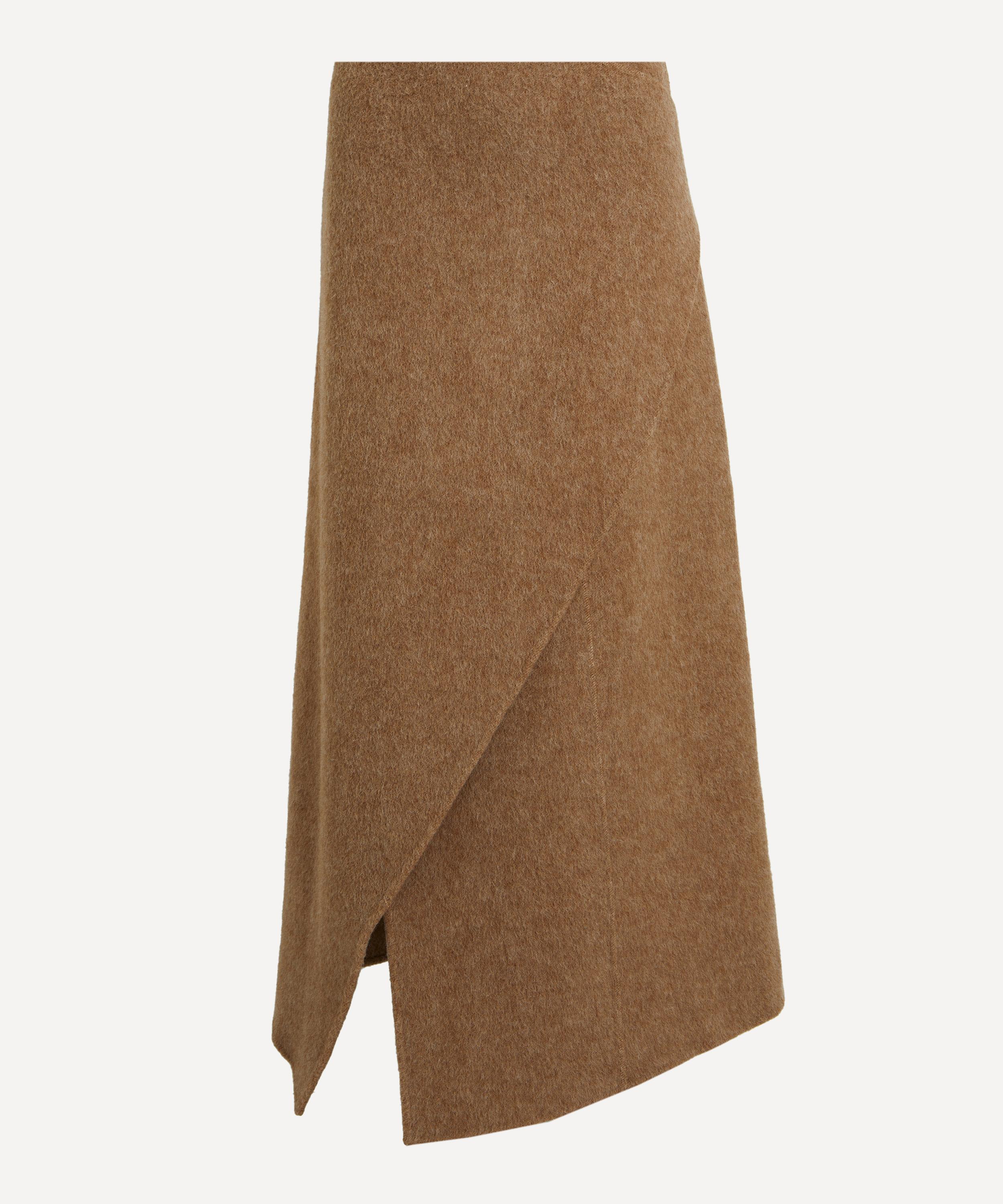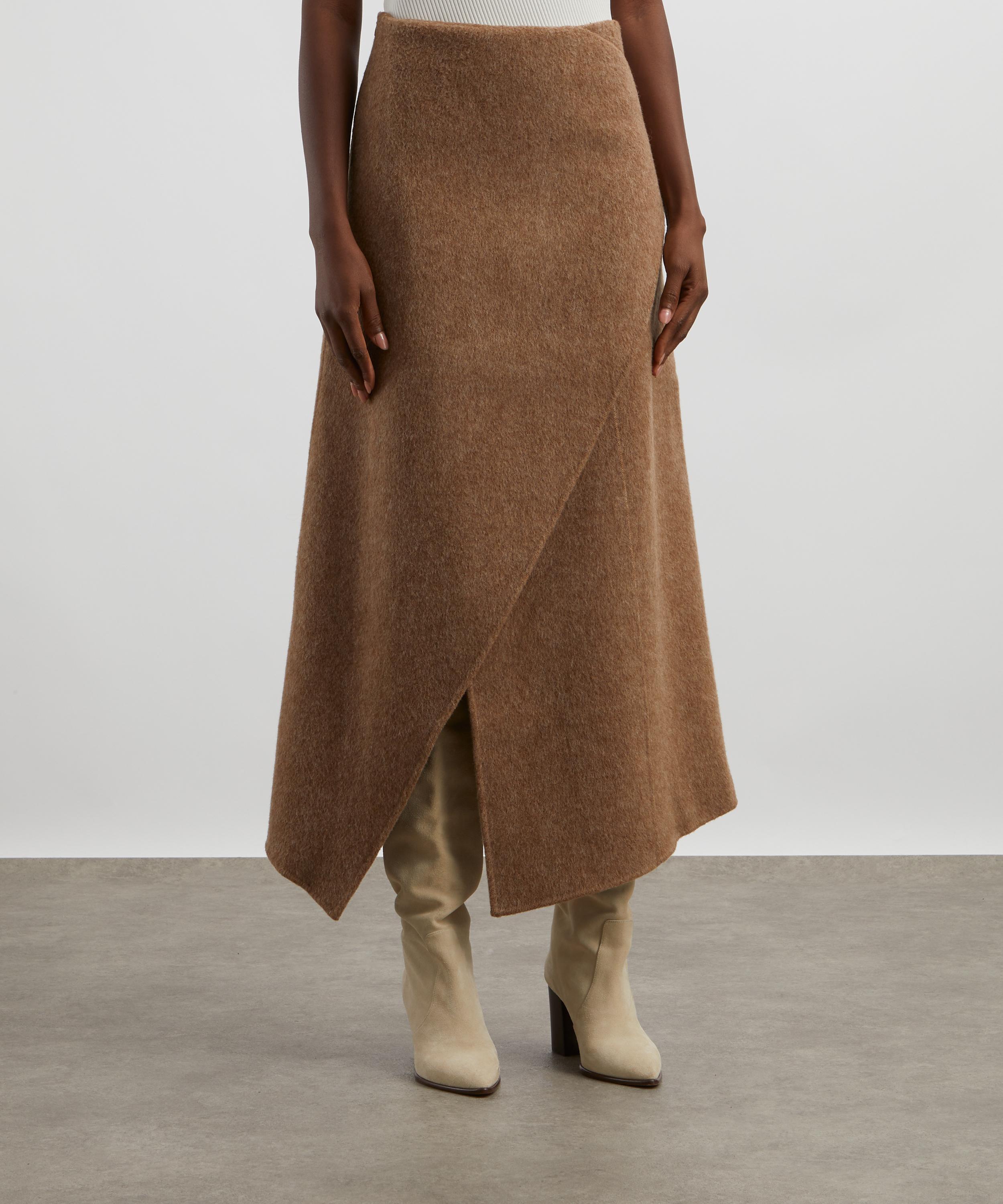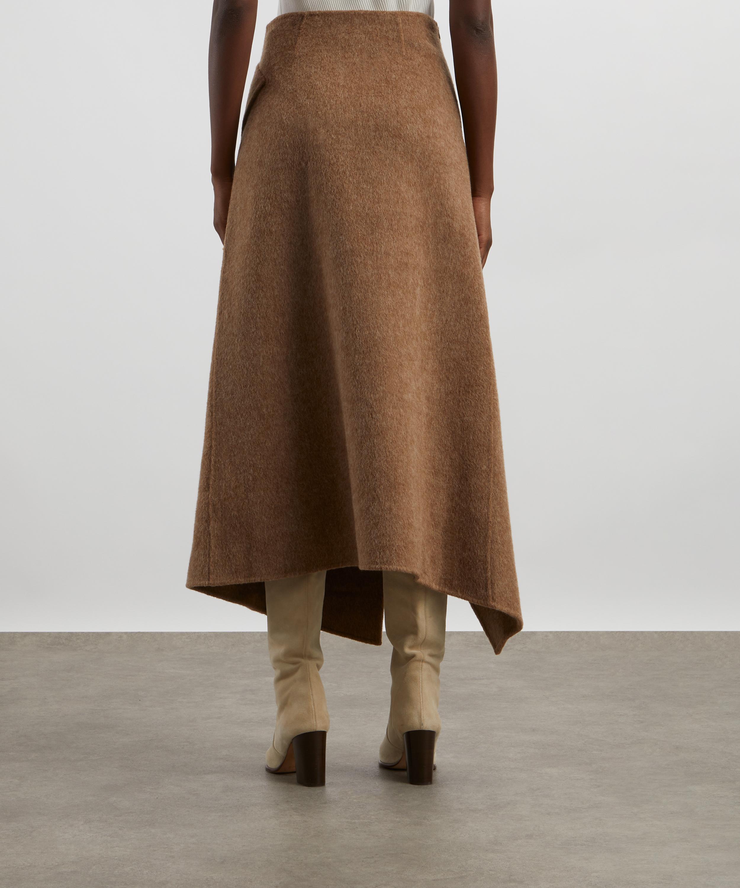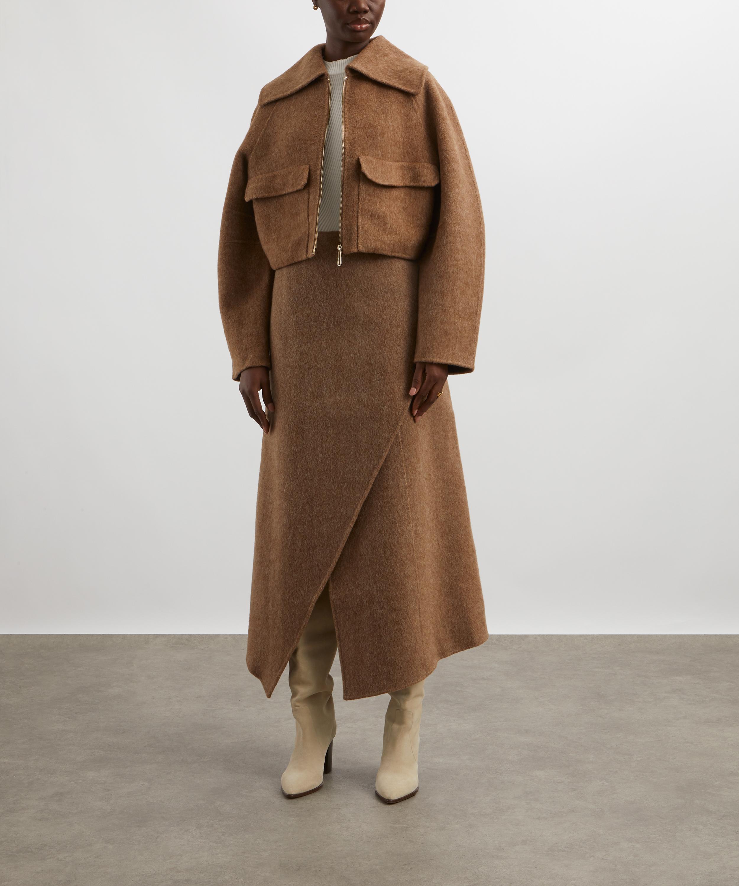 Crafted from luxurious wool and alpaca, this statement winter skirt features a sculptural silhouette, a longer A-line profile, and an asymmetric hemline for a seamless, wrapped look. Finished with premium seam and dart tailoring, it offers an elevated take on outerwear elegance. Pair it with the coordinating Alto Cropped Jacket for a sophisticated look.