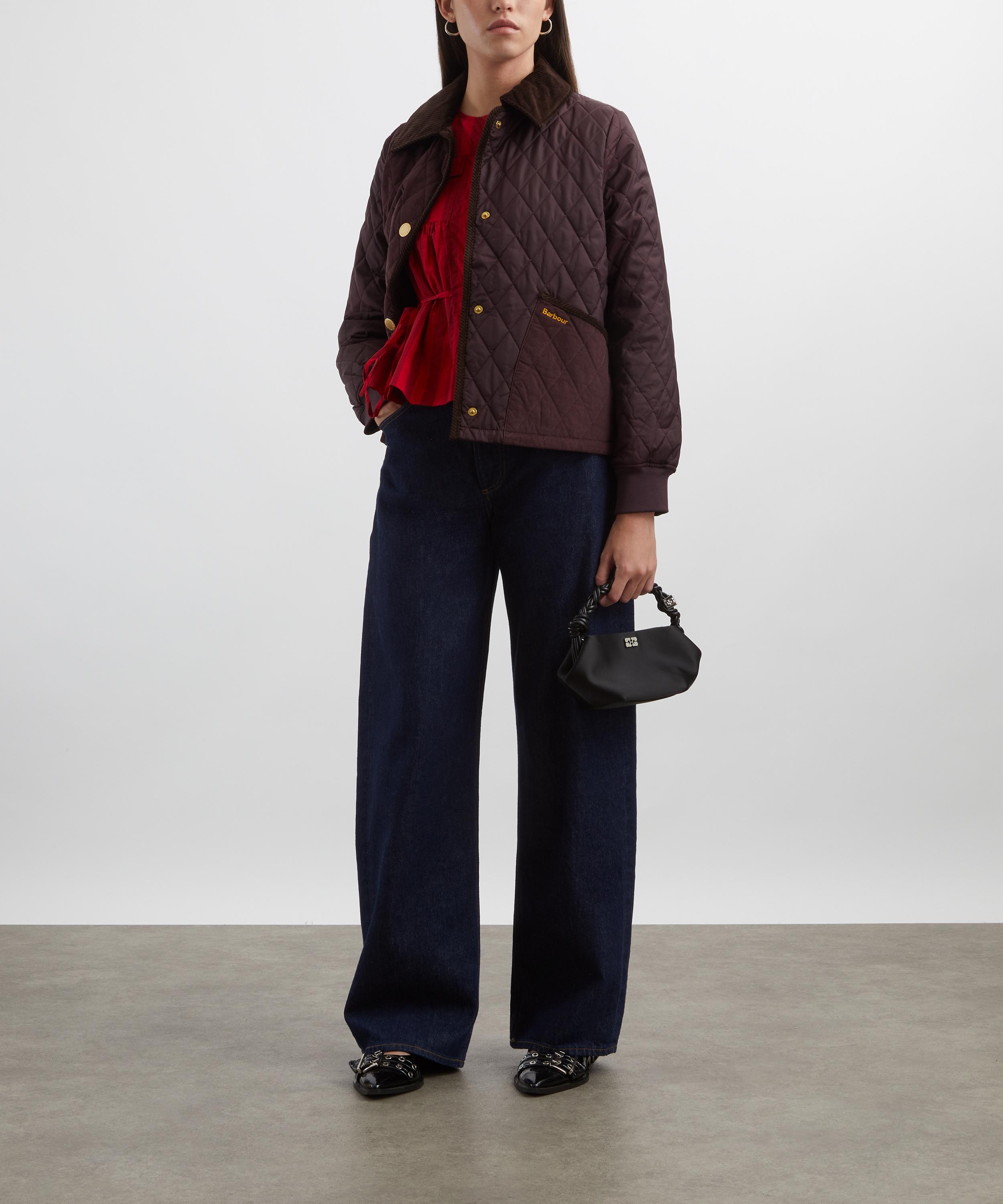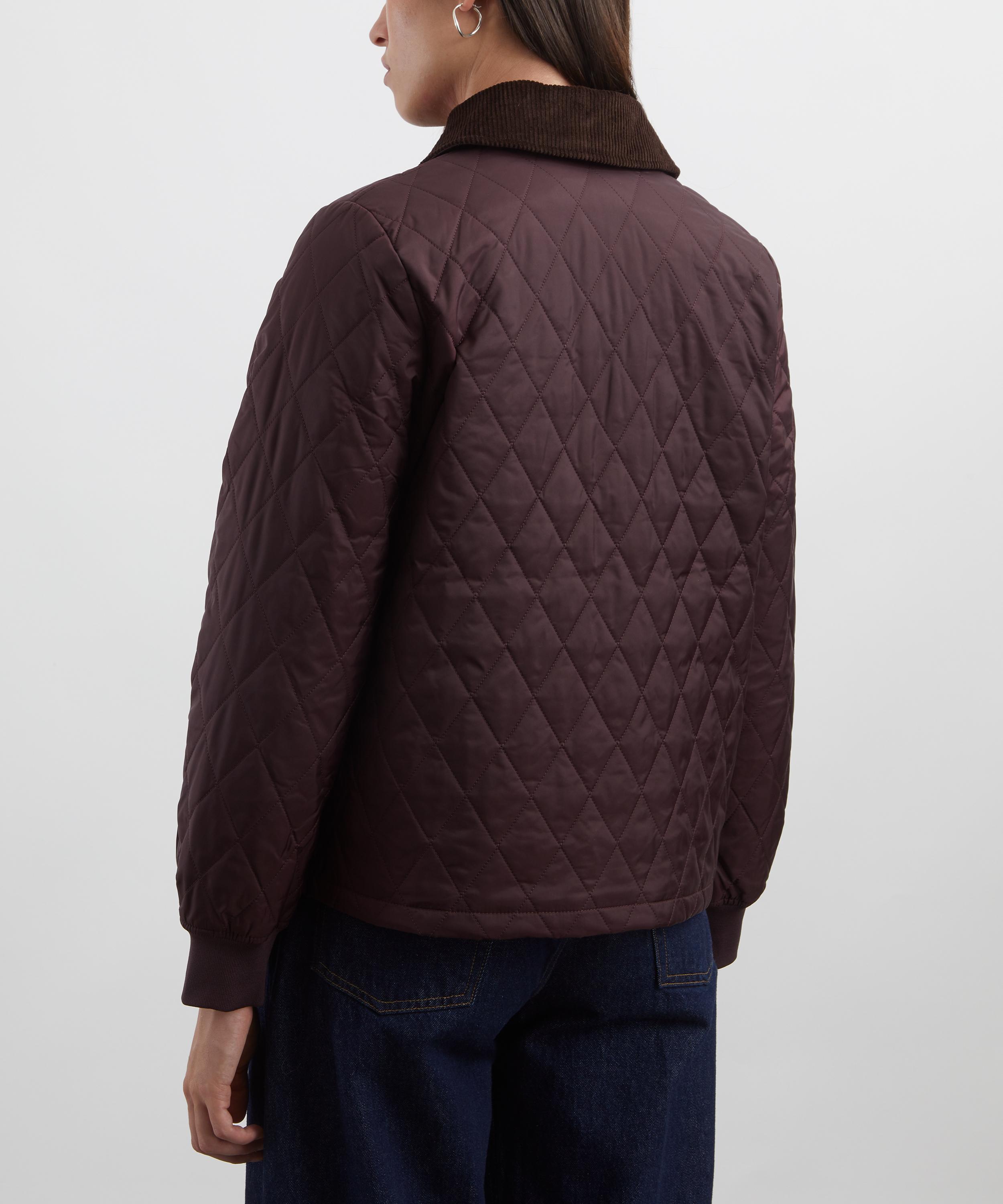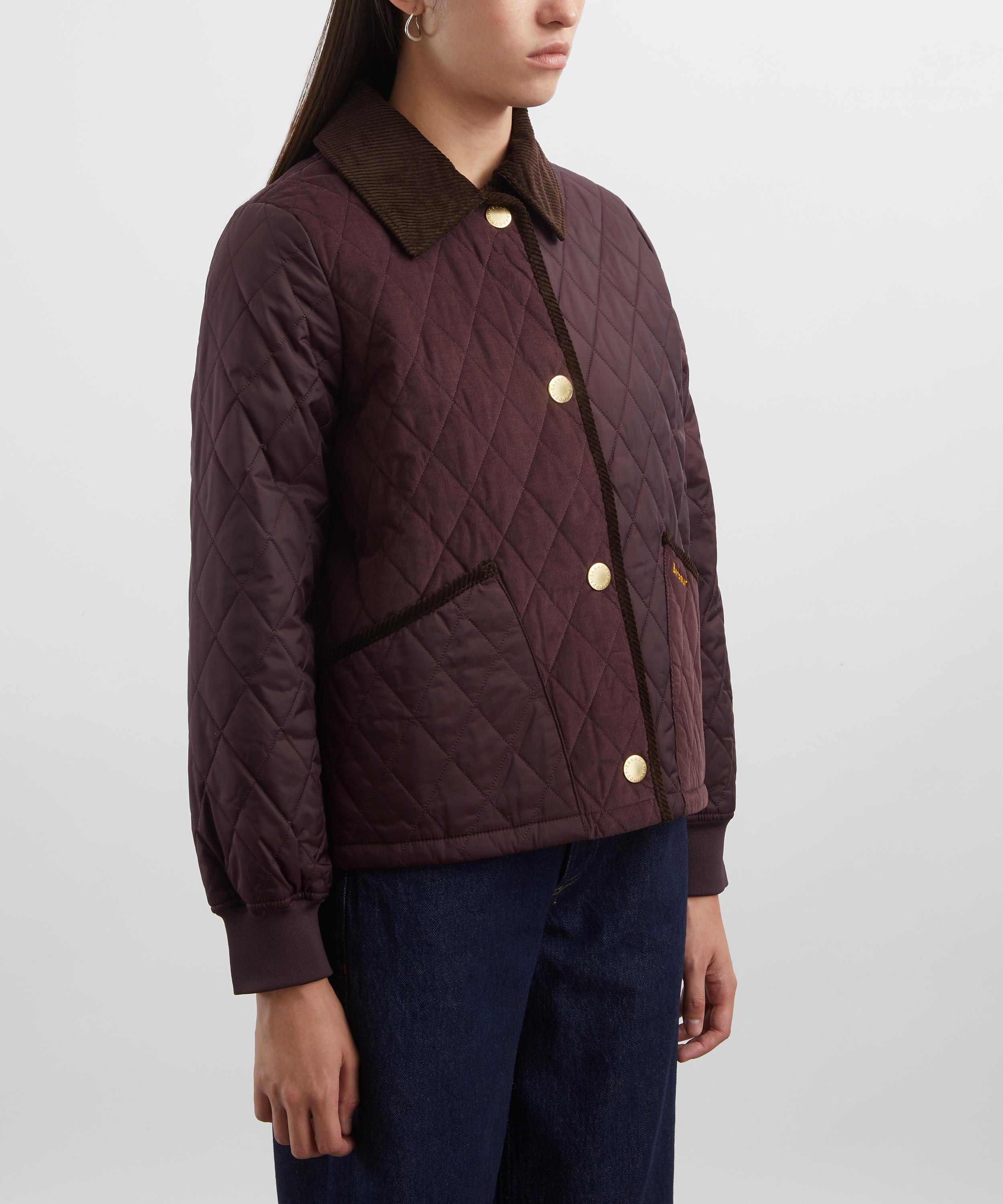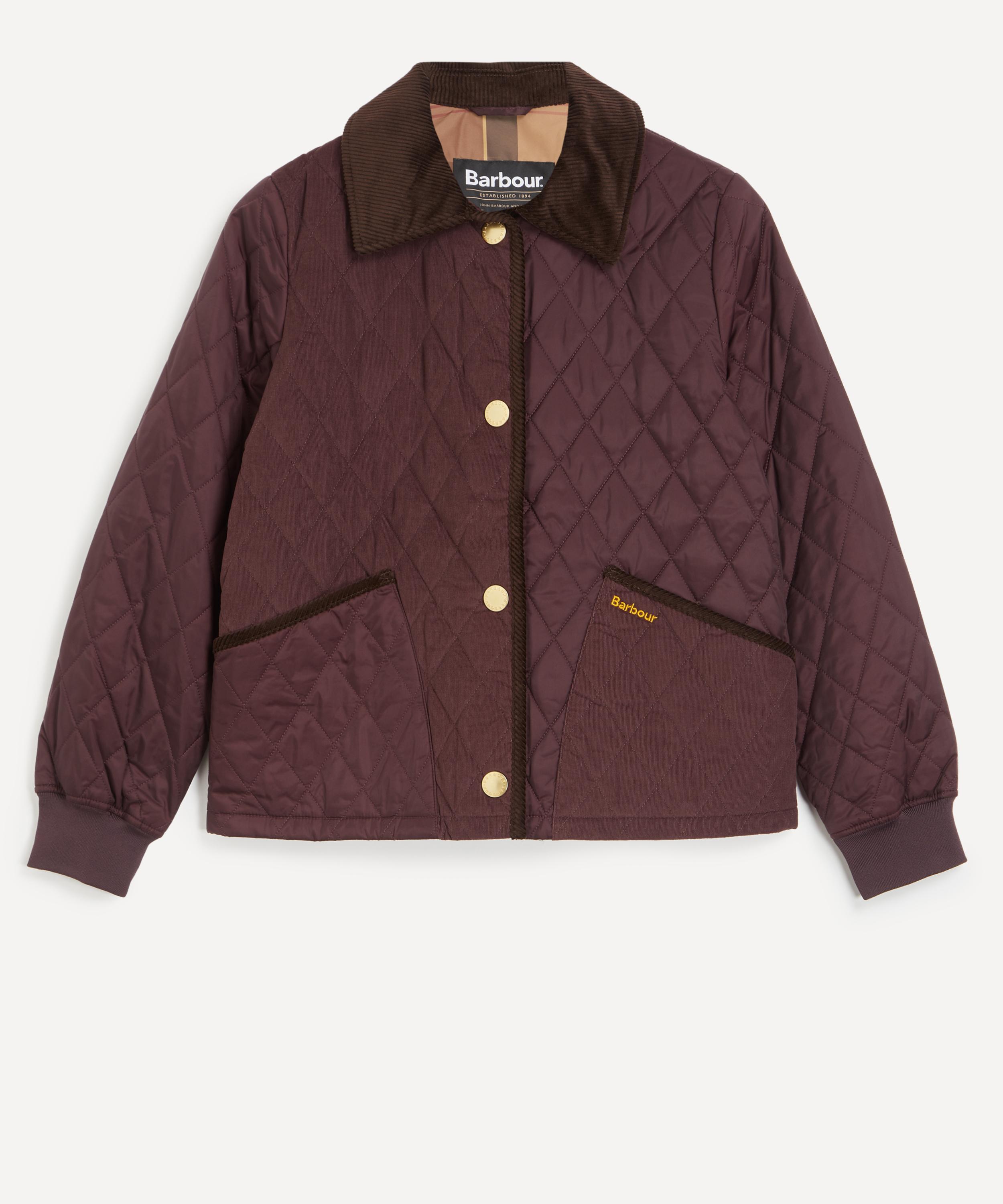 The Barbour Marla Quilted Jacket blends laid-back athleisure with timeless style. Featuring woven cuffs, a large cord collar, Liddesdale-inspired pockets, and oversized stud fastenings, it combines signature Barbour details with a modern silhouette.
