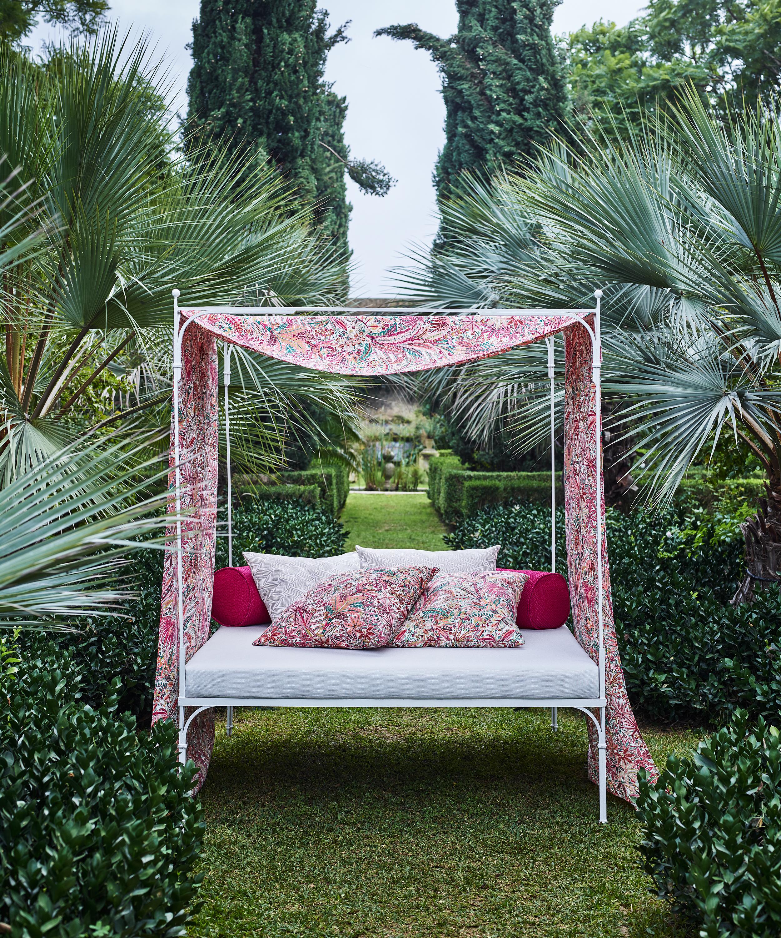 For the outdoor collection, we celebrate The Liberty Garden in all its glory. Harmonised across three distinctive ‘garden rooms’, the collection is criss-crossed by narrative stories of print and colour to reflect Liberty’s eclectic spirit. Drawing inspiration from the beauty of Arts and Crafts gardens, decadent ornamental florals appear juxtaposed against geometric botanical layouts and the classic nostalgia of Liberty ditsy florals – unique and beautiful settings for outdoors, painted in living colour.