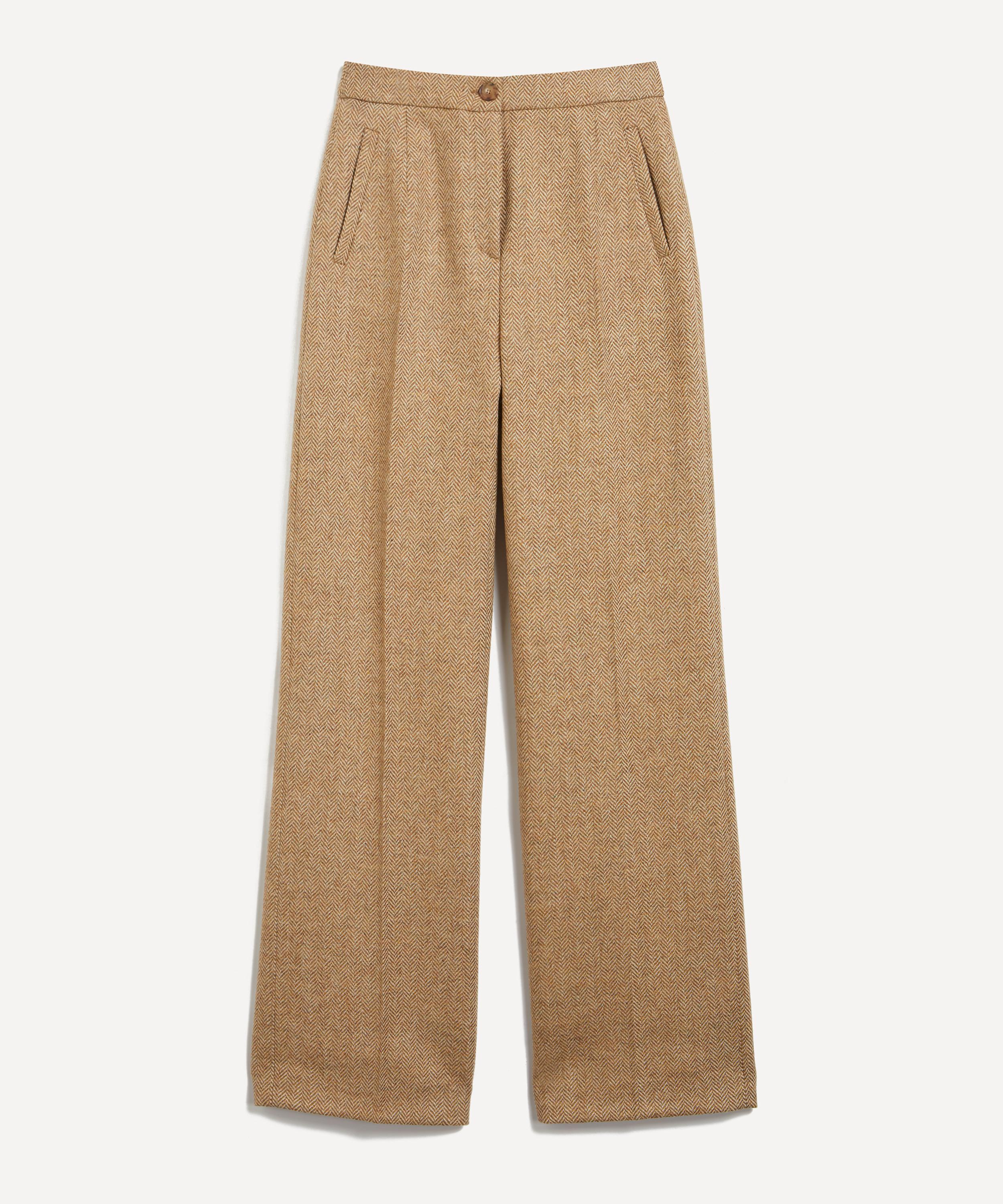 Effortlessly chic in classic camel, these trousers are tailored to fit and flatter the body with its high-waistline, and wide, straight leg silhouette. Crafted from pure virgin wool presenting a timeless herringbone weave throughout, this pair is minimally detailed with welt pockets at the front and back for a practical finish.