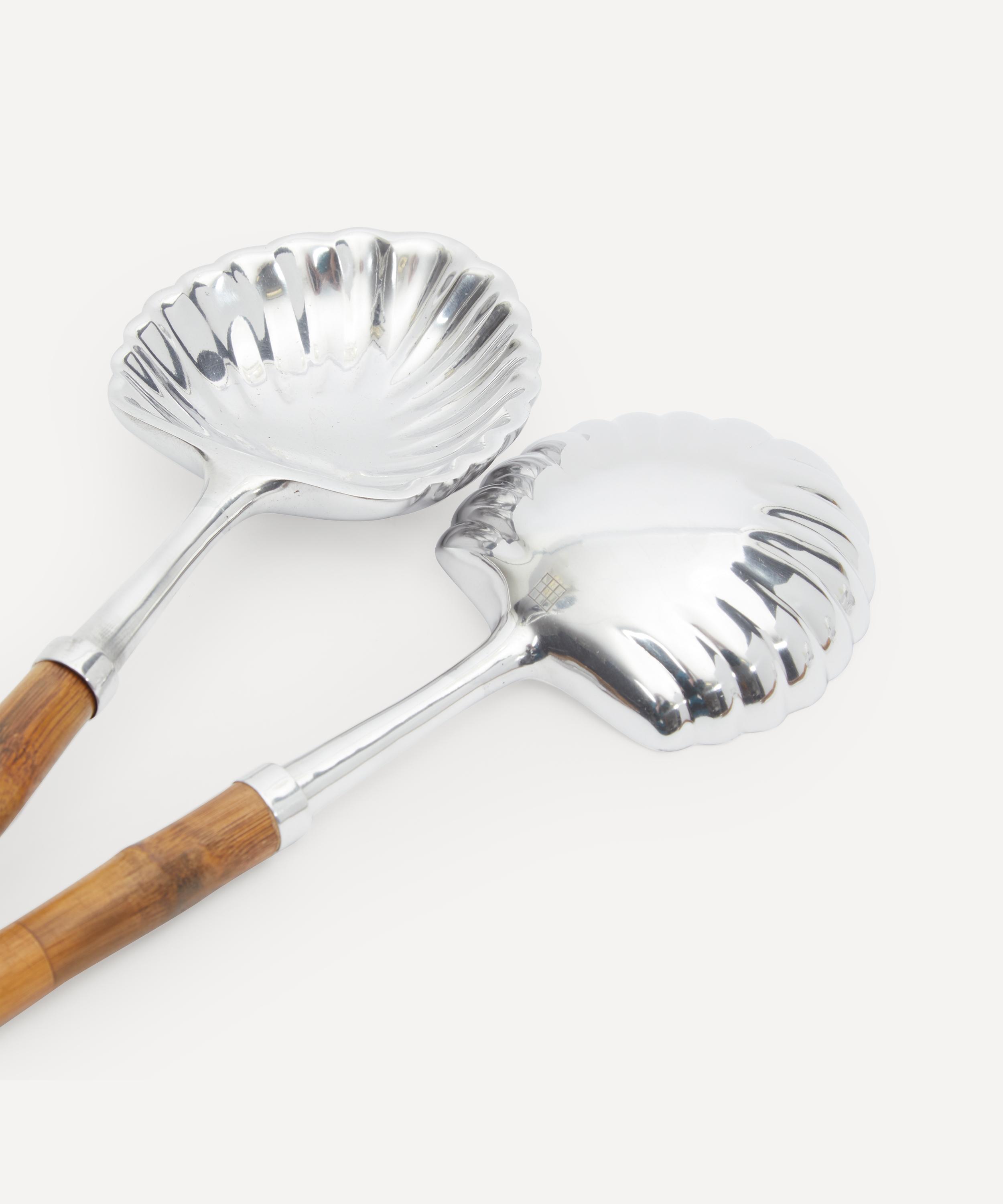 Host dinner parties the Soho House way with these stainless-steel tongs and salad servers, formed with a distinctive scalloped design that's inspired by vintage flatware spotted in an antique shop in Portobello. Complete with carved bamboo handles and etched with the Soho House logo for an elegant finishing touch, this serving set will make a standout addition to any table setting.