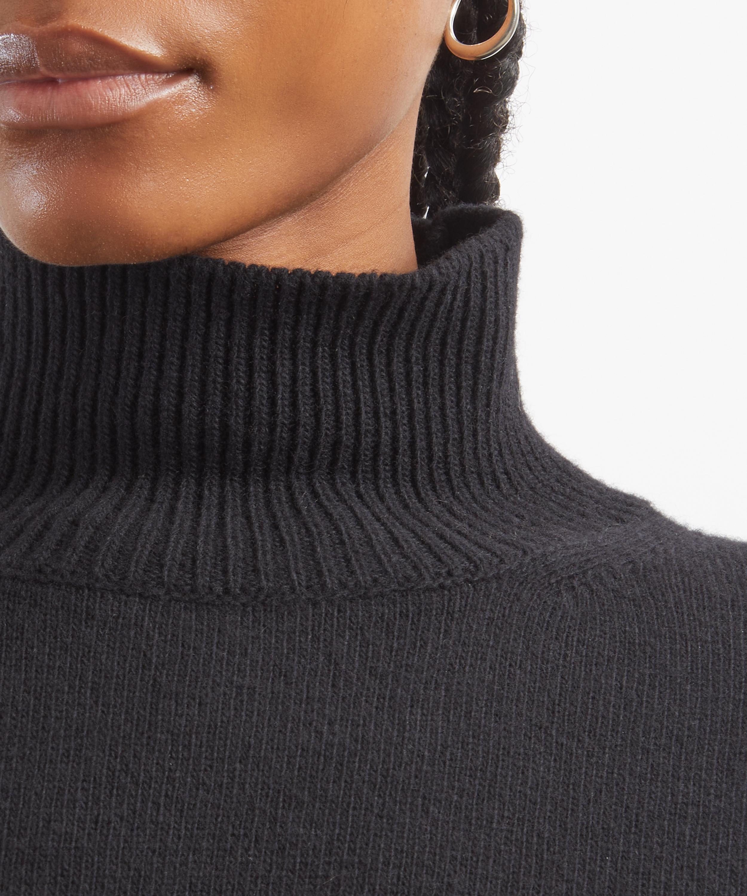 Woven from a premium wool and cashmere blend, the Matteo jumper features a boxy, cropped silhouette with dropped shoulders, long sleeves, and a ribbed high neckline - an effortlessly luxurious staple for the winter season.