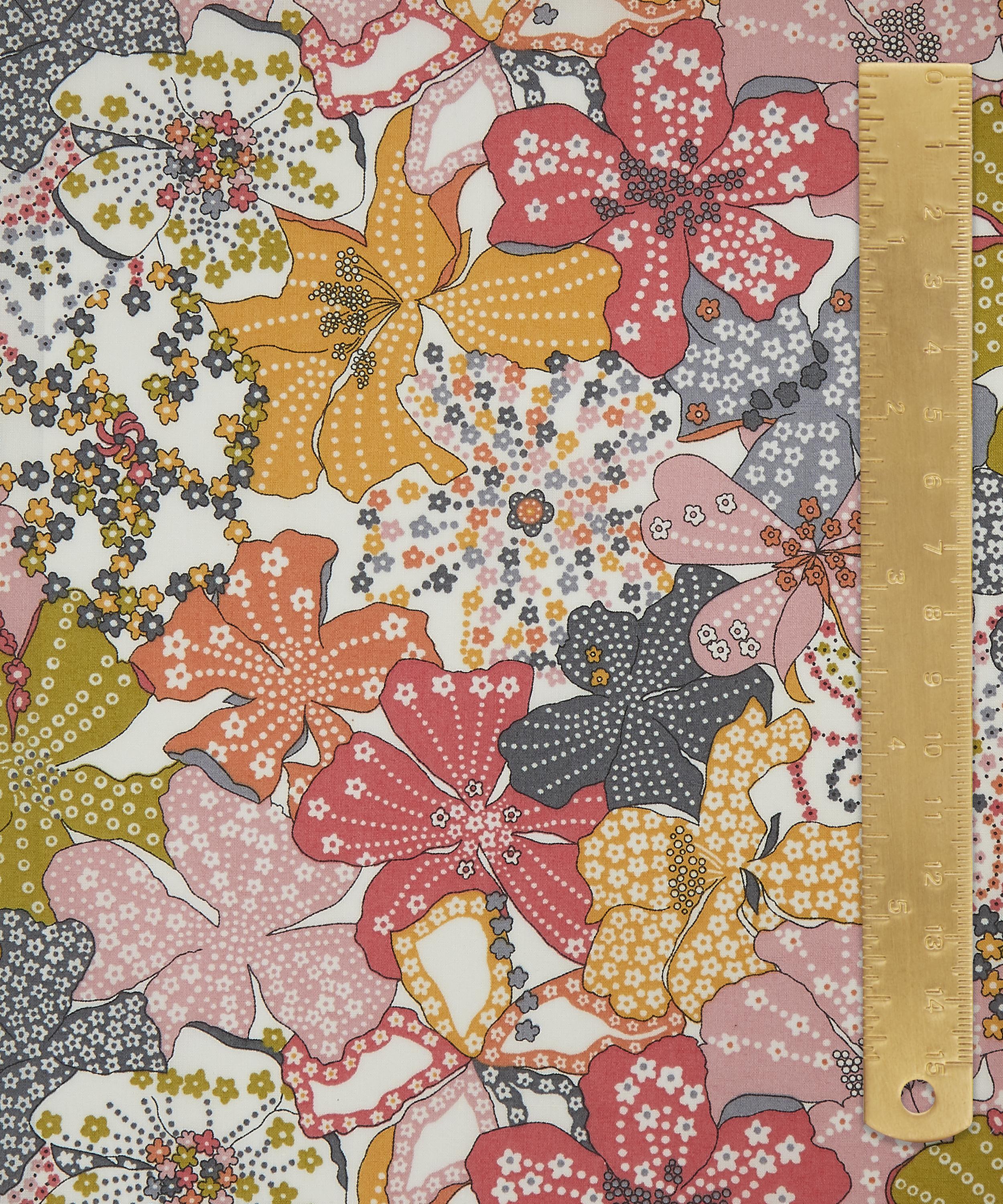 Bright and unabashedly exuberant, Mauvey has a happy-go-lucky appeal. The design is based on a mixture of the flowers of the mallow shrub and sequins, designed by Liberty London’s in-house studio for the Spring/Summer 2008 seasonal collection. It has been rescaled and recoloured for the Classic Tana range.