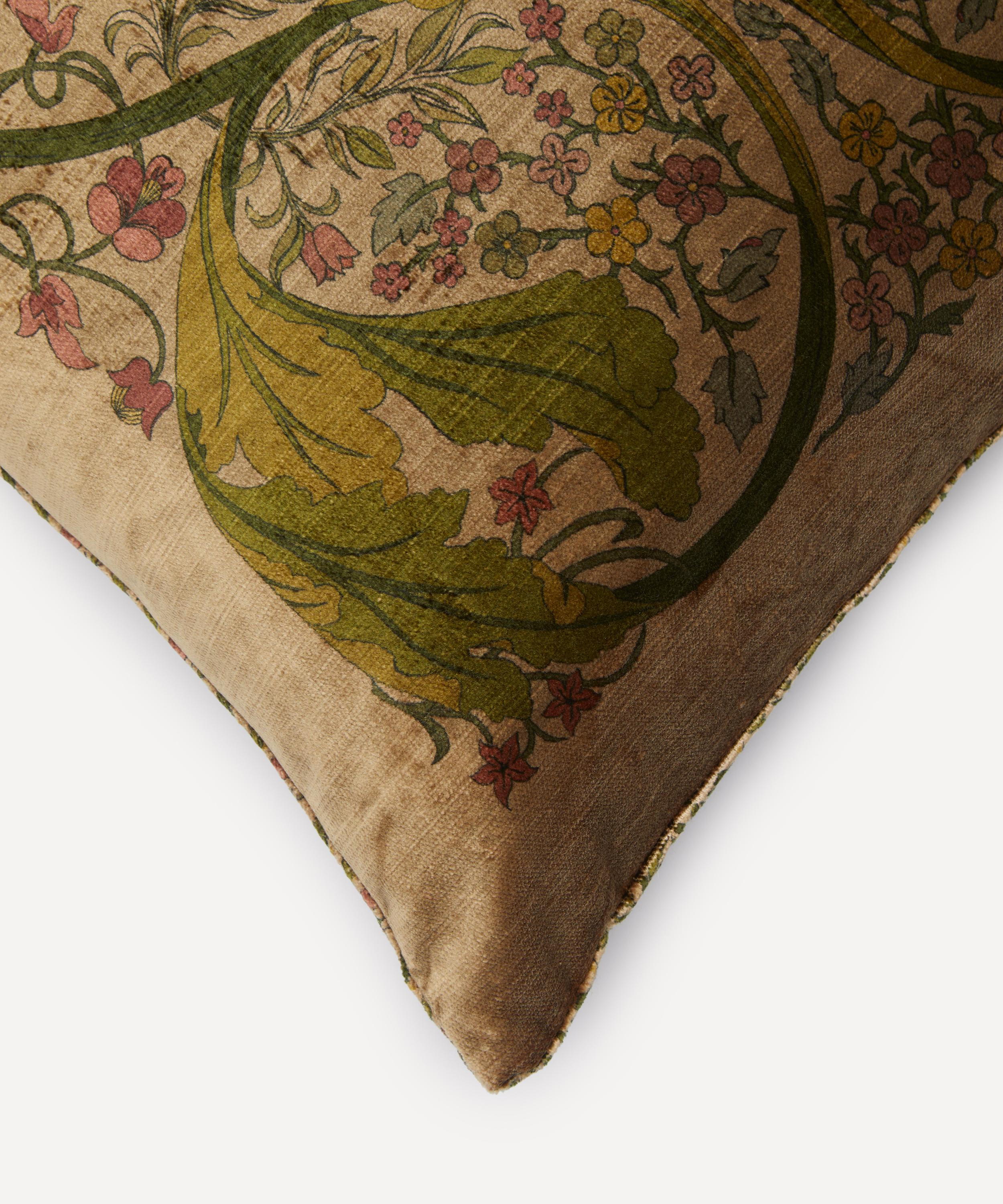 It’s expertly crafted from plush velvet and showcases our May’s Garden print – an artwork inspired by May Morris’s exquisite embroideries and sketches from the William Morris Gallery Archive, and featuring a botanical-themed tableau of blossoming wildflowers, foliage and swirling leaves. Filled with duck feathers for maximum comfort and softness, it brings a note of natural-world joy to your sofa, armchair or daybed.