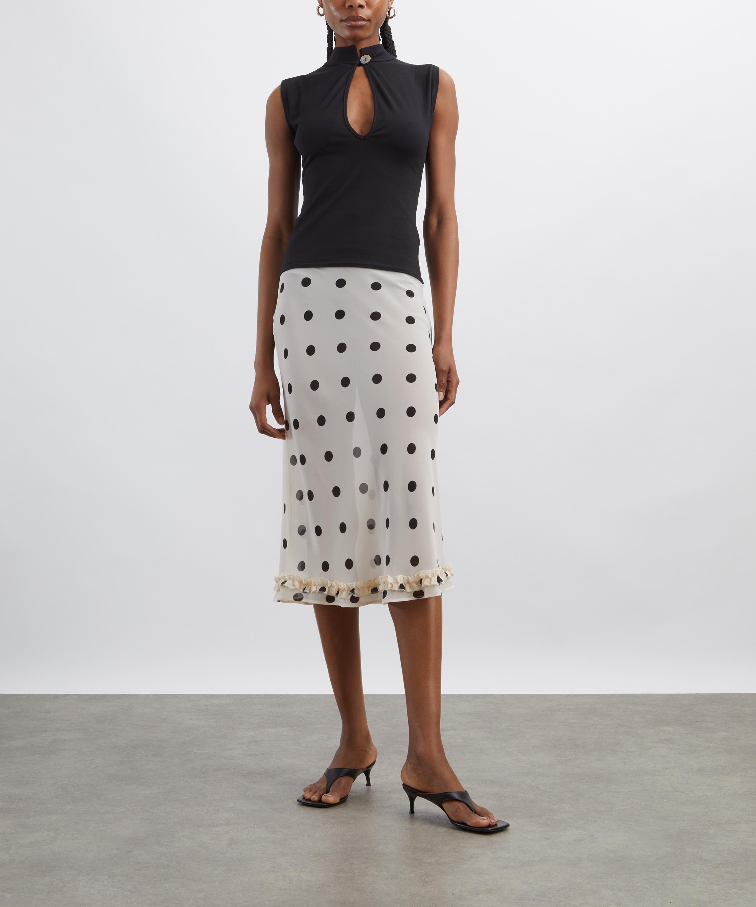 Made in London from airy, silky chiffon, this best-selling Susamusa skirt is bias-cut for an elegant, body-skimming shape. Polka dots and a softly ruffled hem bring a touch of playful whimsy.