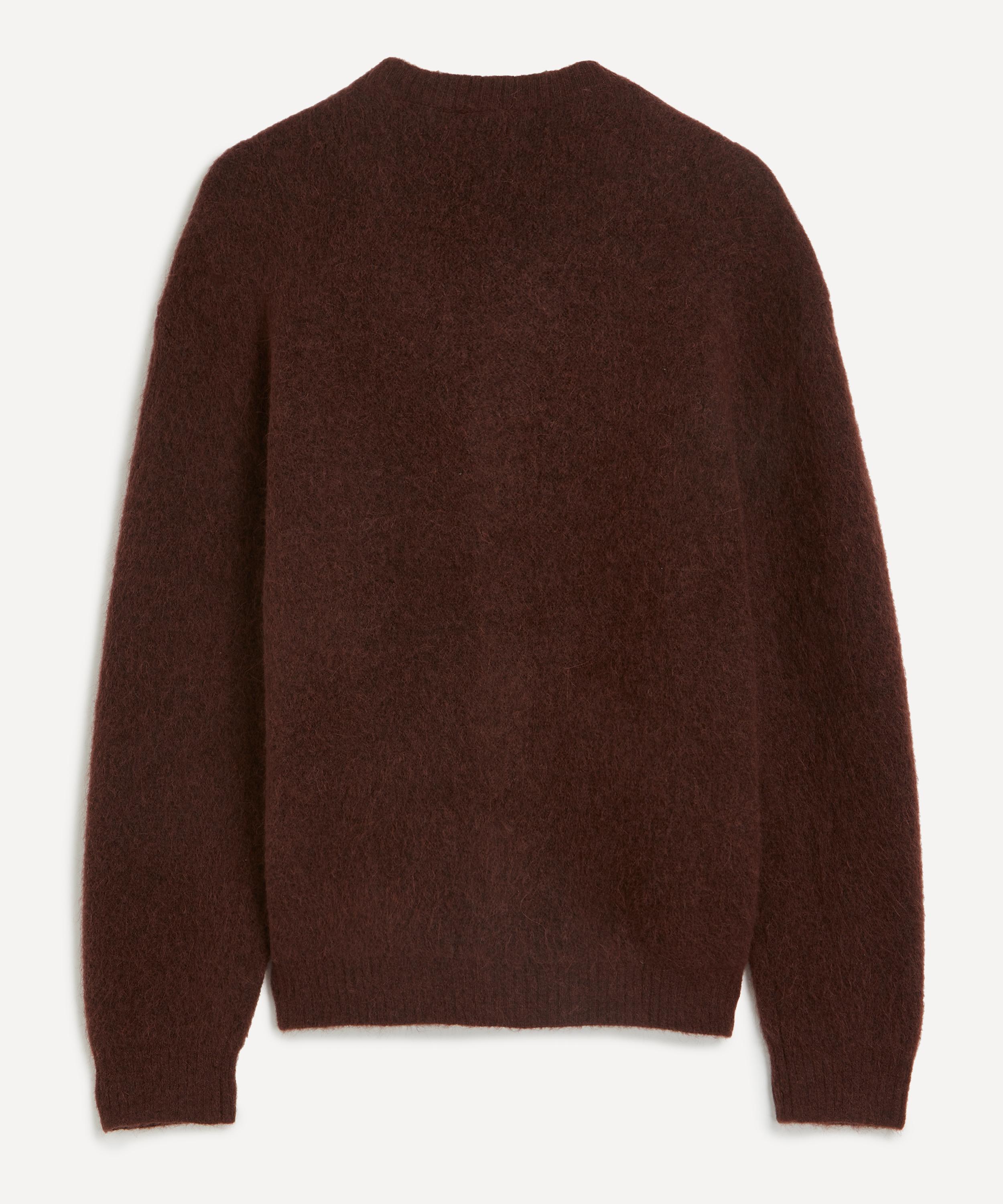 Crafted from a warming blend of wool, alpaca and synthetic fibres, this loose, seven-gauge knit is designed for a loose fit with dropped shoulders, and slouchy long sleeves. A classic V-neck design with two patch pockets, its button closure is secured with gold, logo-engraved buttons.