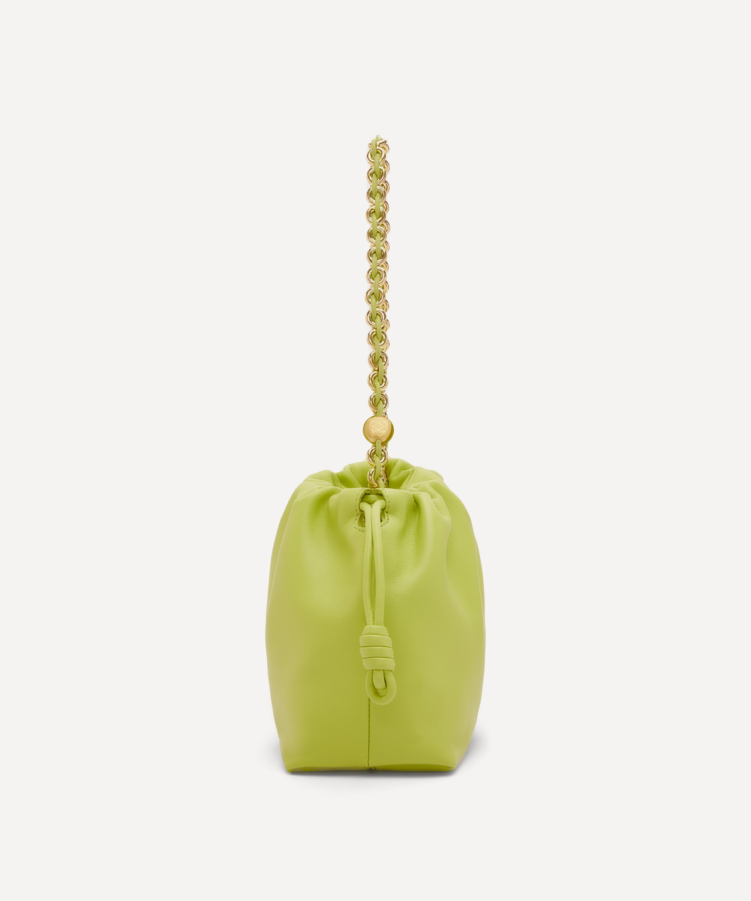 Cut from soft mellow lambskin leather with a contrasting suede lining, this clutch bag showcases a flexible pouch silhouette characterised by it's a ruched design that cinches closed at the top with the style's signature knotted drawstring pulls. Finished with a concealed magnetic closure and an adjustable, detachable shoulder strap.