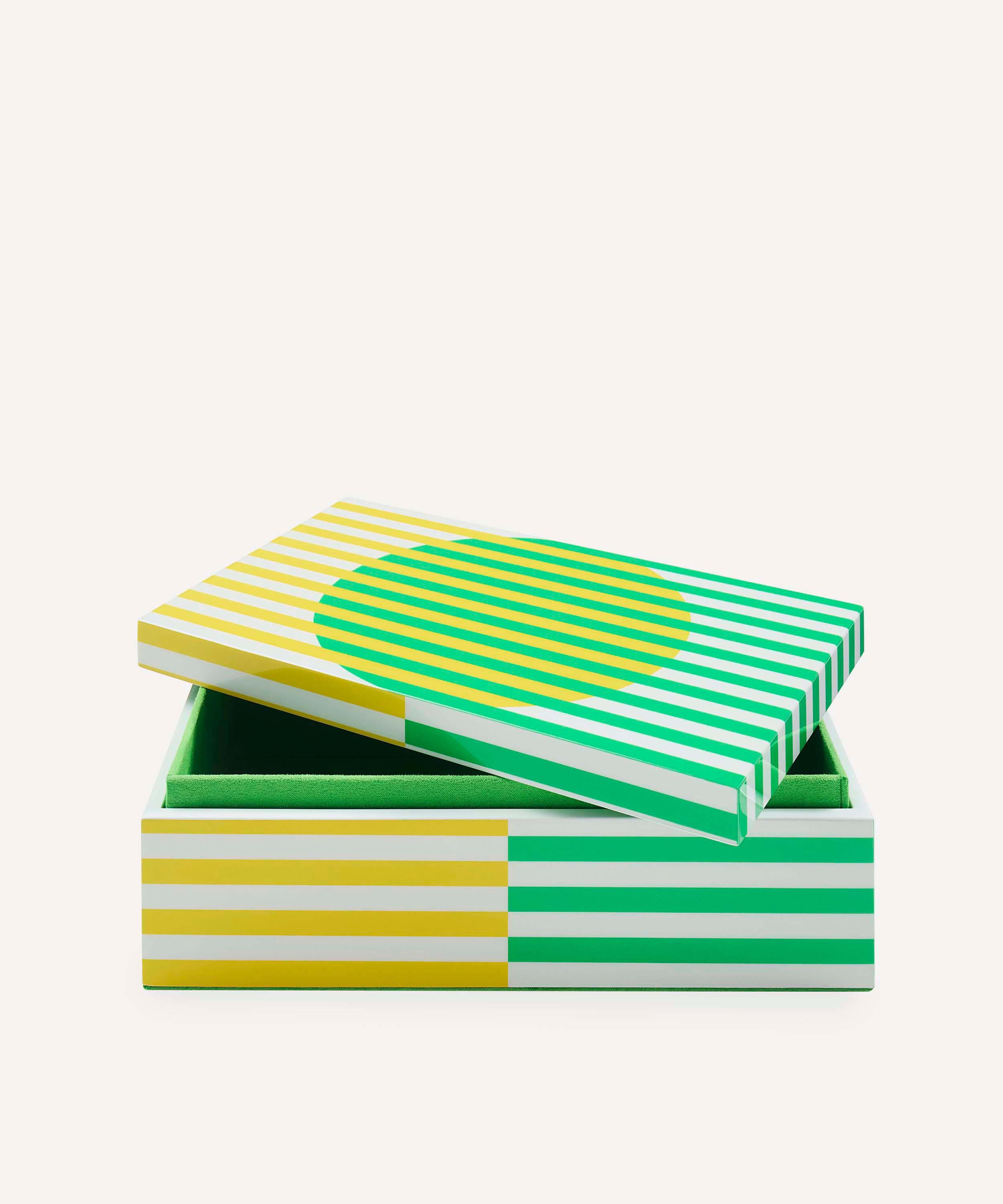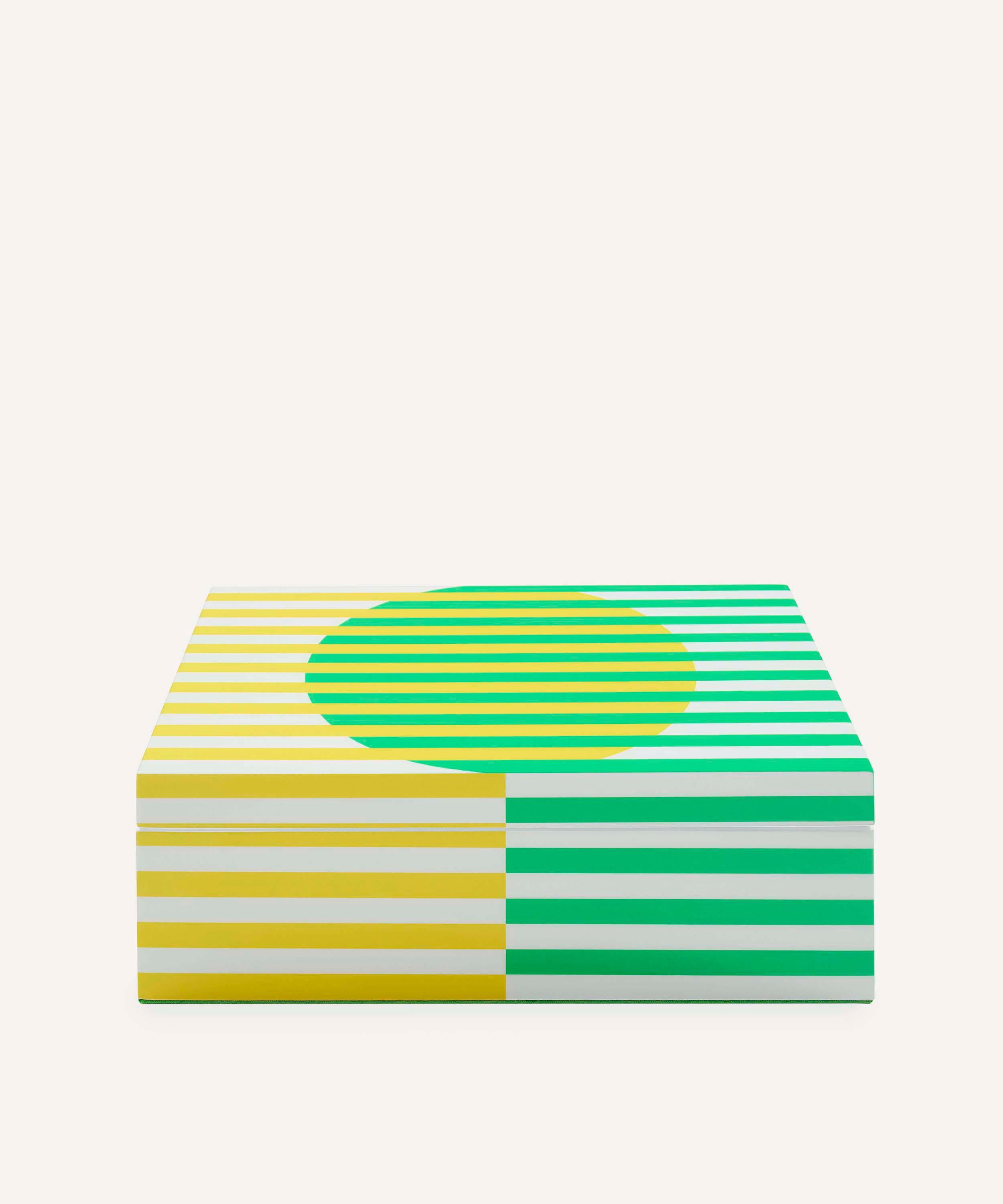 With a sleek hand-finished high gloss this piece presents the brand’s mod graphics in an array of sunny hues - featuring a sharp silhouette that is perfect for stashing, stacking or making a stand-alone statement. The contemporary angular design and print reimagines iconic architectural motifs for a unique desk accessory that will elevate modern interiors.