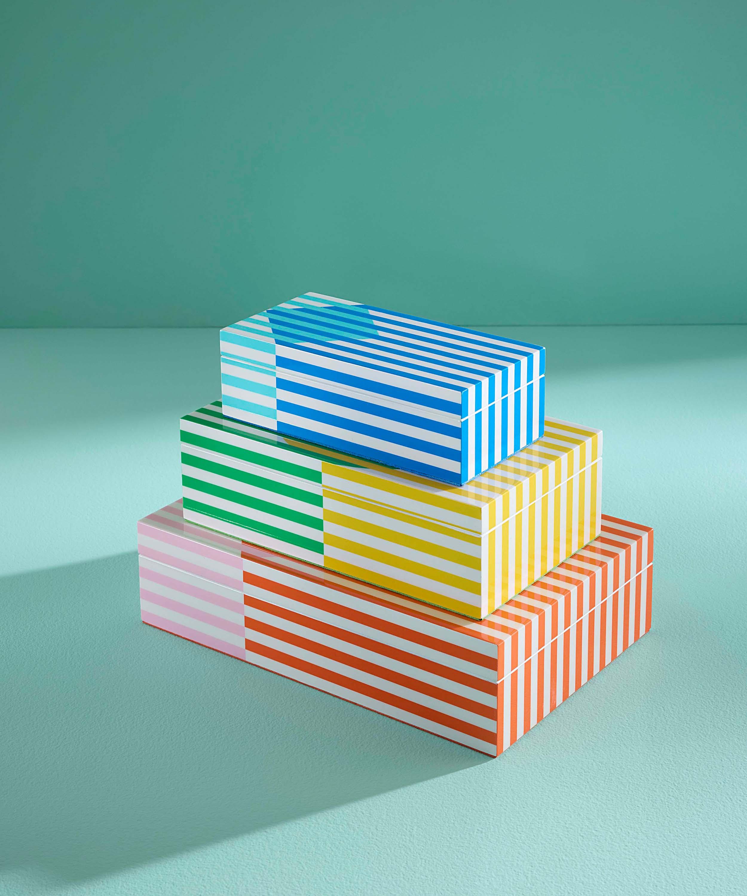 The medium Copenhagen lacquer box from New York based design brand Jonathan Adler will add an eclectic twist to any sightly subdued interiors.