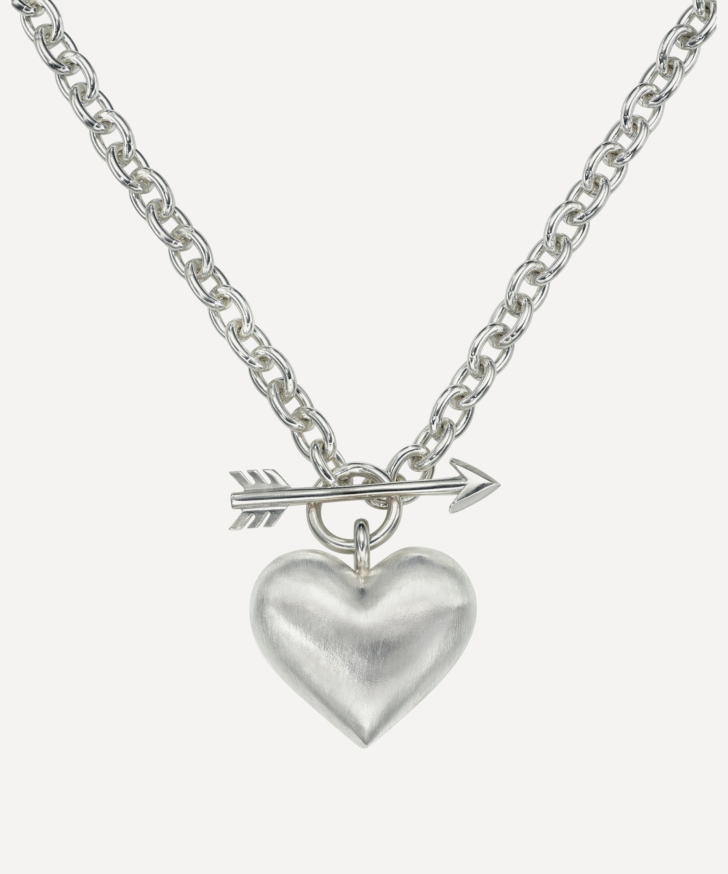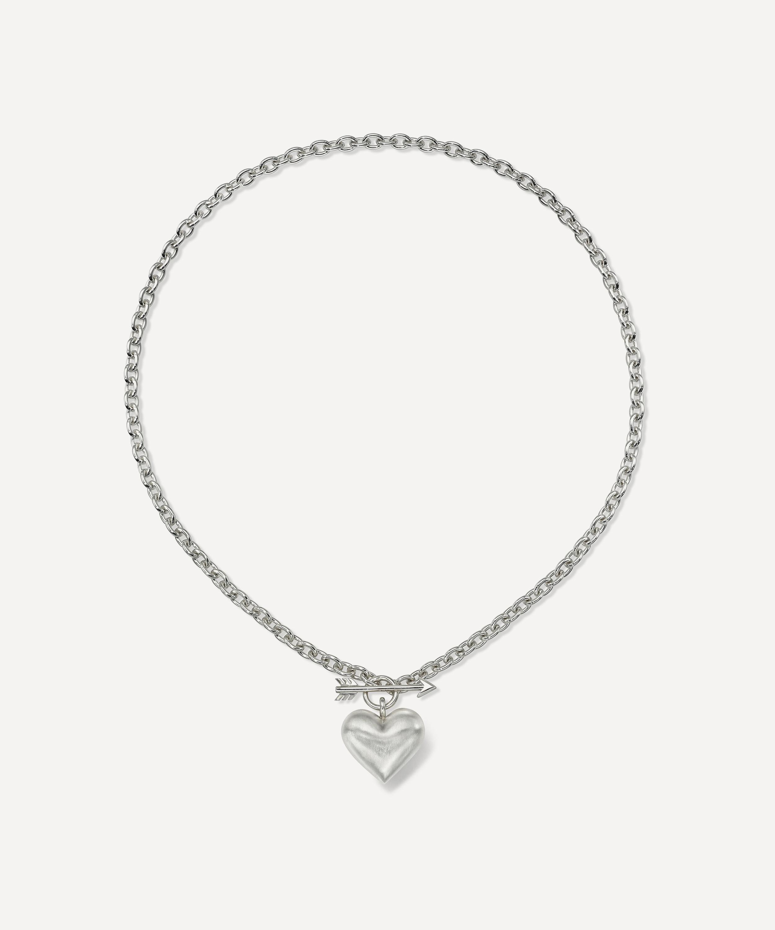 Suspended from a sterling silver chain, this necklace features a plump heart pendant, sleekly secured with a front arrow toggle clasp. Handmade in Rachel Quinn's LA studio, try styling it with a pair of the designer's whimsically creative drop earrings for a dreamy curation of wearable works of art.