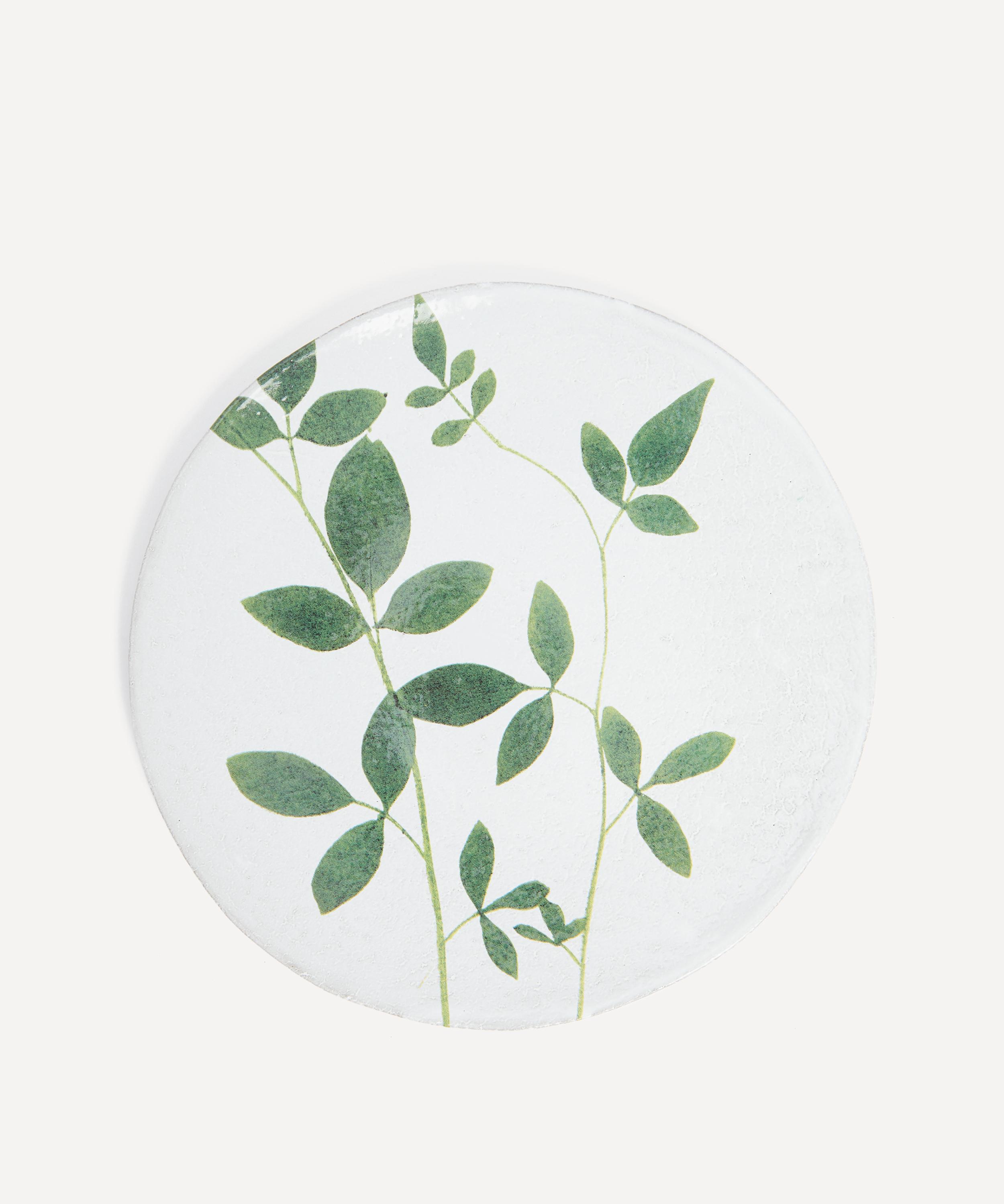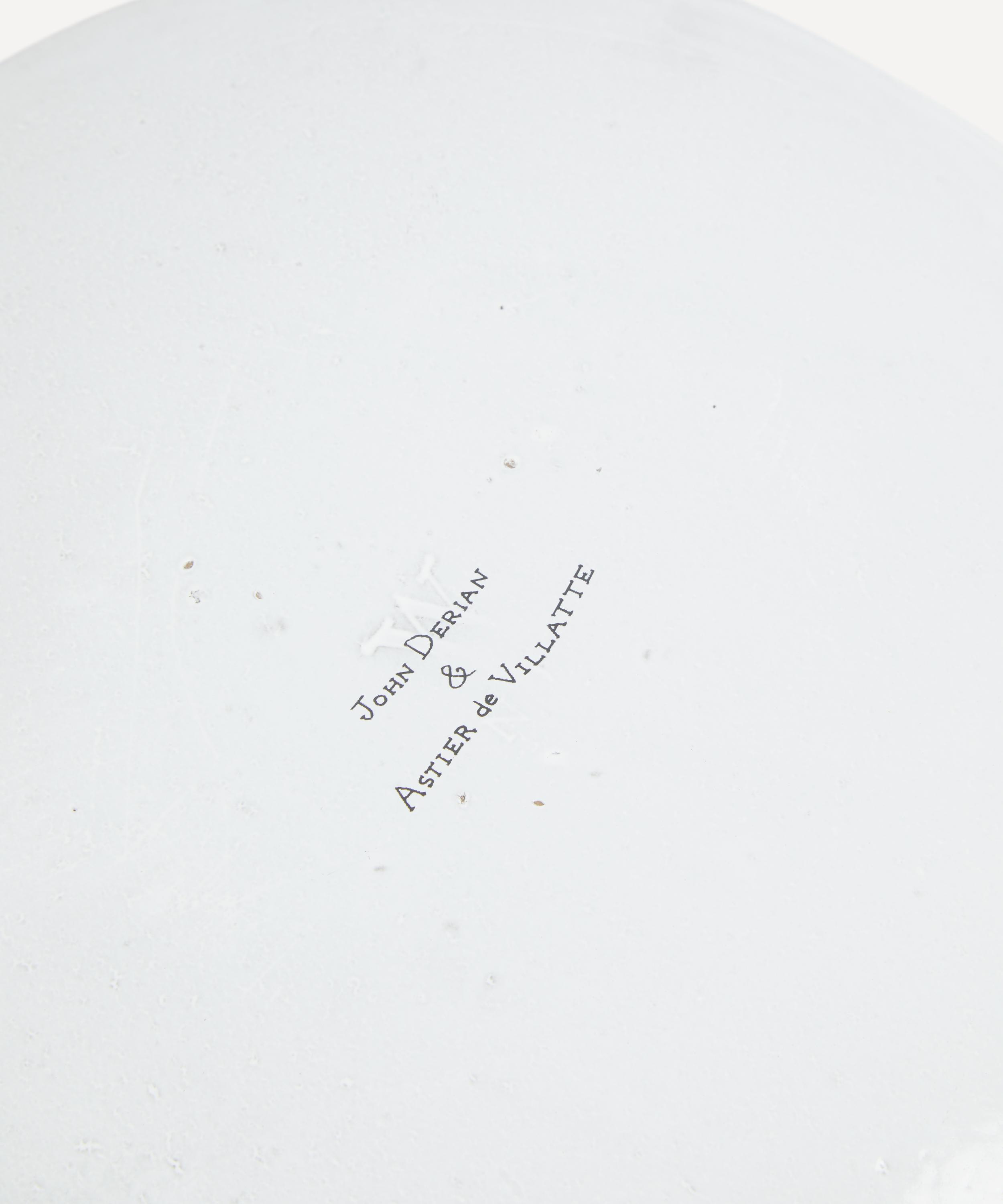 Votary of pre-industrial fabrication, Astier de Villatte is celebrated for being the one and only studio in Paris to hold and harbour the traditions of artisanal ceramic production. Restoring the ancestral systems of moulding and stamping, this plate is made using handcrafting techniques from the Middle Ages which involve moulding a handmade sheet of clay, double firing the ‘biscuit’ piece and glazing the product in white enamel – a lengthy process that involves a drying time of up to one month. Characterised by an elegant botanical design, this plate is engraved with the brand’s signature crest - depicting an interlacing A & V - alongside the initials of one of the 40 master artisans who created it. Each handmade piece tells a beautiful story, it romances and imparts a sense of nostalgia into its owner. Arrange alongside glazed bowls and plates in the collection to breathe an air of authenticity into your table setting.