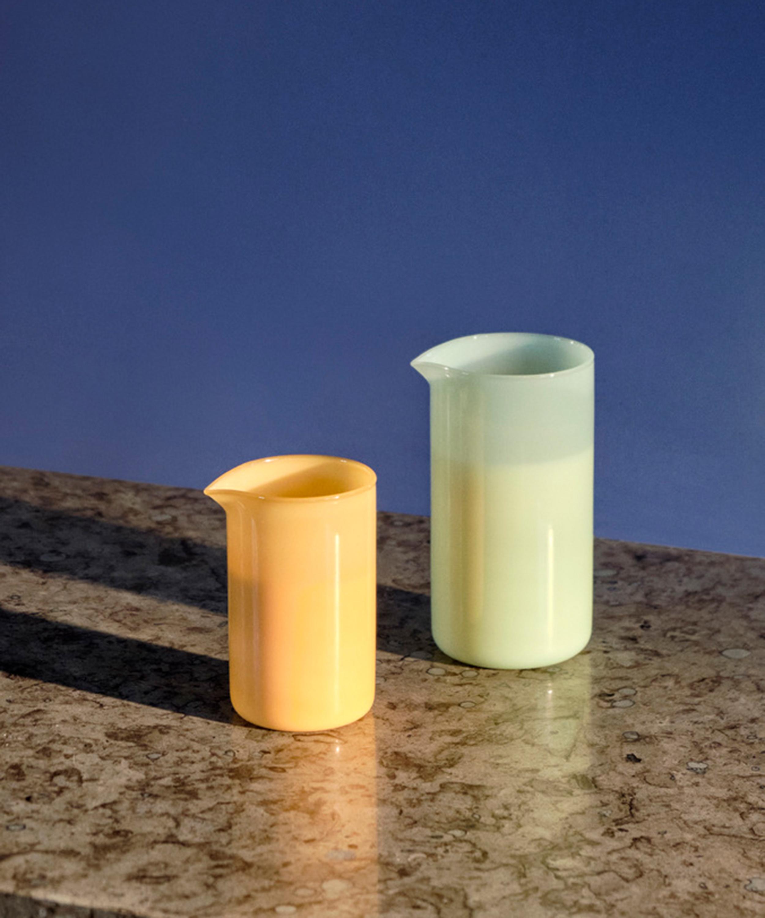 The flowing design of Hay’s glass jug is a refined addition to your dining table arrangement.