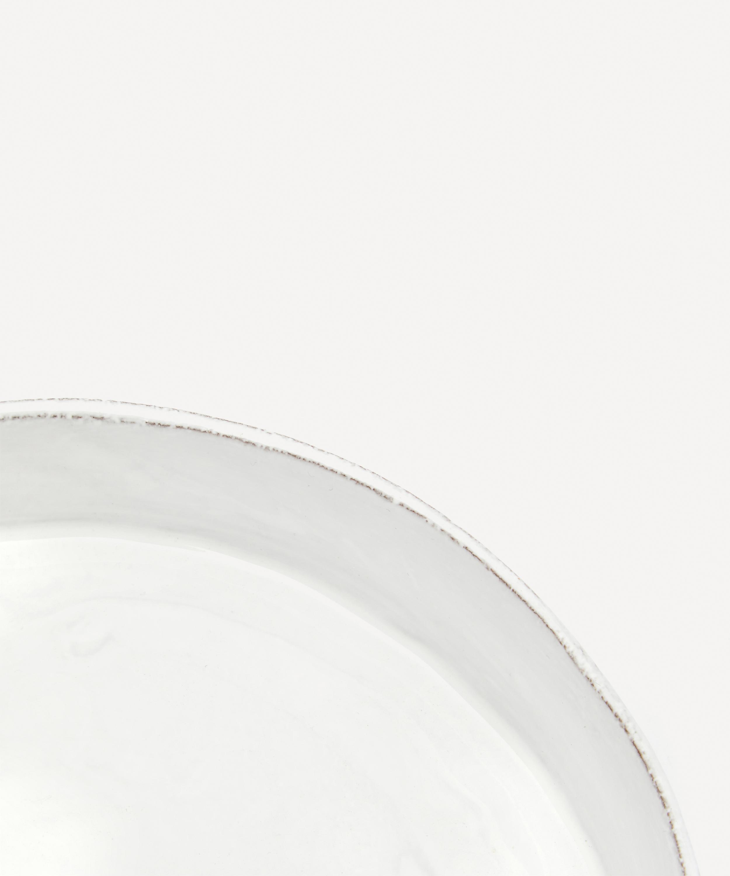 Votary of pre-industrial fabrication, Astier de Villatte is celebrated for being the one and only studio in Paris to hold and harbour the traditions of artisanal ceramic production. Restoring the ancestral systems of moulding and stamping, the Simple platter is made using handcrafting techniques from the Middle Ages which involve moulding a handmade sheet of clay, double firing the ‘biscuit’ piece and glazing the product in white enamel – a lengthy process that involves a drying time of up to one month. Characterised by exposed clay and subtle indentations, the platter is engraved with the brand’s signature crest - depicting an interlacing A & V - alongside the initials of one of the 40 master artisans who created it. Each handmade piece tells a beautiful story, it romances and imparts a sense of nostalgia into its owner. Arrange with other glazed platters in the collection to breathe an air of authenticity into your dining collection.