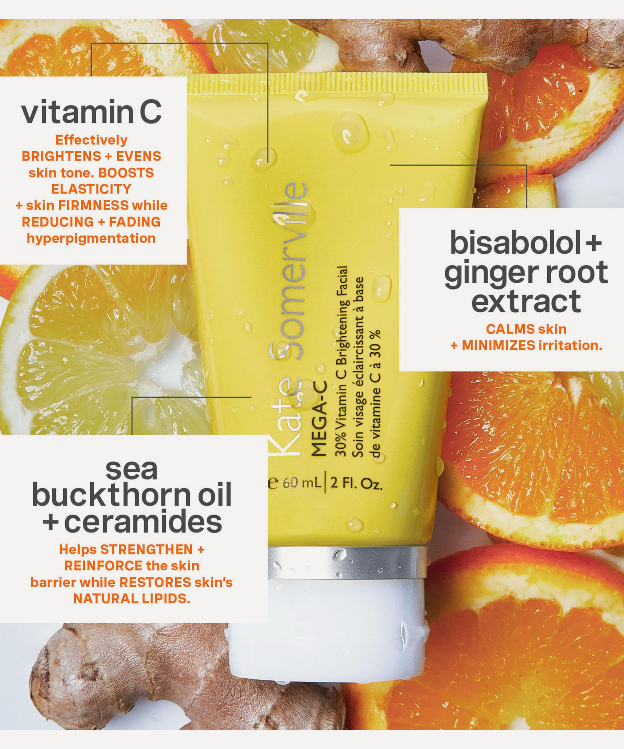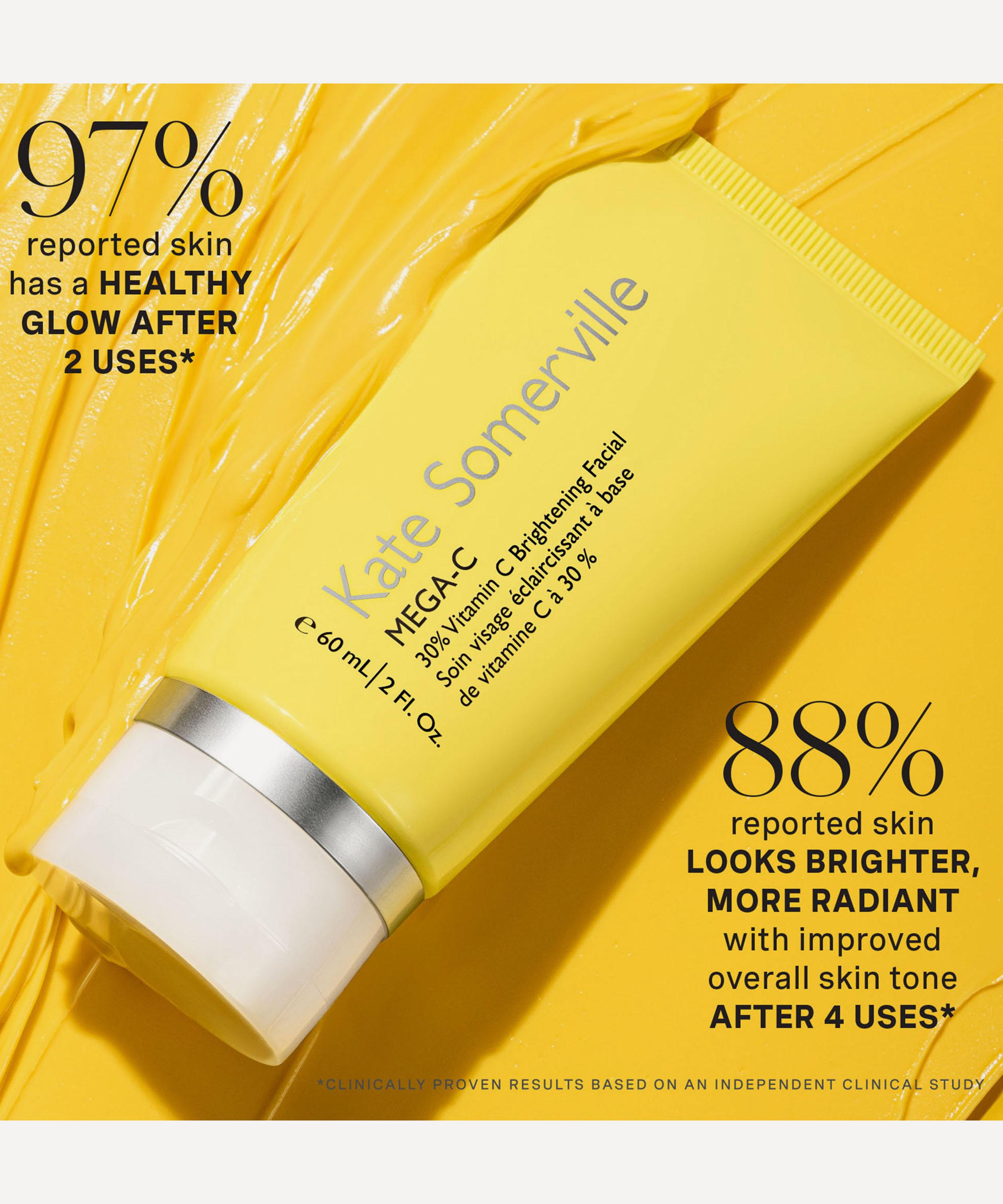 Envelop in the powerful, transformative formula of Kate Somerville’s Mega-C 30% Vitamin C Brightening Facial, a radiance-boosting face mask delivering clinic quality results at home. Infused with a multitude of clinic-grade ingredients, including encapsulated pure vitamin C and an innovative age repair complex - leaving skin beautifully lifted and firmed, with a brighter and more even tone.