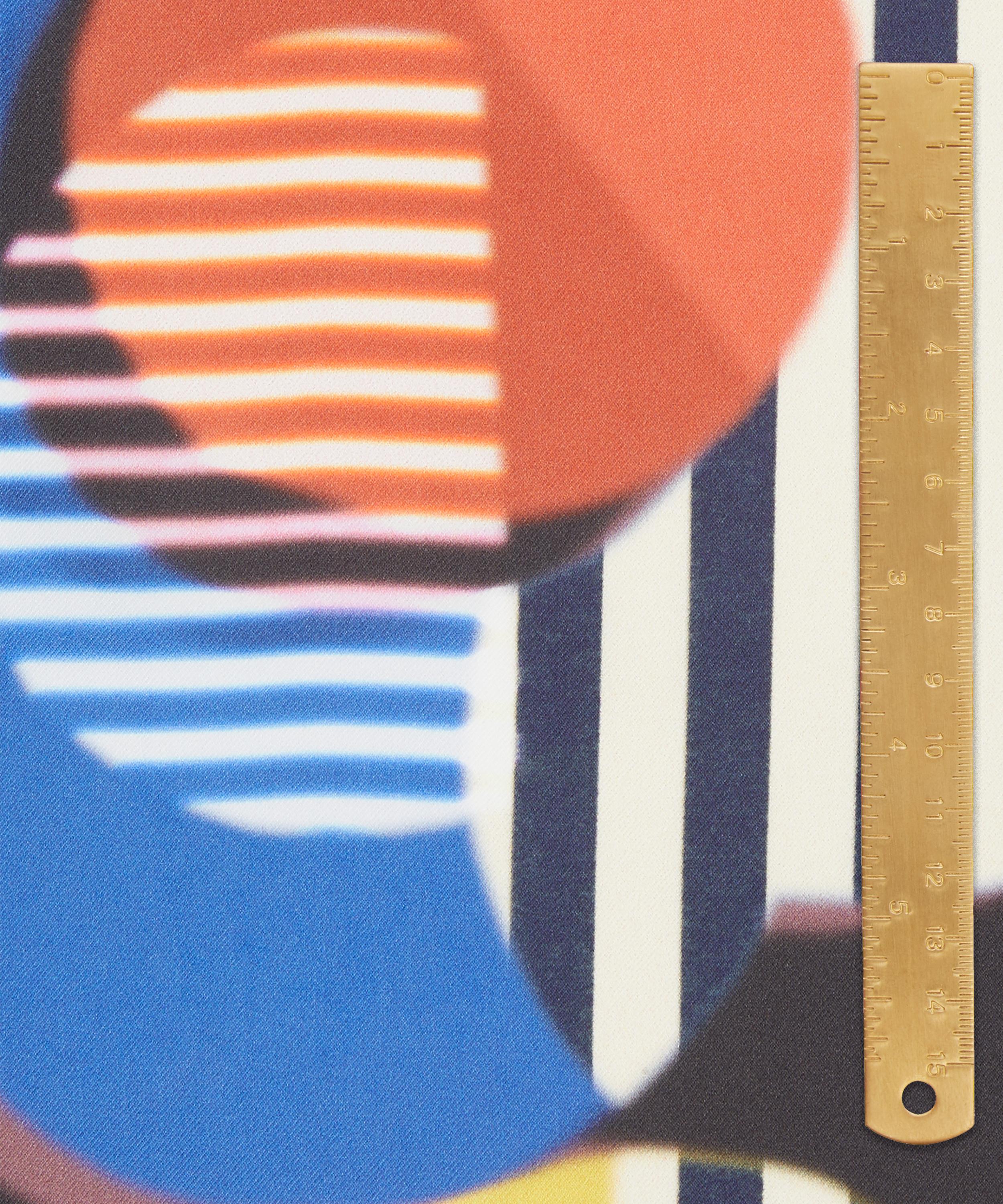 In 1983, Liberty showcased its avant-garde spirit by hosting an exhibition of the radical design group, Memphis Milano. Inspired by the group’s hallmarks of playful, sculptural forms and optical, clashing patterns, Memphis stands out as a visually arresting design brimming with dazzling vitality. Spherical daisies cast soft overlapping shadows, while graphic cutouts dance amidst contrasting stripes, captivating the eye with a riot of illusory geometries. This print is part of the anniversary collection’s final chapter, Collectibles. Offering a design for each decade, this timeline of hero prints encapsulates 150 years - exploring the design house’s varied and influential handwriting while honouring key moments of creativity and discovery.
