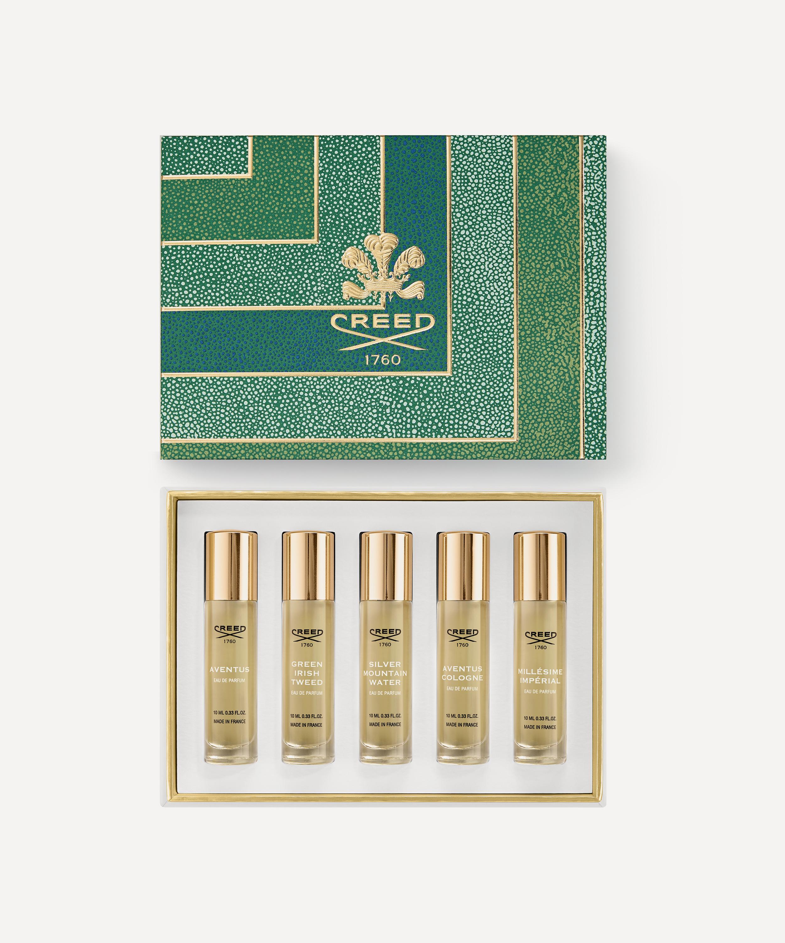 • Includes: Aventus Eau de Parfum 10ml, Silver Mountain Water Eau de Parfum 10ml, Millésime Impérial Eau de Parfum 10ml, Green Irish Tweed Eau de Parfum 10ml and Aventus Cologne Eau de Parfum 10ml