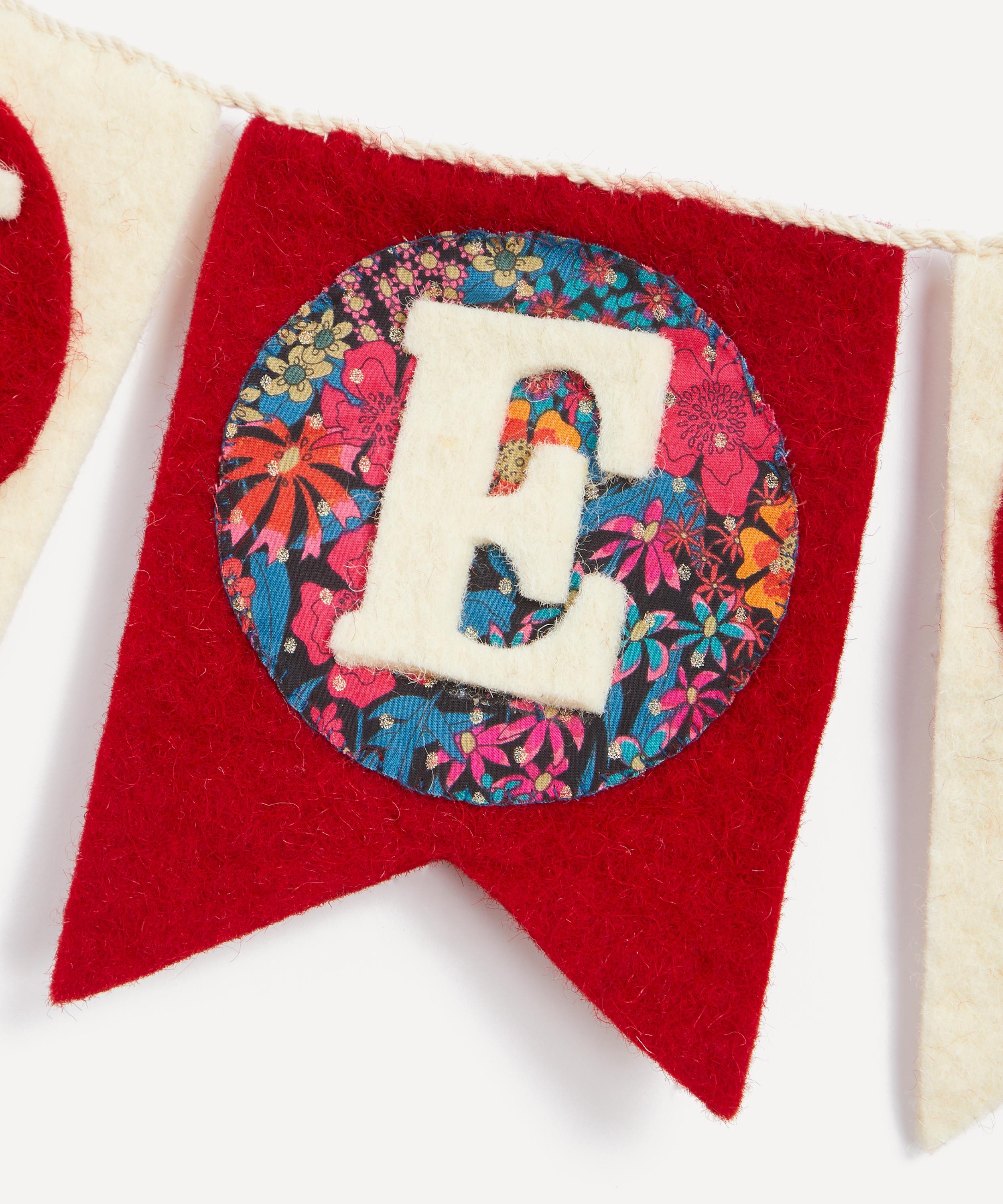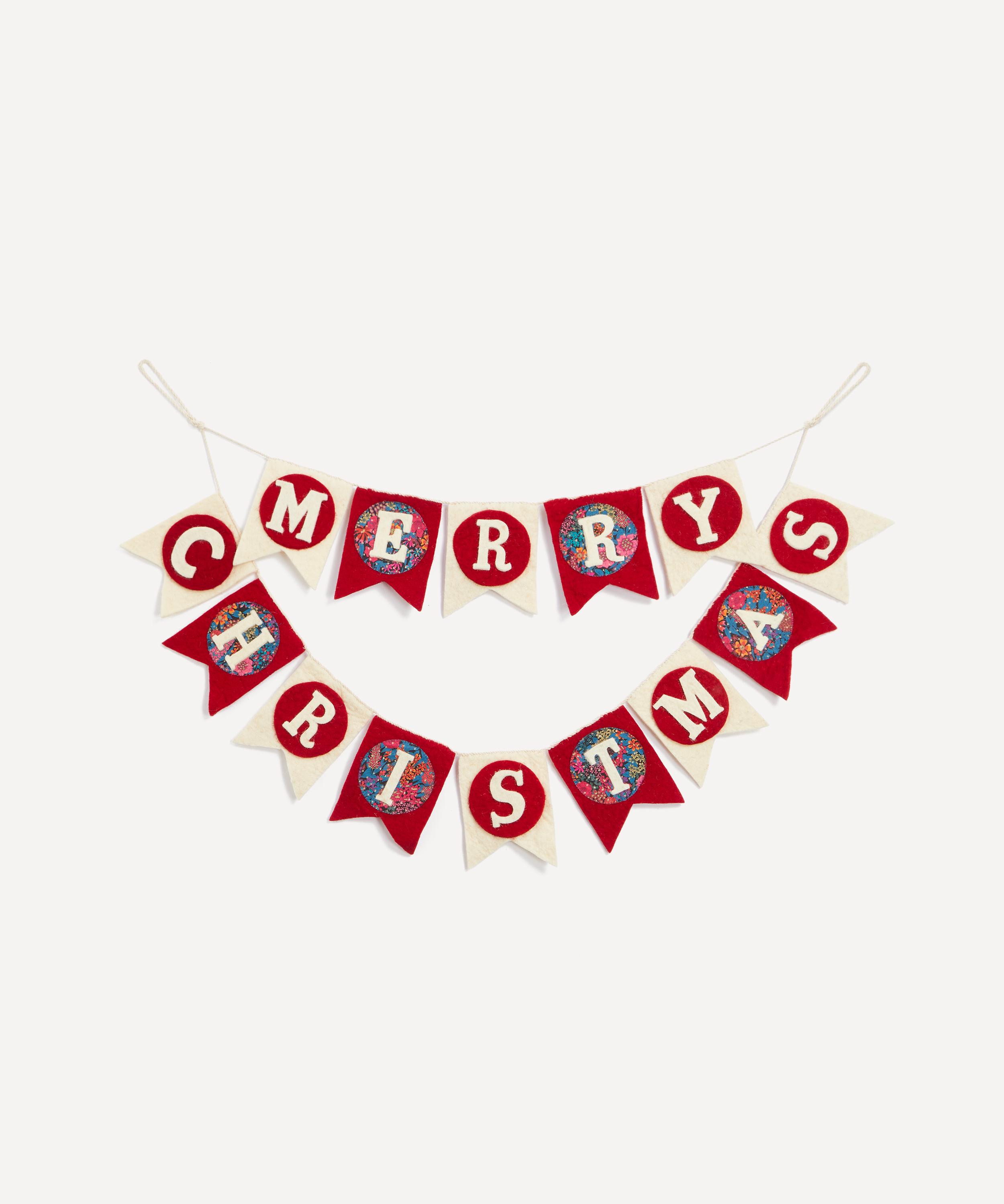 Handmade from felt with Liberty fabric accents, this colourful garland is crafted to spell ‘Merry Christmas’ and brings further cheer to the holidays. Finish off your Yuletide line-up by displaying it with your collection of baubles and trinkets or mixing and matching it with traditional and modern adornments.