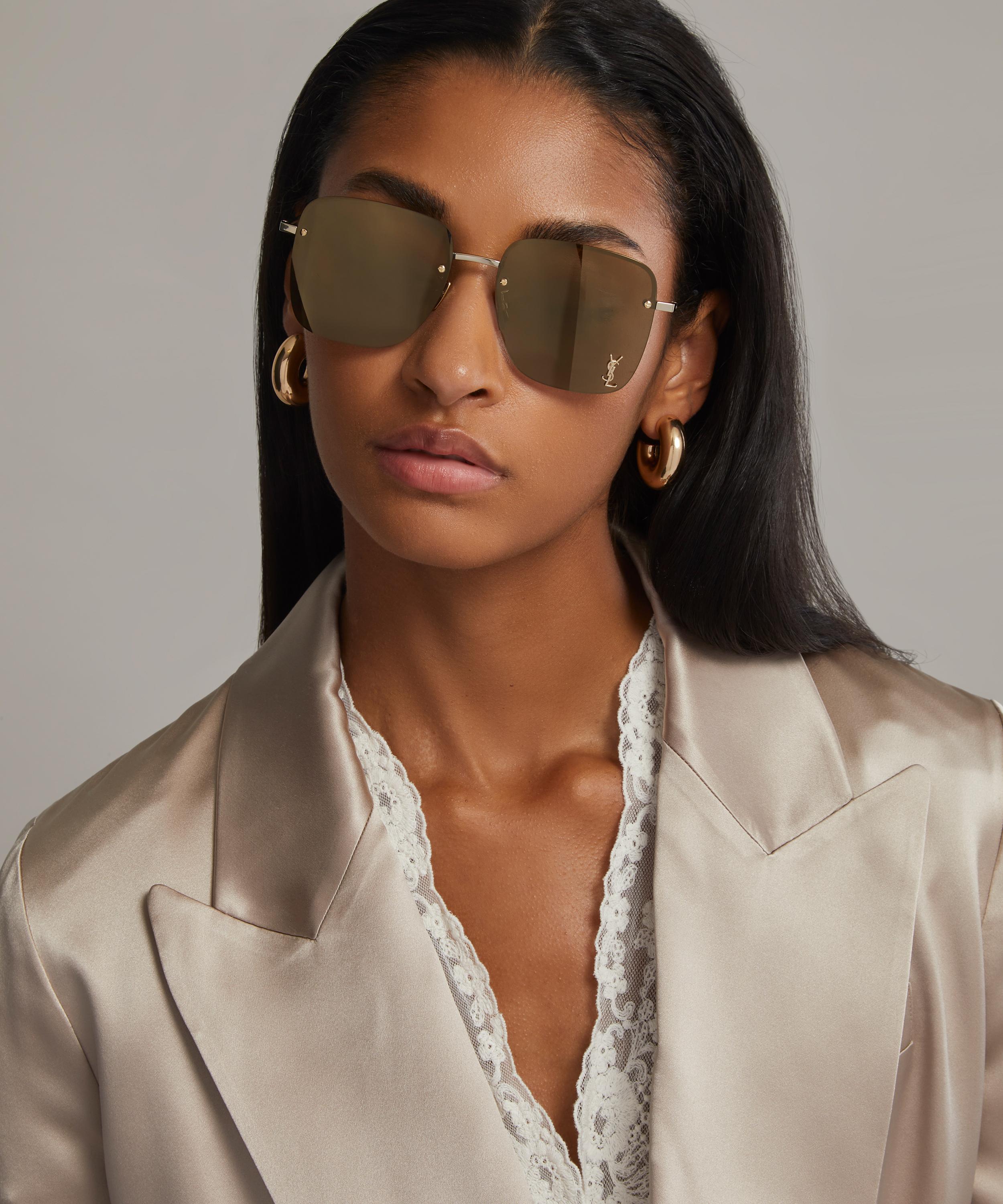 Offering an effortlessly glamorous, retro-infused silhouette with its sleek gold-tone metal frame and large, square golden lenses, these statement sunglasses are complete with YSL monogram branding embossed on its left lens. Fitted with UVA/UVB protective lenses, they’re a stylish and functional addition to your accessory collection.
