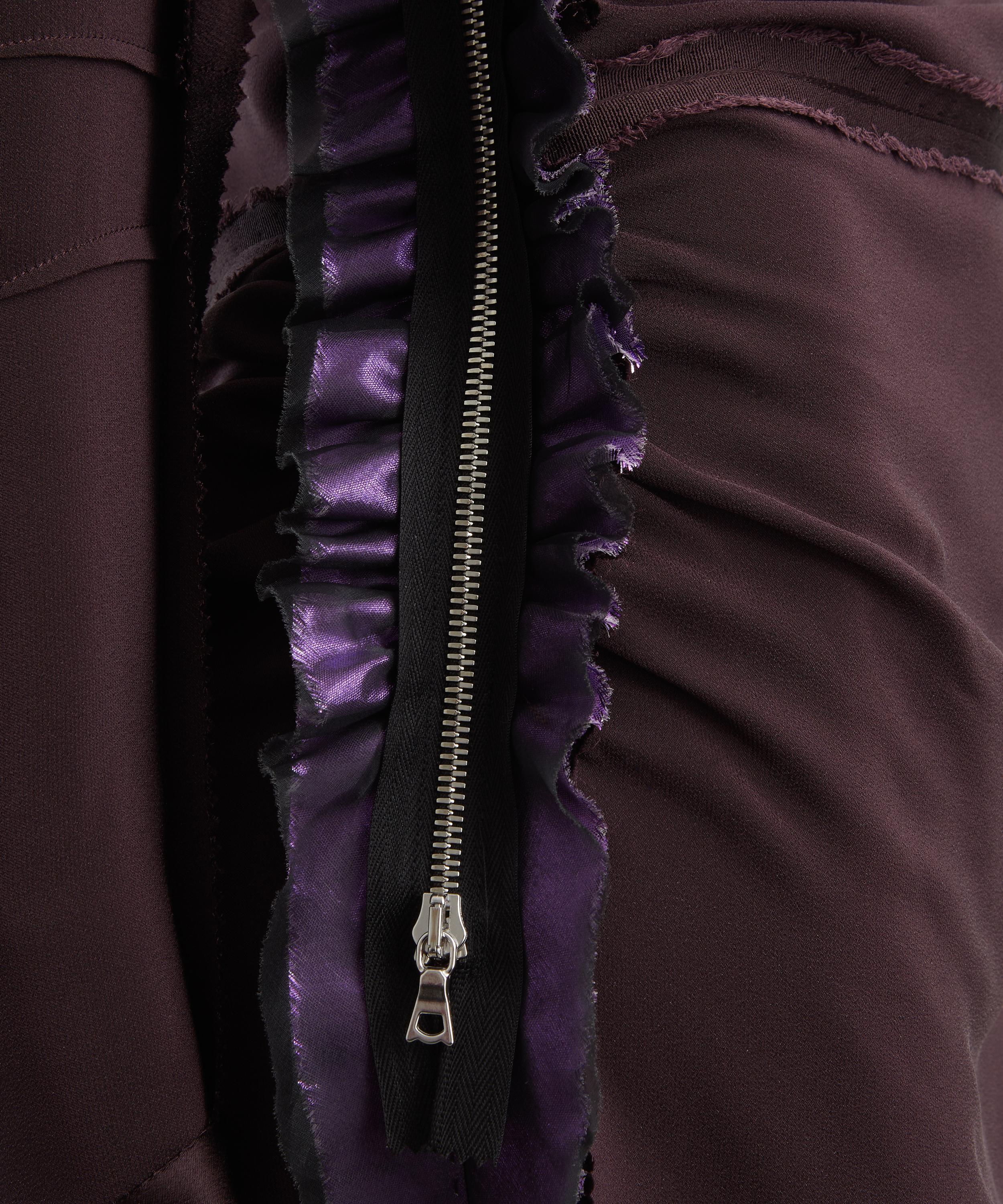 worn. Now under the creative direction of Glenn Martens, the Artisanal atelier challenges tradition by reinterpreting and repurposing past elements into new forms. This process creates a dialogue between past and present, emphasizing individuality and authenticity.