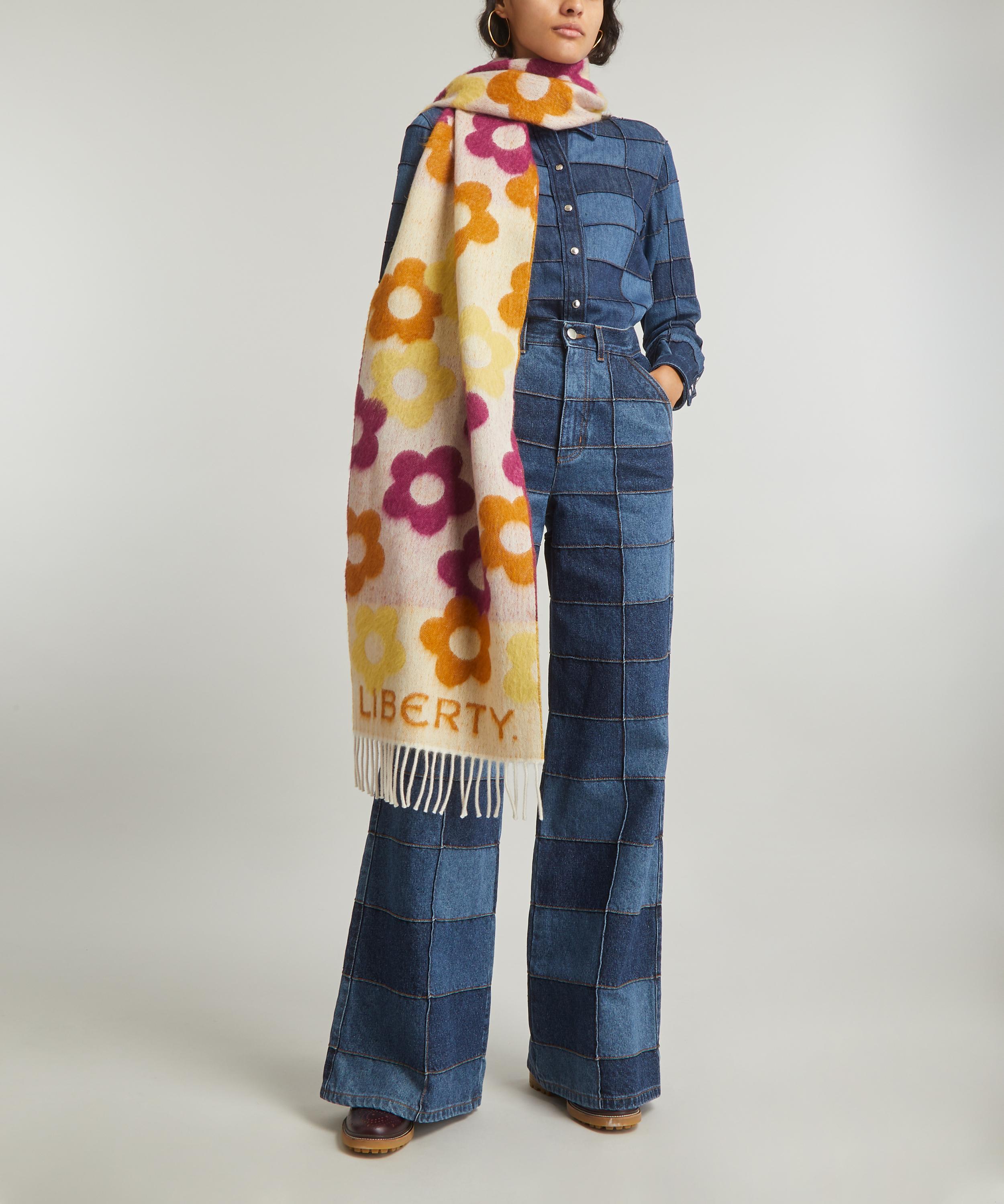 Bundle up in style with Liberty’s Michelle Frances Flower scarf, it’s the perfect finishing touch to keep cozy in the winter weather. It’s meticulously crafted from an ultra-soft mohair blend, featuring our Michelle Frances Flower design, depicting bright flowers brushed to create a fuzzy texture. Designed to instantly dress up your edit, try draping it over neutral outerwear for a burst of contemporary colour, or knot it close to the neck to lock in warmth.