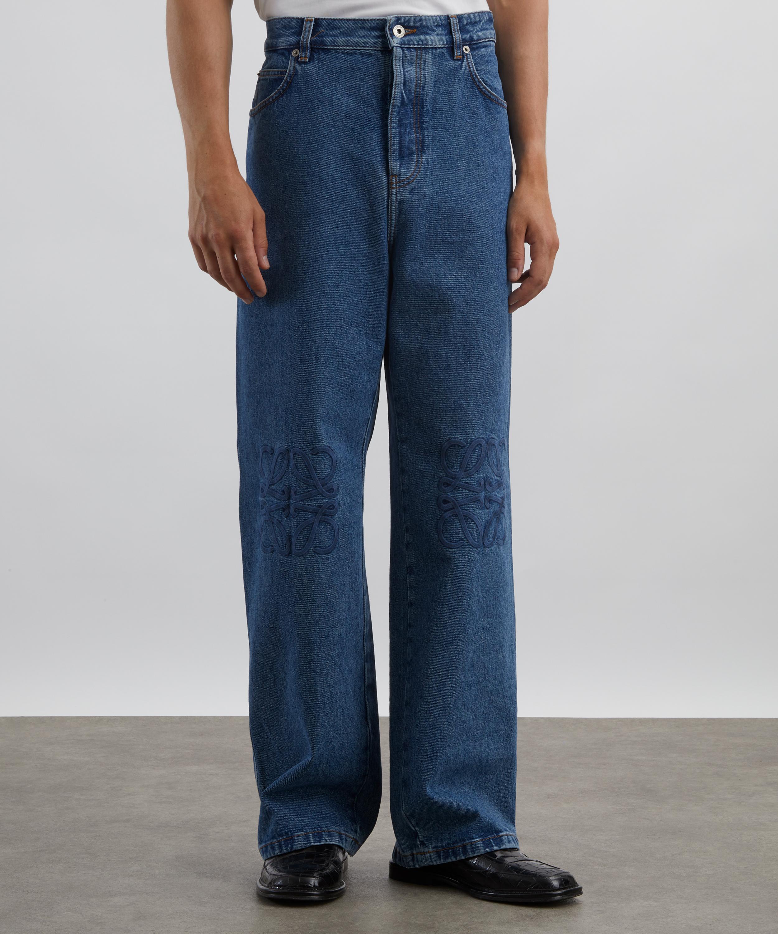 Mid-Blue Anagram-Embroidered Baggy Jeans