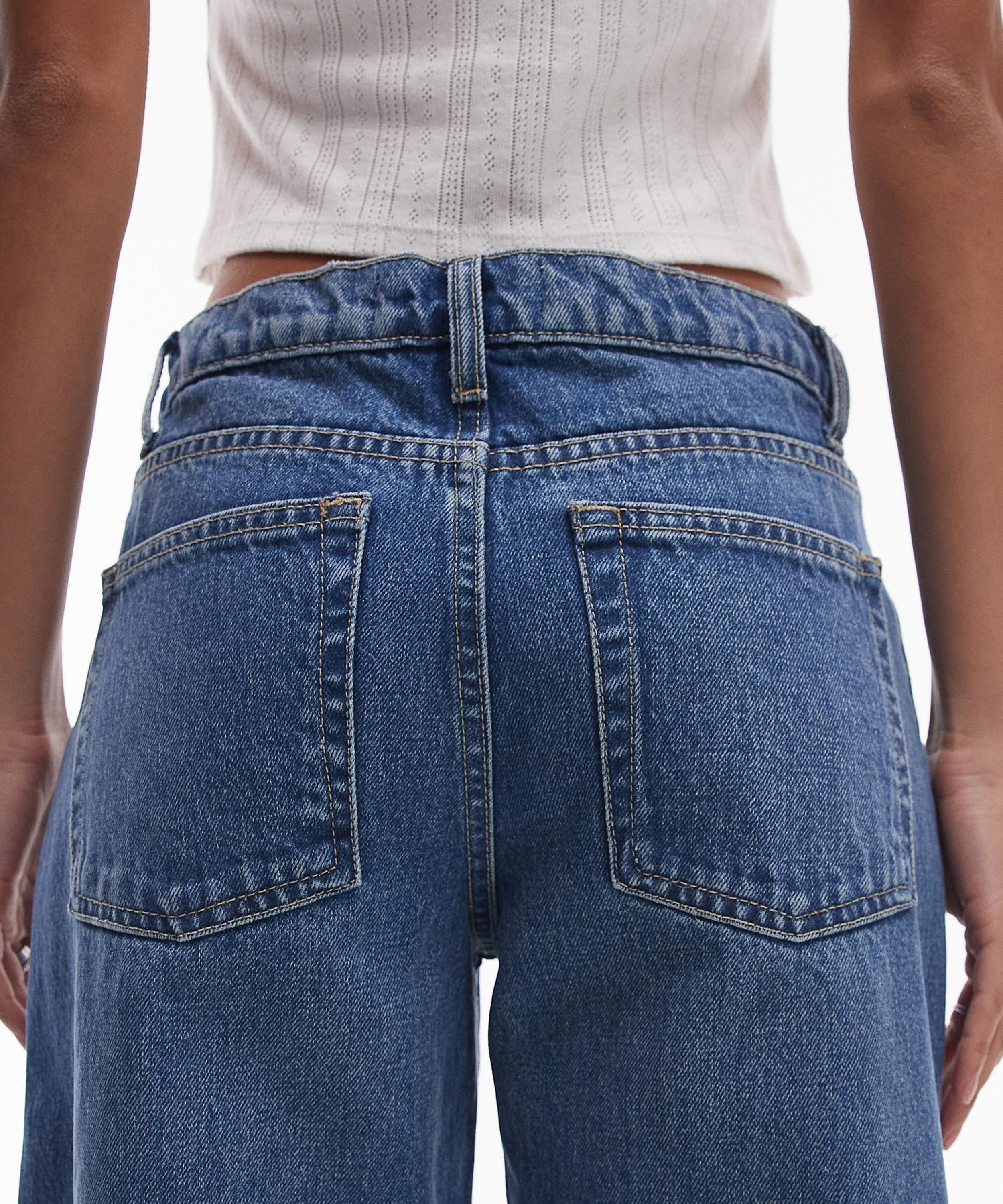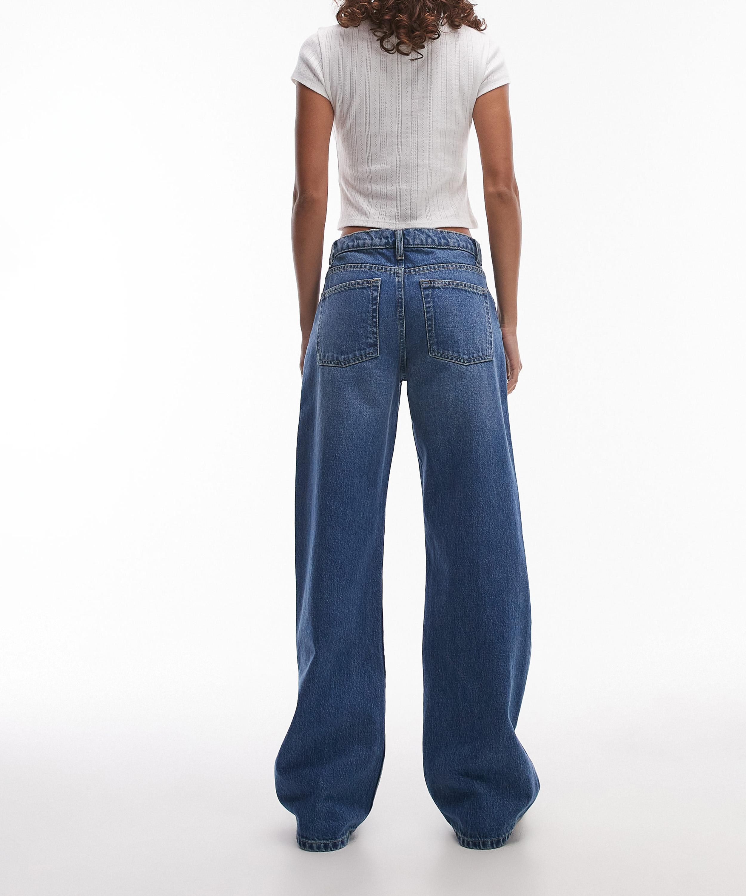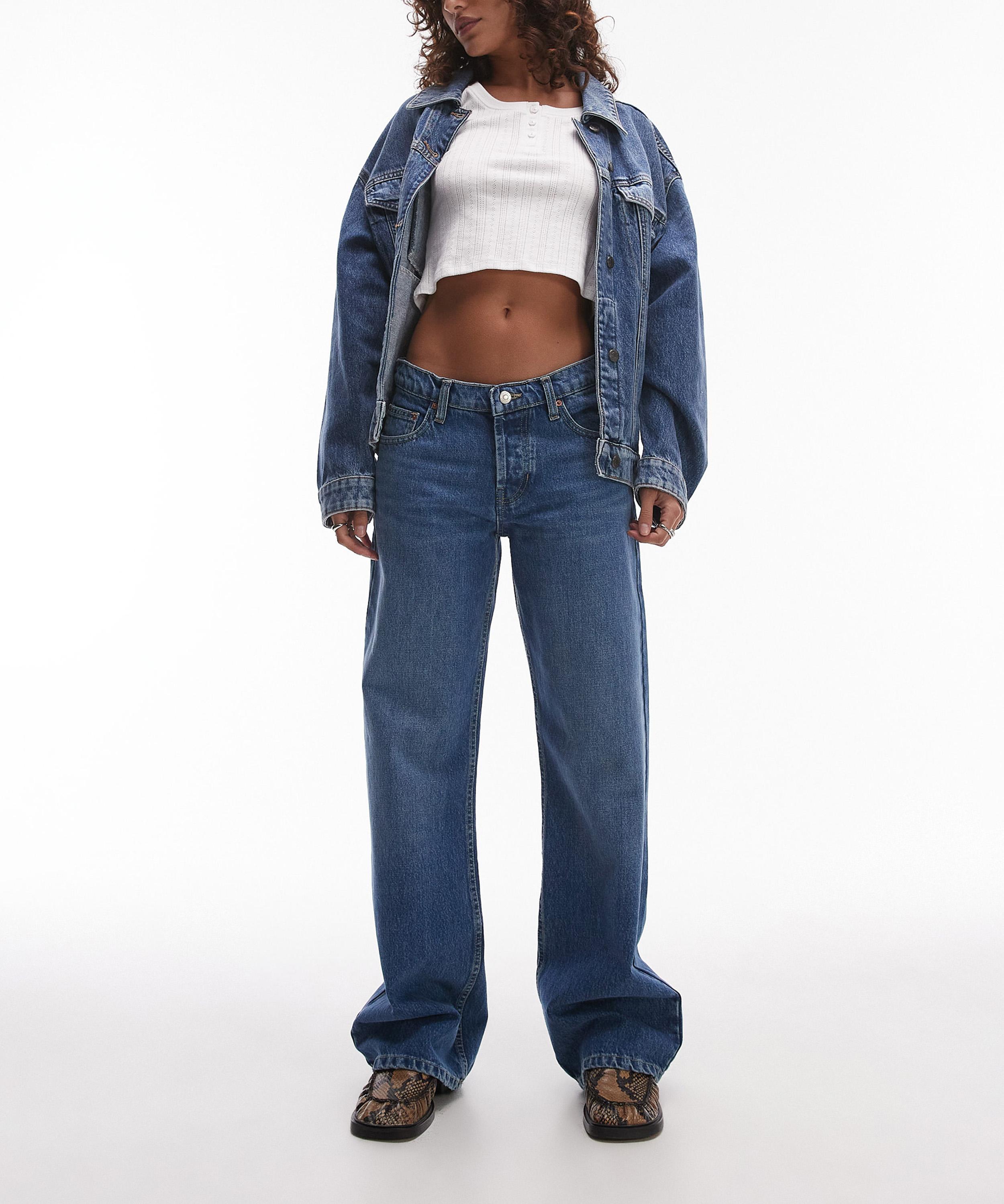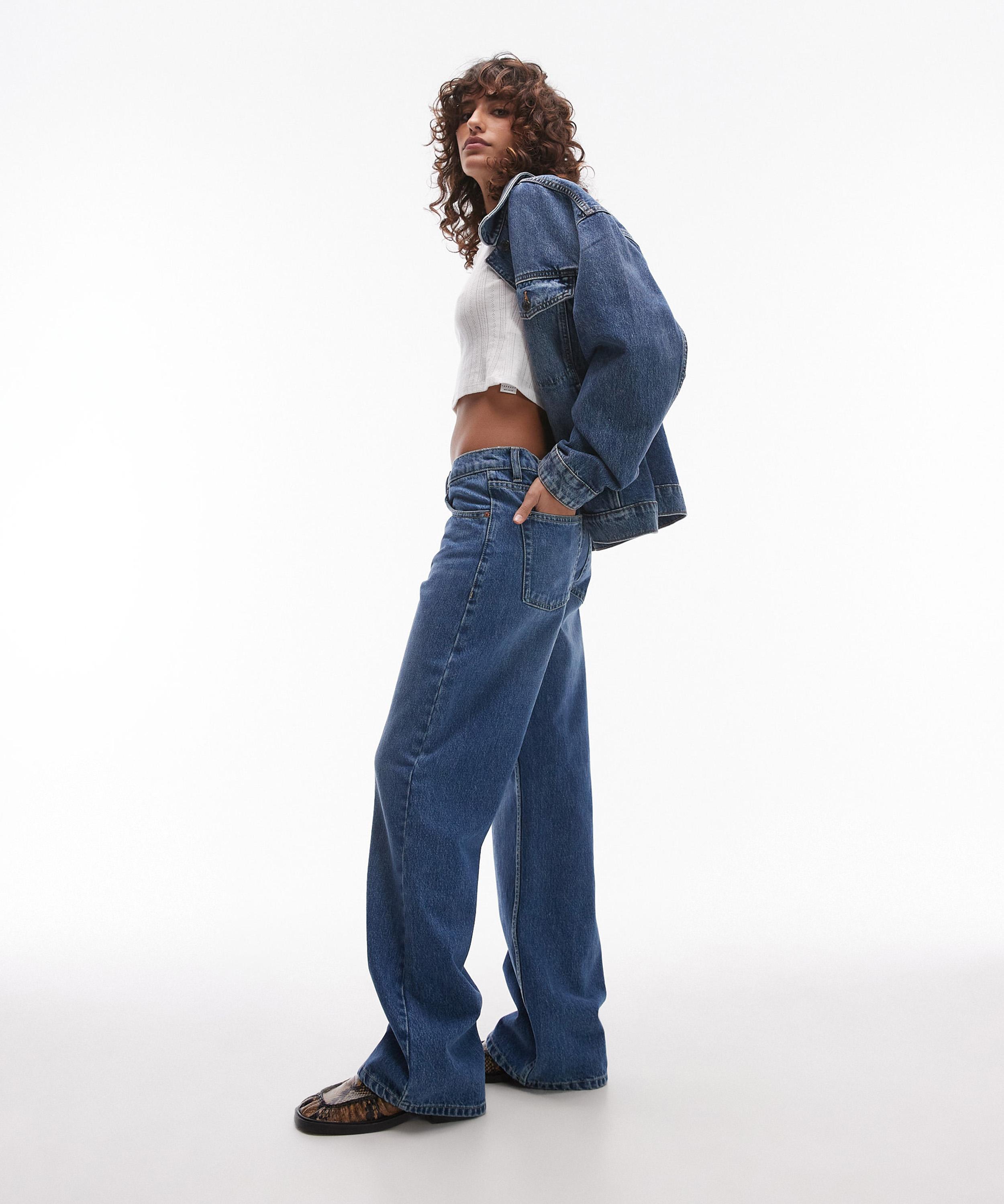Crafted from non-stretch denim in a classic mid-blue wash, the Ember jeans feature a low-rise waist and wide-leg silhouette that falls to the ankle for a flattering, laid-back fit.