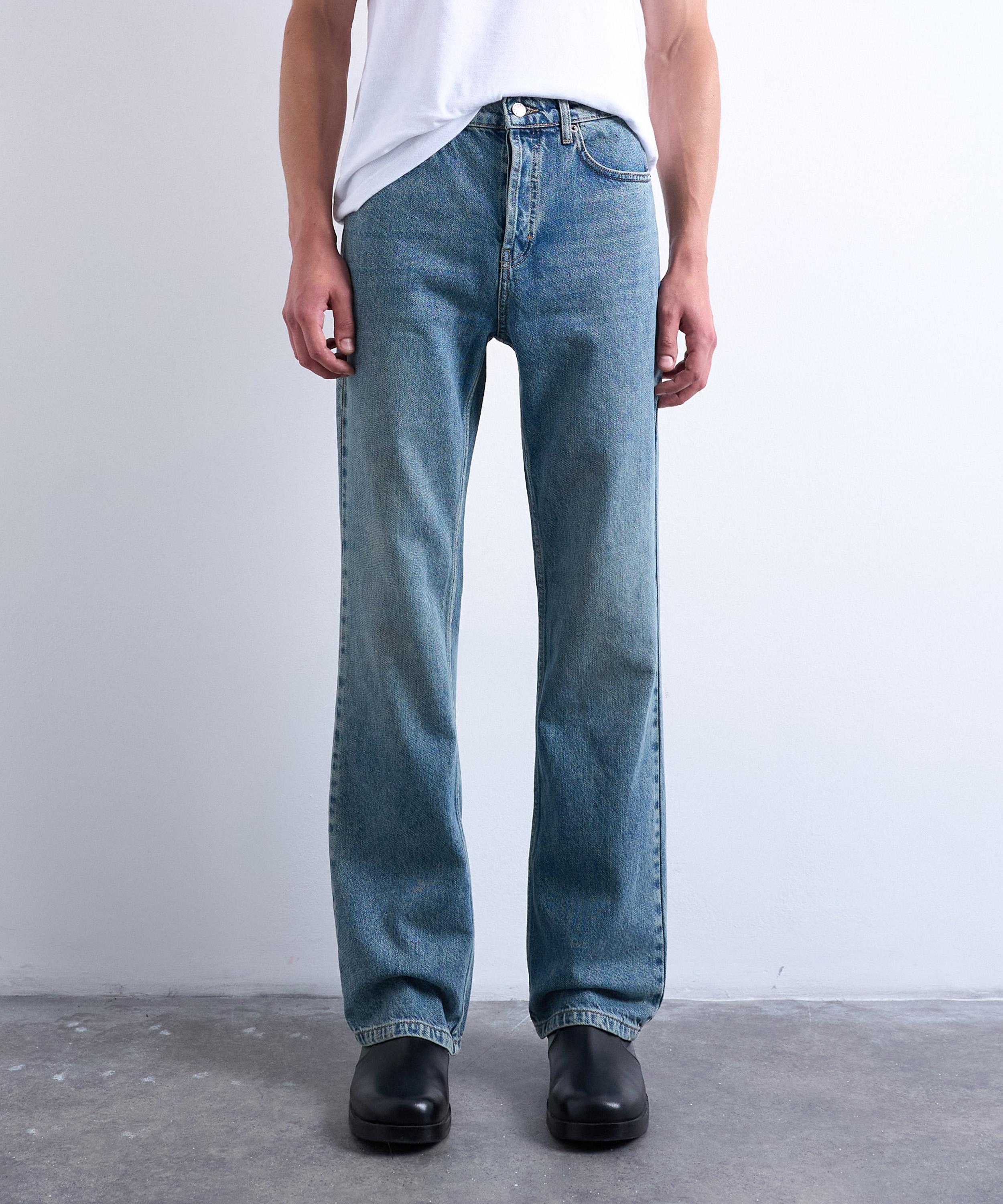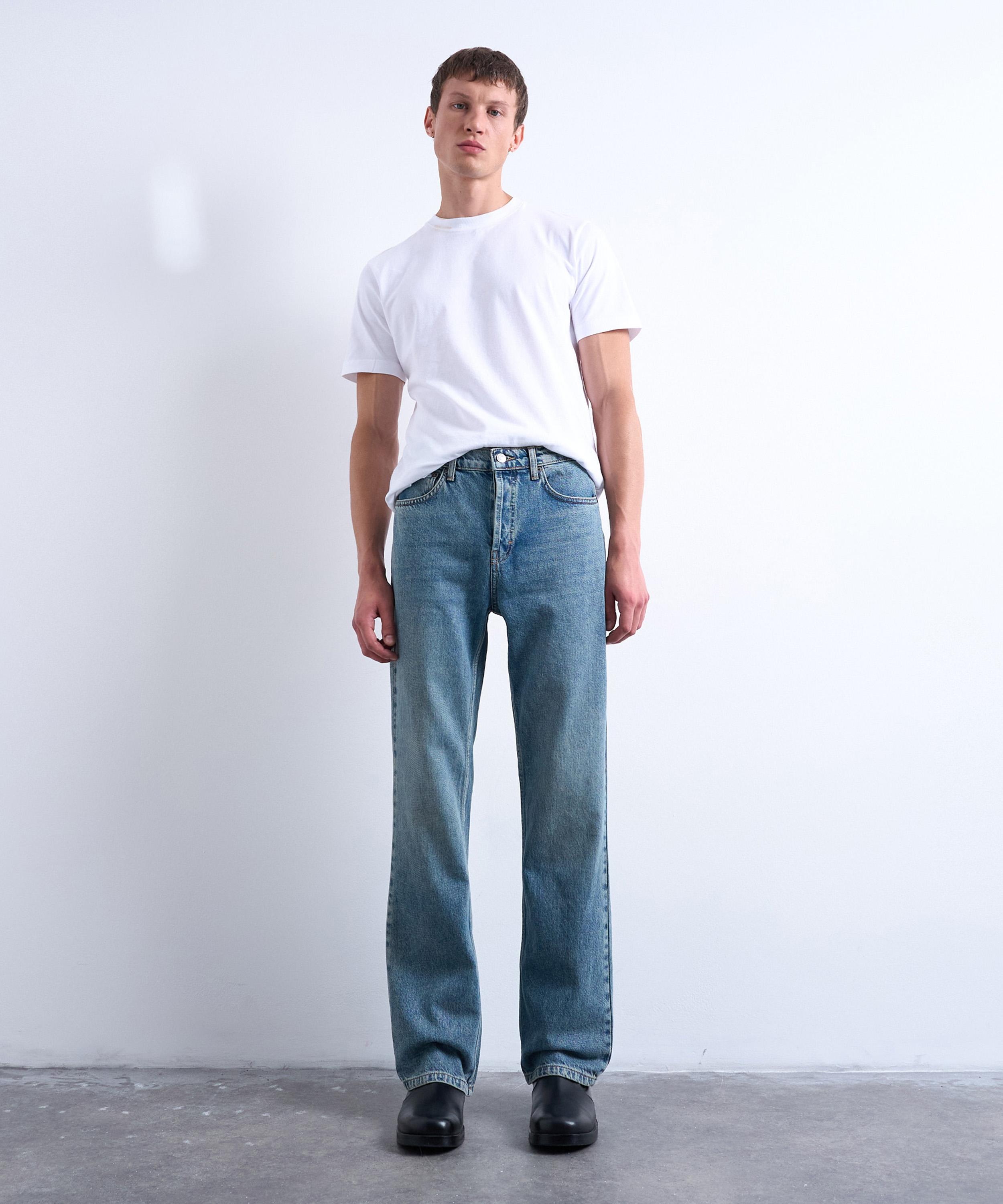 Crafted from non-stretch denim in a versatile mid-blue wash, these jeans are cut to a tapered leg that finishes at the ankle. Staying true to a classic silhouette, they feature five pockets, belt loops, and a concealed fly.