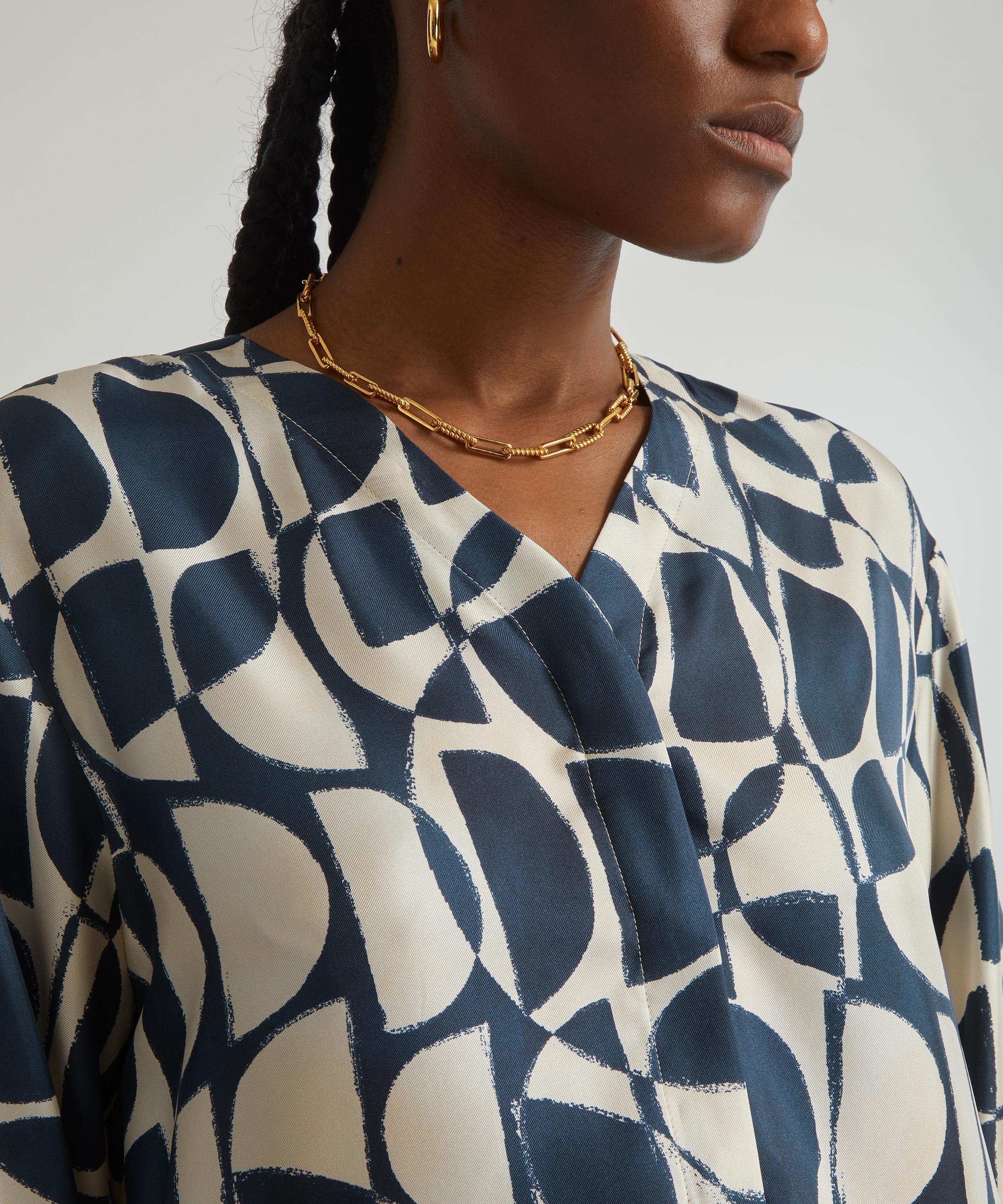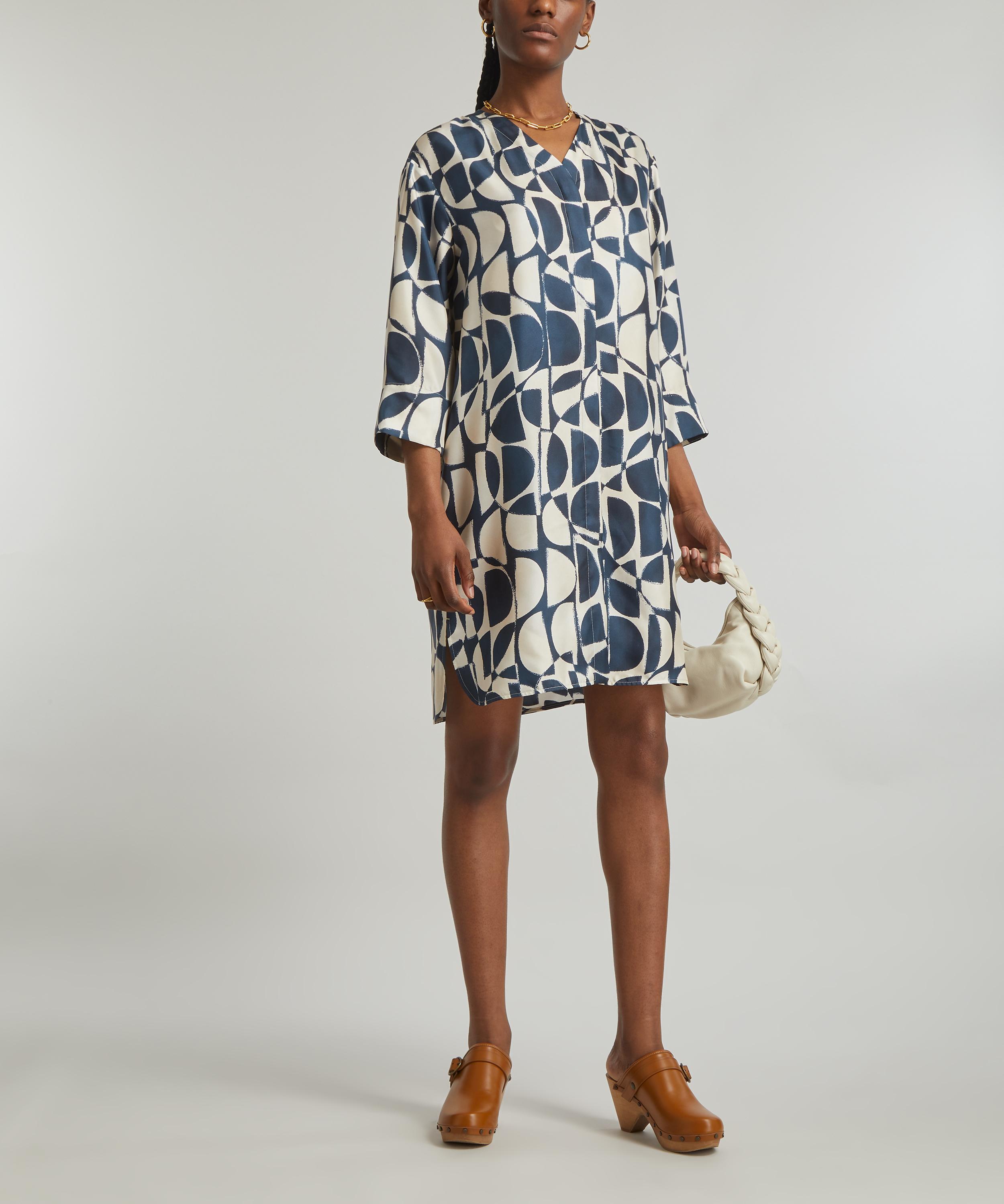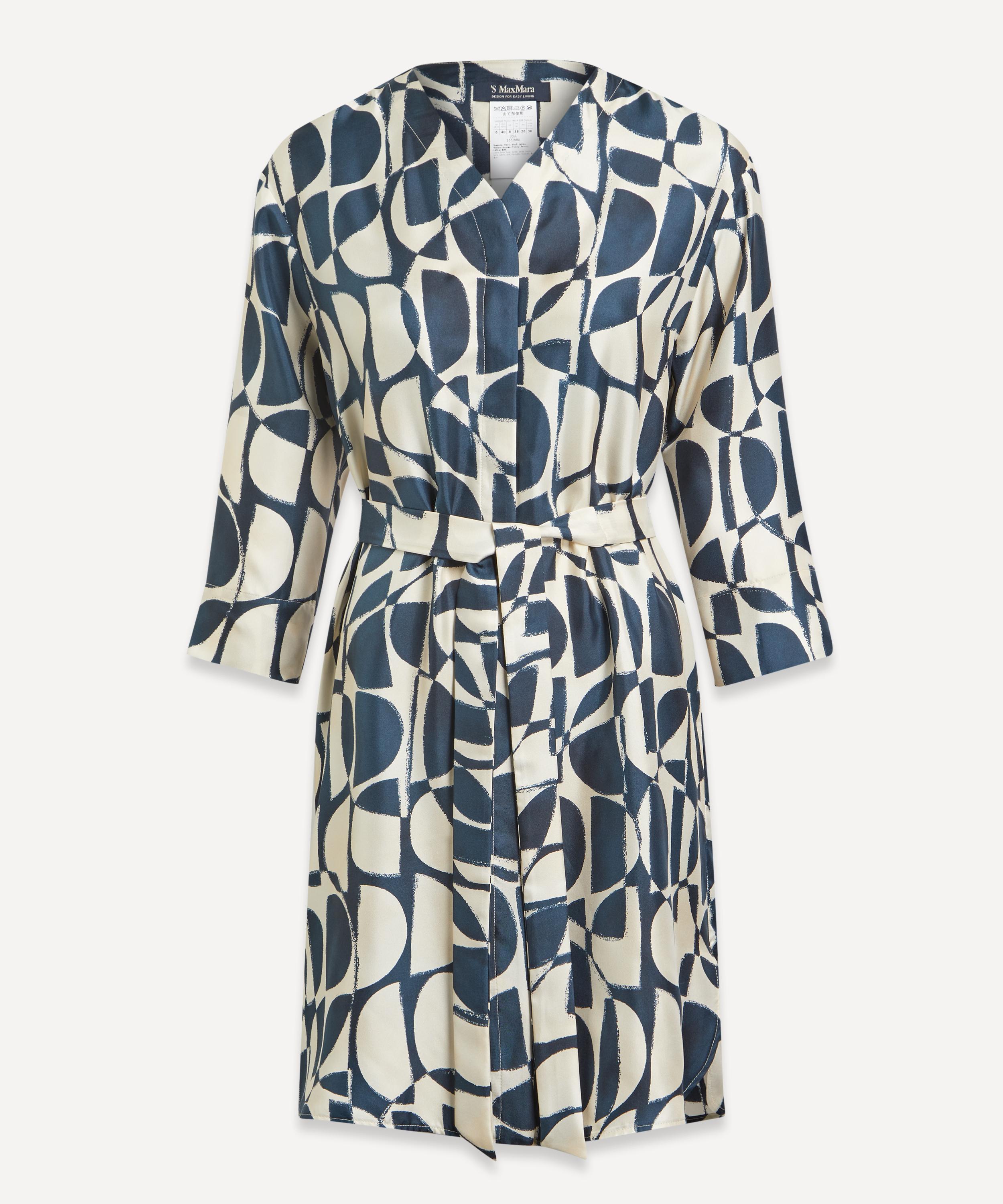 ’S Max Mara showcases its dedication to wearable luxury design with the Mida mini-dress. Bold and breezy with its semi-circle pattern, this kaftan-style dress is cut from pure silk-twill fabric with an elegant V-neckline, concealed button fastening and a matching fabric belt for a fitted silhouette.
