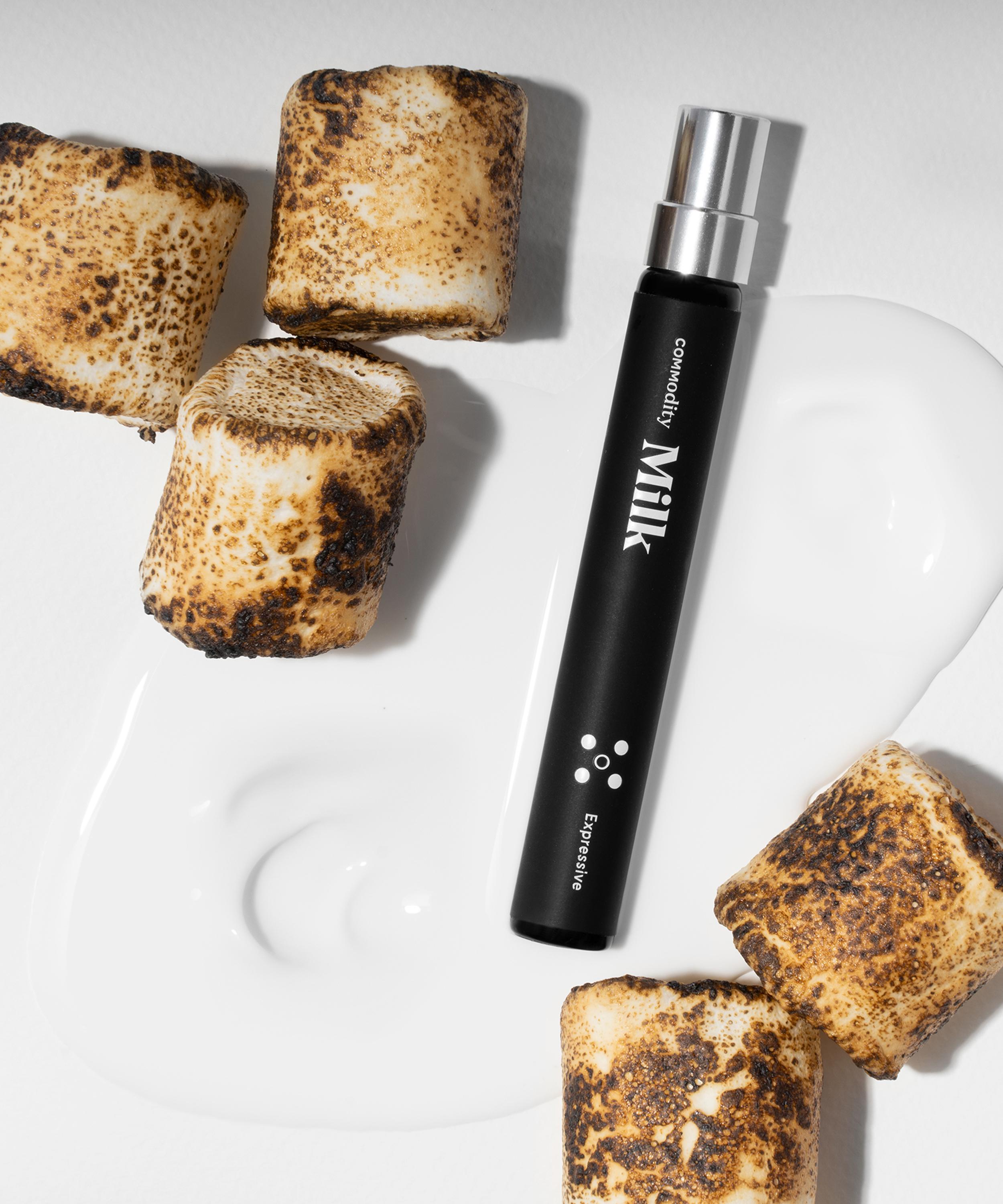 Commodity’s Milk Expressive eau de parfum is comfort personified – a creamy, calming fragrance laced with toasted marshmallows and sweet tonka bean.